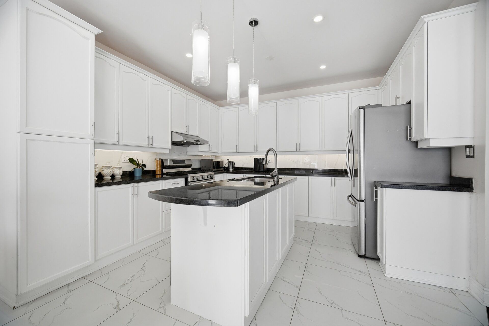 • Gorgeous kitchen with stainless steel appliances and granite countertops.