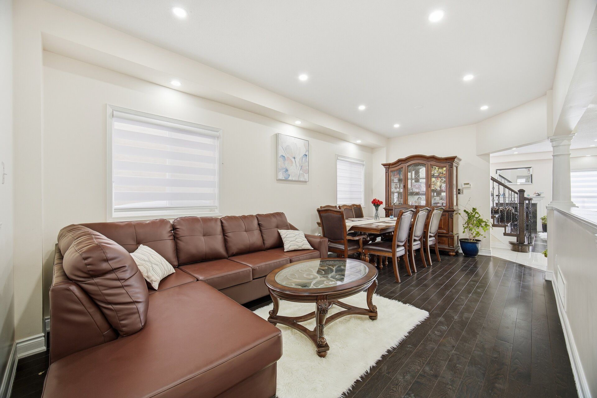 Welcome to this stunning home in one of brampton's most sought-after neighbourhoods, offering over 4,000 sq. Ft. Of total living space, beautifully upgraded living space designed for comfort, functionality, and income potential. The main floor features a gorgeous kitchen with stainless steel appliances, granite countertops and elegant white cabinets and a bright breakfast area, a large family room with gas fireplace, spacious living and dining rooms, and a dedicated home office-ideal for today's lifestyle. The second level offers 5 generously sized bedrooms with renovated modern bathrooms. The luxurious primary bedroom includes a 6-piece ensuite and walk-in closet, while 3 other bedrooms featuring ensuite bathrooms, and bedroom 3 offers a walkout to a balcony. The legally finished basement apartment with separate entrance is perfect for rental income, featuring a modern kitchen, living room, 2 spacious bedrooms with walk-in closets, separate laundry, plus an additional 3rd bedroom in the basement. This home features extensive upgrades including a new furnace (2024), newly installed zebra blinds (2025), shingles replaced in 2020, renovated bathrooms throughout, upgraded flooring with a new staircase, an extended driveway to park up to 6 cars, and a professionally built deck in the backyard. Walking distance to elementary, middle and high schools, parks, restaurants, shops, cassie campbell community centre, banks, etc. You must come and see this home to truly appreciate it.