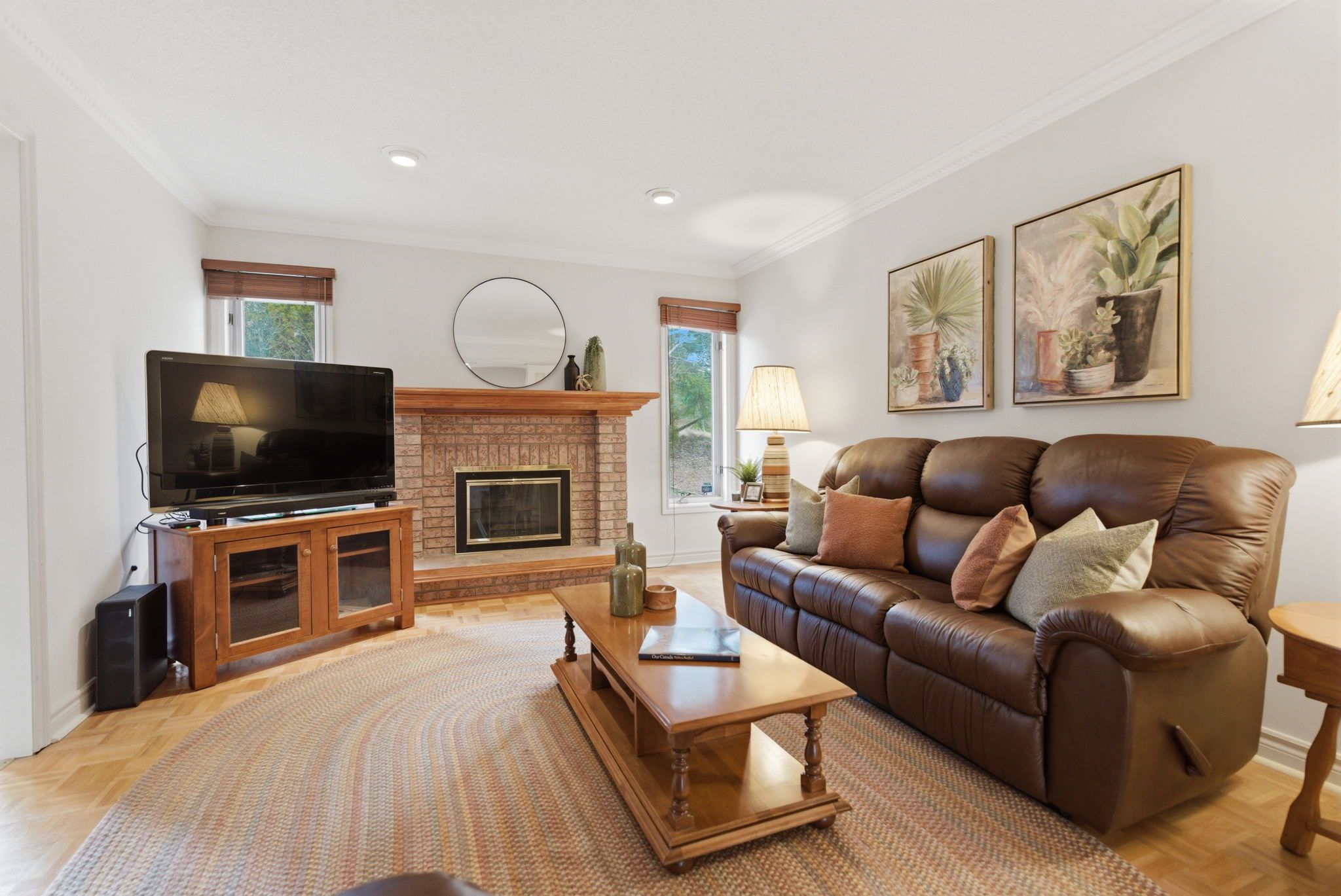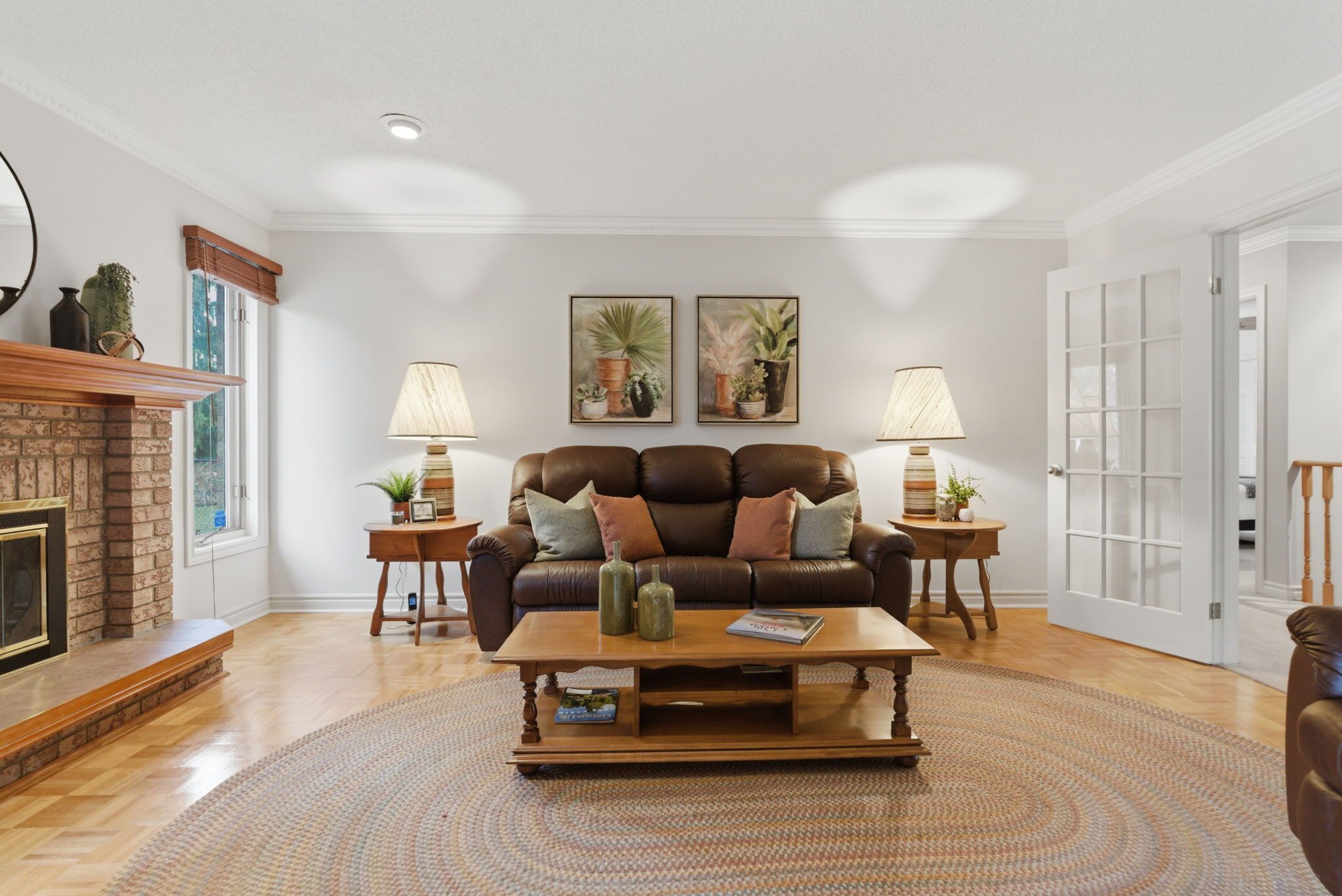 Welcome to this beautifully maintained bungalow offering easy, low-maintenance living in a quiet, sought-after neighbourhood backing onto a scenic golf course. With 1,578 sq ft (mpac) plus a fully finished basement, this home provides exceptional space for seniors, families or multi-generational living. The solid brick exterior, mature landscaping, and inviting covered front porch create outstanding curb appeal, while the wide driveway (no sidewalk to shovel!) offers parking for four vehicles alongside a 1. 5-car garage with convenient side yard access. Enjoy peace of mind with updated shingles, most windows, furnace and central air. Inside, the main floor features a bright, functional layout with a sunken living room, open dining area, and a cozy family room with wood-burning fireplace (not wett) and views of the private backyard. The spacious kitchen is designed for everyday ease, complete with granite countertops, custom tumbled marble backsplash, stainless steel appliances, and a breakfast area with walkout to the landscaped yard. The principal bedroom offers a full wall of closet space, complemented by a generous second bedroom and an updated main bath with glass shower and custom storage. Downstairs, the finished basement extends your living space with a large recreation room featuring a gas fireplace, three additional bedrooms, and a full 4-piece bathroom-ideal for guests, hobbies, or growing families. Step outside to a private backyard retreat with direct gate access to the golf course-perfect for relaxing and enjoying nature with minimal upkeep. Located close to schools, parks, and quick access to uxbridge amenities, this home offers the perfect balance of comfort, convenience, and lifestyle. Updates include: 40 yr shingles (2007), furnace/ac/hwt (2010), water softener (2015). Survey available.