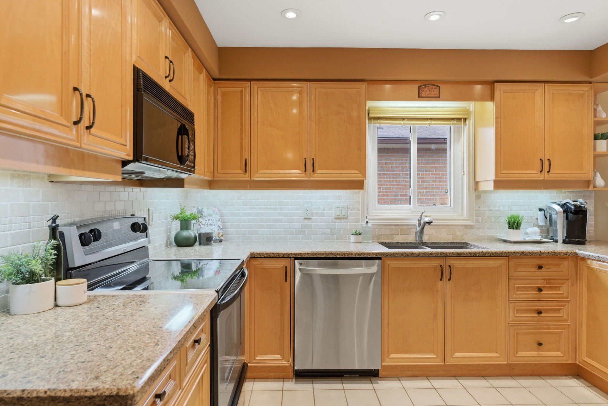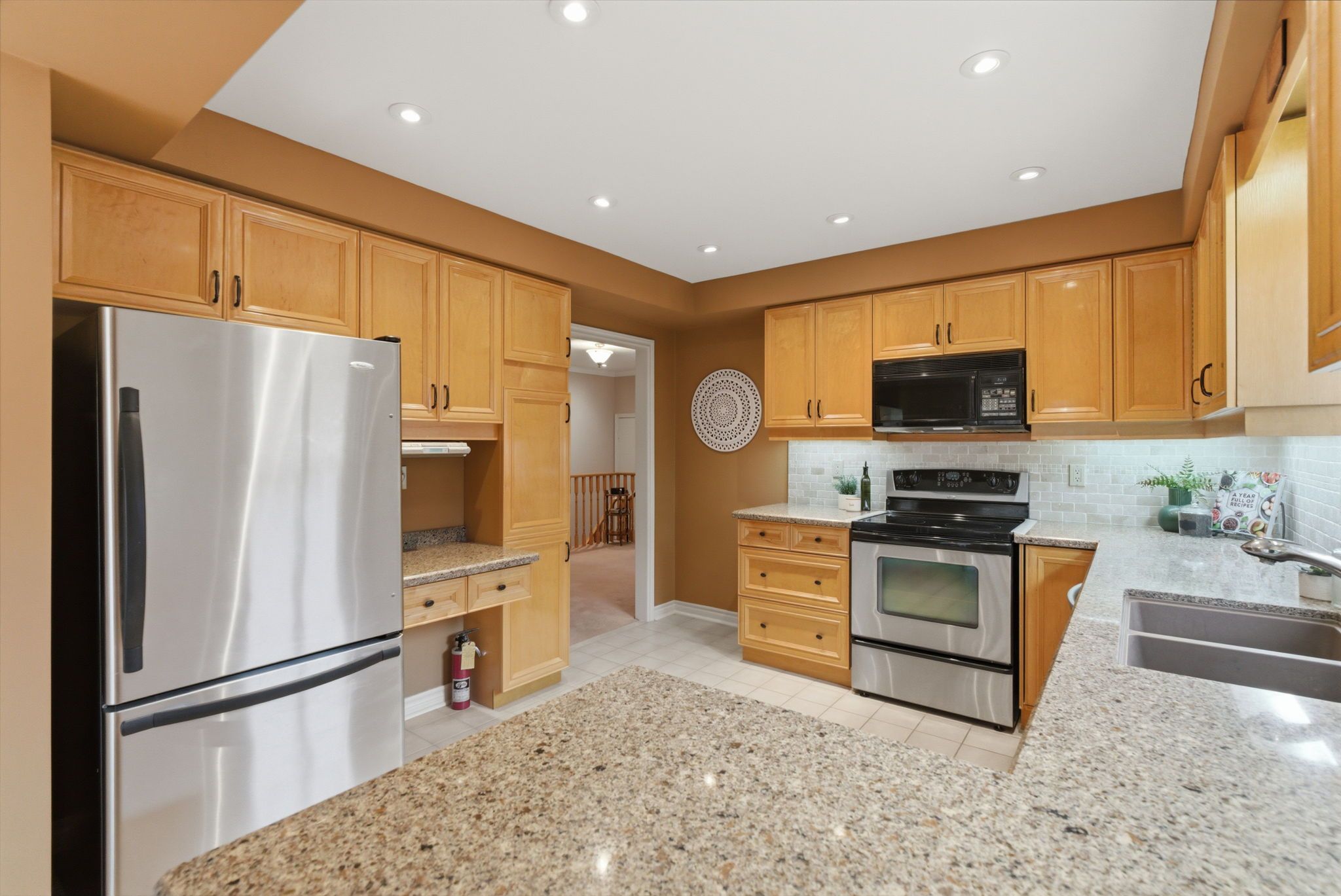 • Bright kitchen features granite countertops and stainless steel appliances.