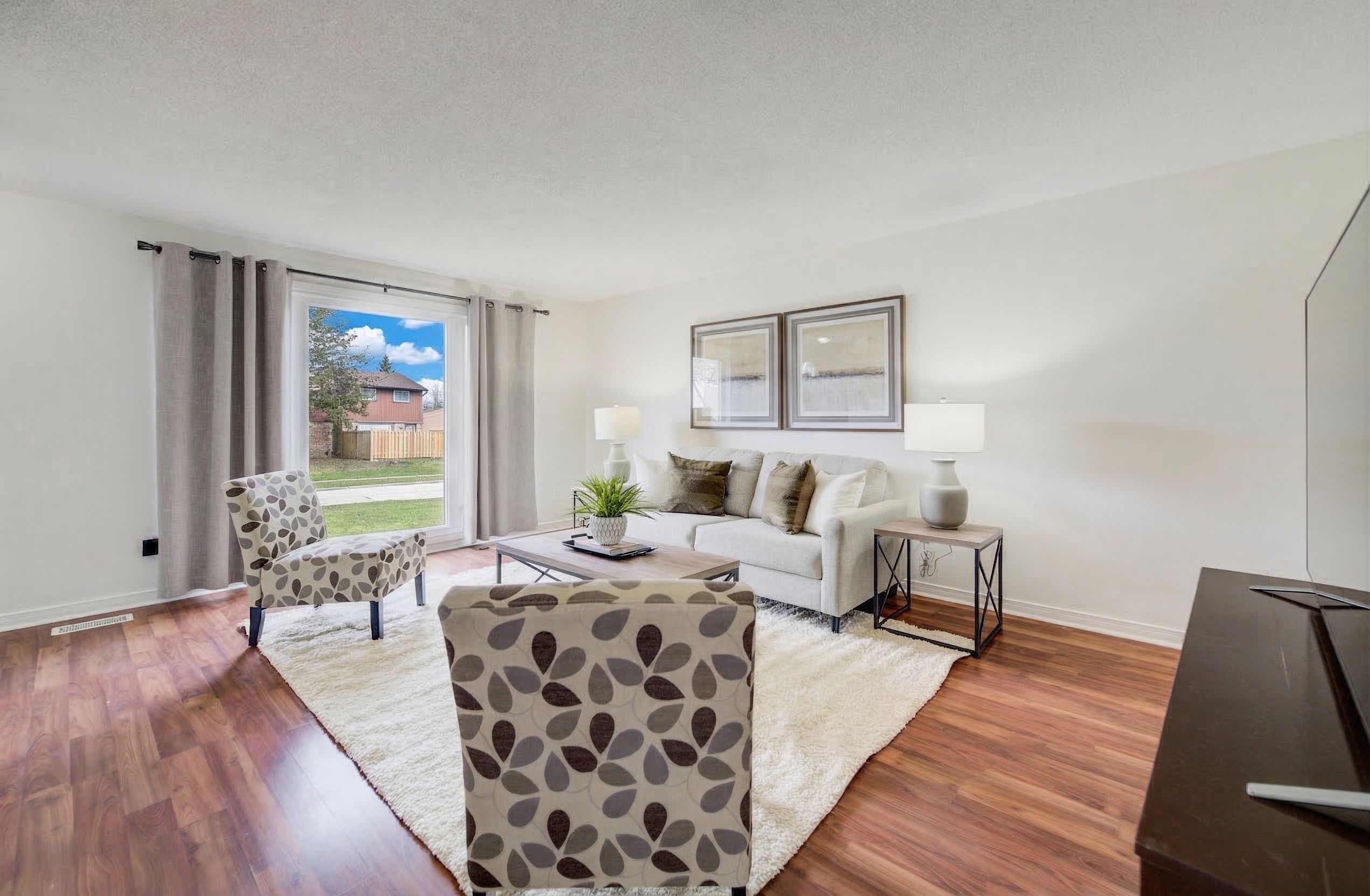 No condo fees!! Freehold semi-detached home in a great family friendly neighbourhood located on a quiet street. Perfect home for first time buyers or aspiring investors to get into the market and potentially add some equity/value to a home with great bones. The all brick exterior on the front of the home adds to the curb appeal of this sizeable structure. The front picture window was recently replaced in (2025) so you don't have to budget for this high ticket item. The location of this semi-detached home puts you anywhere and everywhere within the city and surrounding highways in minutes. The ac is newer replaced in (2018), and the home has been freshly painted through out leaving a neutral canvas for you to move in or customize to your desire. The very functional layout maximizes living spaces especially with the large kitchen with pantry, and open living room. The massive front window offers plenty of natural light to make the space feel more like home. Another unique feature to this property is the separate entrance on the upper level which creates more flow to the home, and allows you to access the backyard from (2) different locations both upstairs and downstairs. The upper level is carpet free and offers (3) generously sized bedrooms. The lower level offers a recreation room, storage and laundry. The driveway extends to offer up to (3) cars for most vehicles and the fully fenced shaded/private backyard is the perfect place to relax. Ideally located close to many amenities, including schools, shopping, parks, places of worship and transit. Why pay rent a longer? With a little tender loving care you could be the proud owner of a freehold home at an affordable price point.