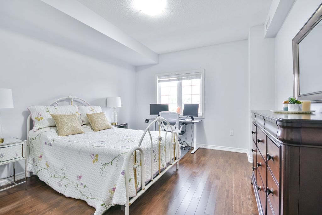 Experience comfortable, low-maintenance living in this bright and spacious 2-bedroom, 2-bathroom condo featuring a desirable split floor plan for added privacy and flow. The modern kitchen is equipped with granite countertops, stainless steel appliances, and opens to a generous dining area-ideal for casual meals or entertaining guests. The adjoining family room's sliding doors lead to a private patio with park views, perfectly suited for relaxing evenings or summer bbqs. The primary suite includes a walk-in closet with a custom organizer and a beautifully renovated 3-piece ensuite (2024). The second bedroom is impressively large, offering flexibility for guests or a convenient work-from-home setup, complete with a double closet. Everyday living is made easy with in-suite laundry, freshly painted interiors, and recent mechanical updates-furnace and a/c (2023). Enjoy a friendly community setting just steps from bear creek eco-park trails, schools, shopping, transit, and major commuter routes. This well-maintained unit delivers comfort, convenience, and value in one of barrie's most sought-after condo communities-move-in ready and waiting for you to call it home.