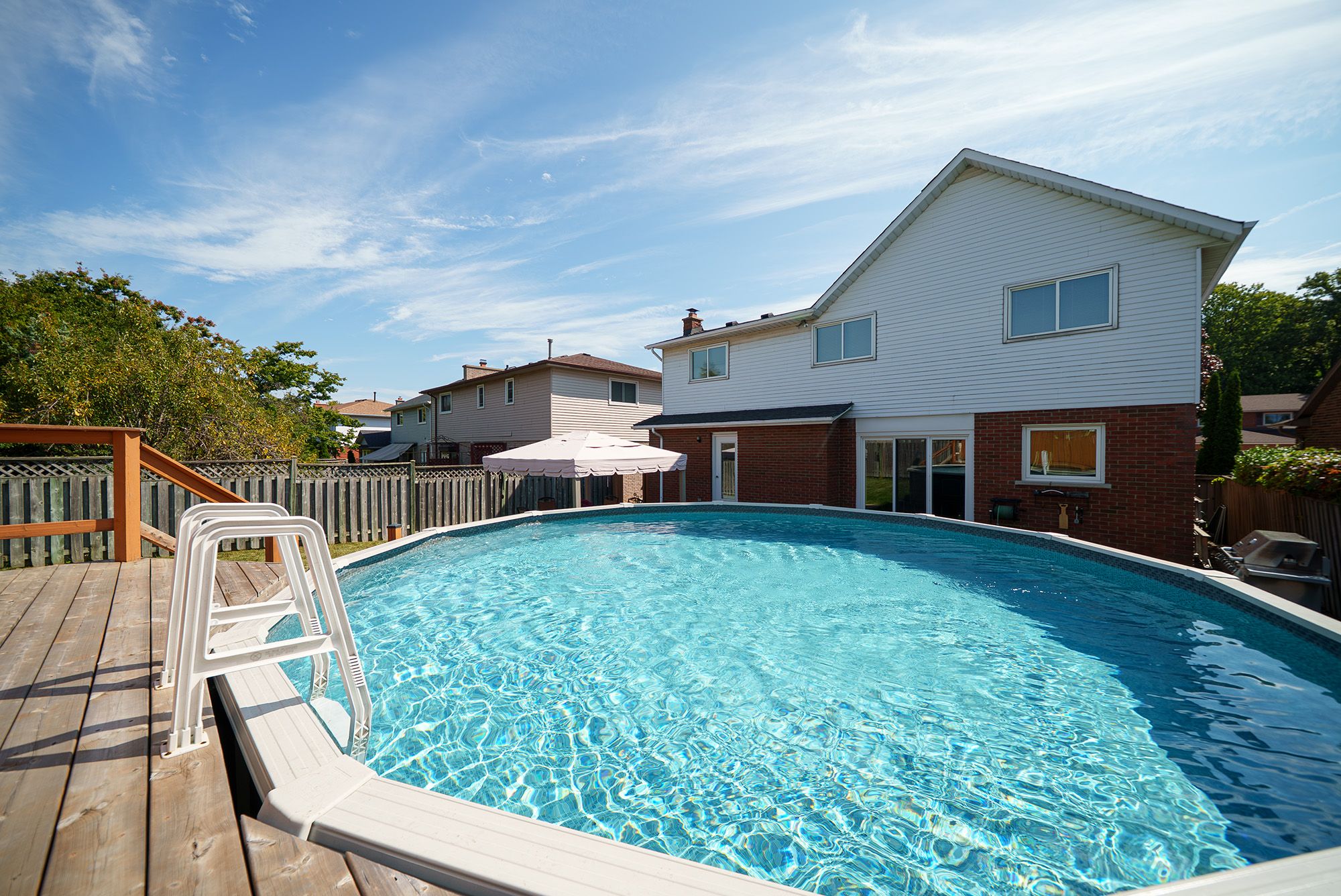 Welcome home to 43 flamingo drive, a spotless two-storey home in hamilton's sought-after bruleville neighbourhood, affectionately known as "birdland," one of the central mountain's most desirable areas. This turn-key residence offers 4+1 bedrooms, 3. 5 bathrooms, a finished basement with in-law suite & a fenced backyard with an above-ground pool. The tidy exterior, 2-car garage and poured concrete driveway & walkway create beautiful curb appeal. A double-door entry opens to a bright foyer with a sparkling tile floor leading into the main living areas. French doors open to a spacious living & dining area. Crown moulding, recessed lighting, fresh paint & gleaming chestnut hardwood floors enhance the bright, polished feel. The eat-in kitchen features tile flooring, shaker-style cabinetry with crown moulding & a sleek honeycomb tile backsplash. Dark lg appliances, including a gas stove, over-the-range microwave & built-in dishwasher, complement the space, while three-panel sliding doors walk out to the rear yard. Chestnut hardwood continues into the family room with recessed lighting & custom oak cabinetry. A 2 pc bathroom serves this level, while the main floor includes a laundry/mudroom with keyless-entry side door & garage access. The garage features an epoxy floor, built-in workbench & side door. The second floor offers 4 bedrooms, including the primary suite with dual closets & a 3pc ensuite. A 5pc bathroom serves the remaining bedrooms. The basement features an in-law suite with bedroom, living area & kitchenette with sink, fridge & counter space. A 4 pc bathroom includes an accessibility-friendly walk-in tub. An office with built-in desk & shelving offers flexible use with soundproof design & observation window. The fenced backyard features a poured concrete patio with gazebo. A 21 ft above-ground pool with cedar deck & gas line for the bbq and pool heater complete the space. Located within walking distance of schools, parks, lime ridge mall & all amenities.