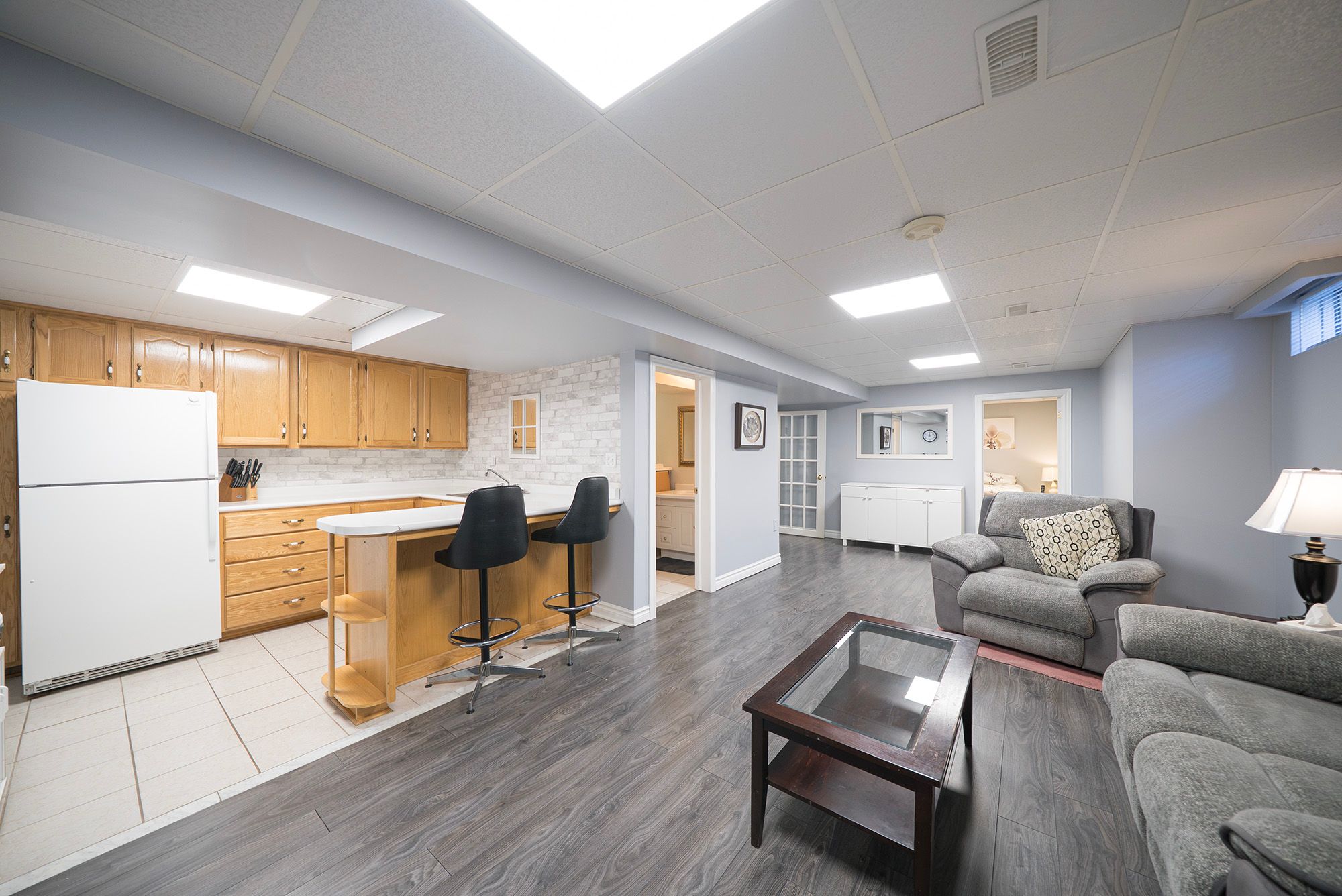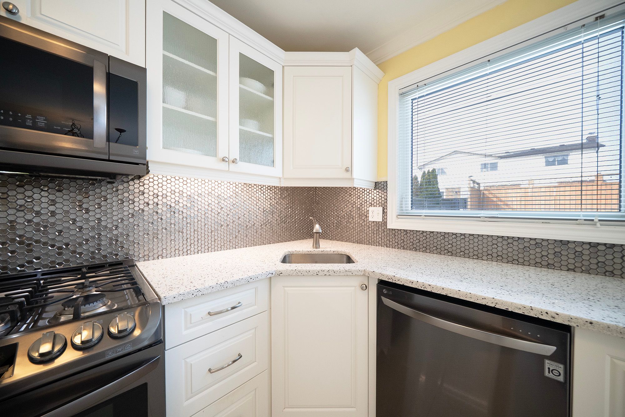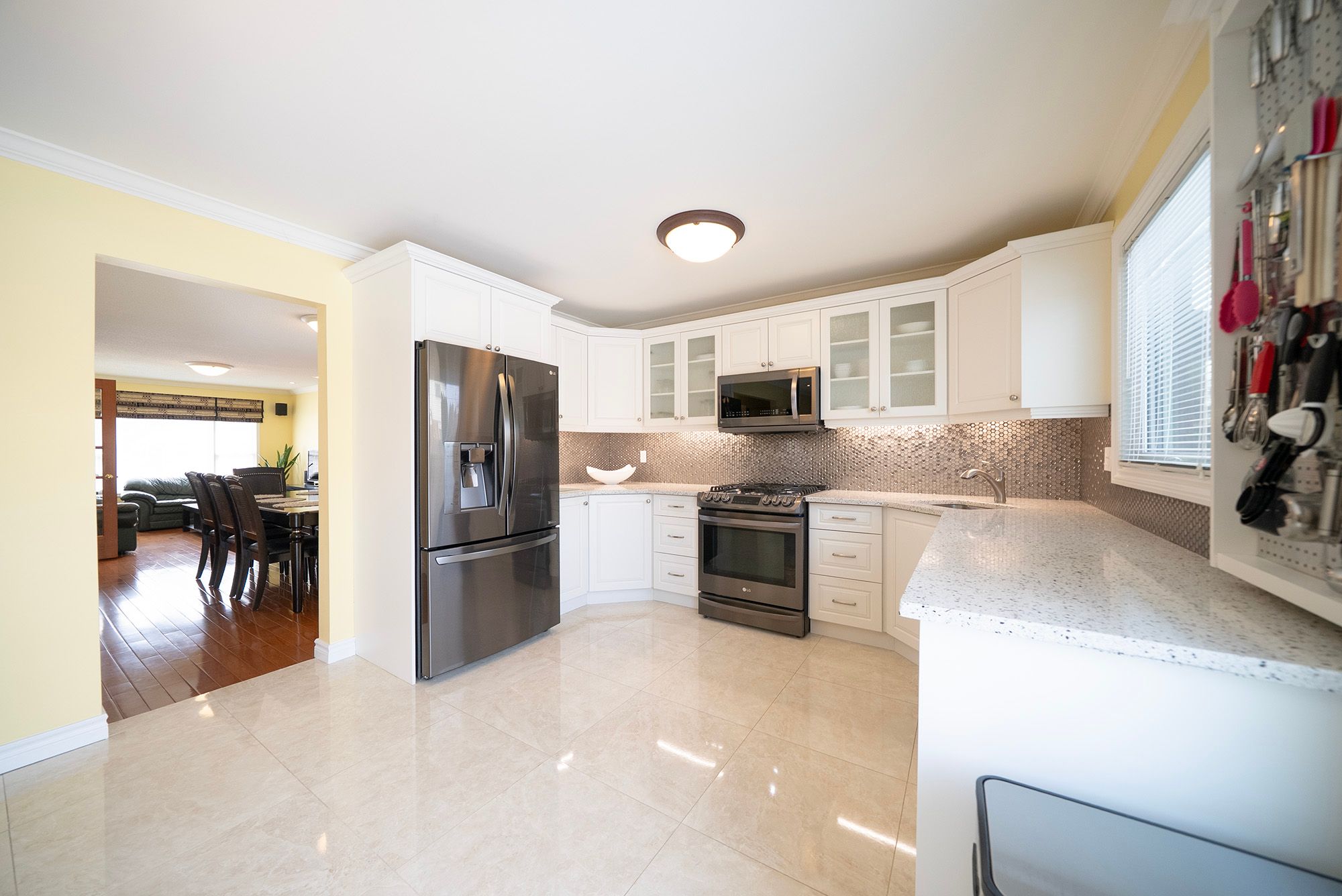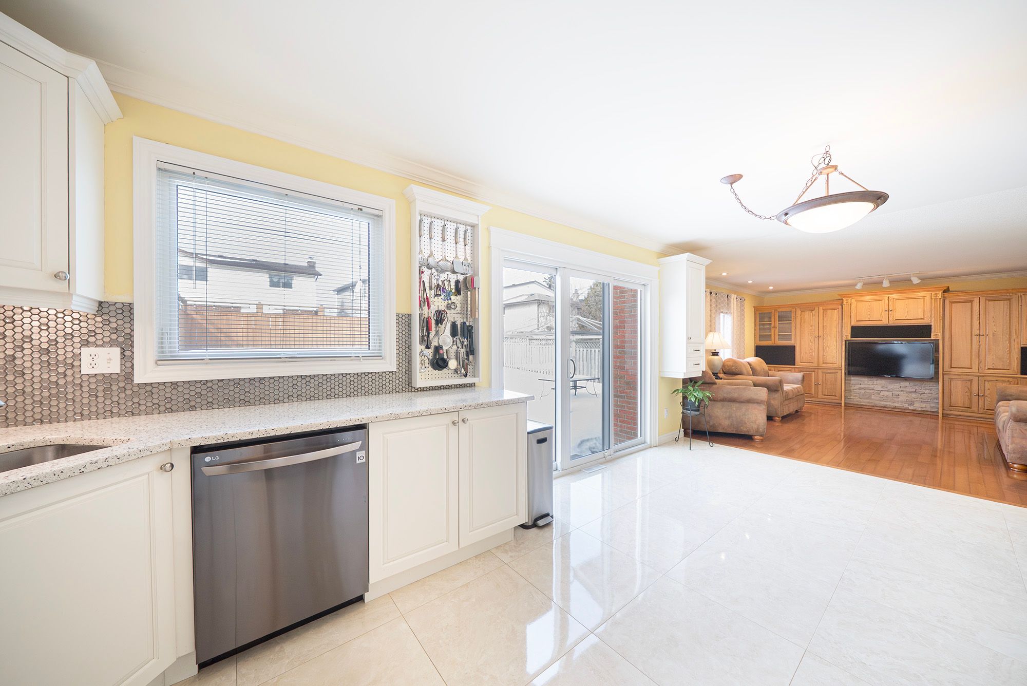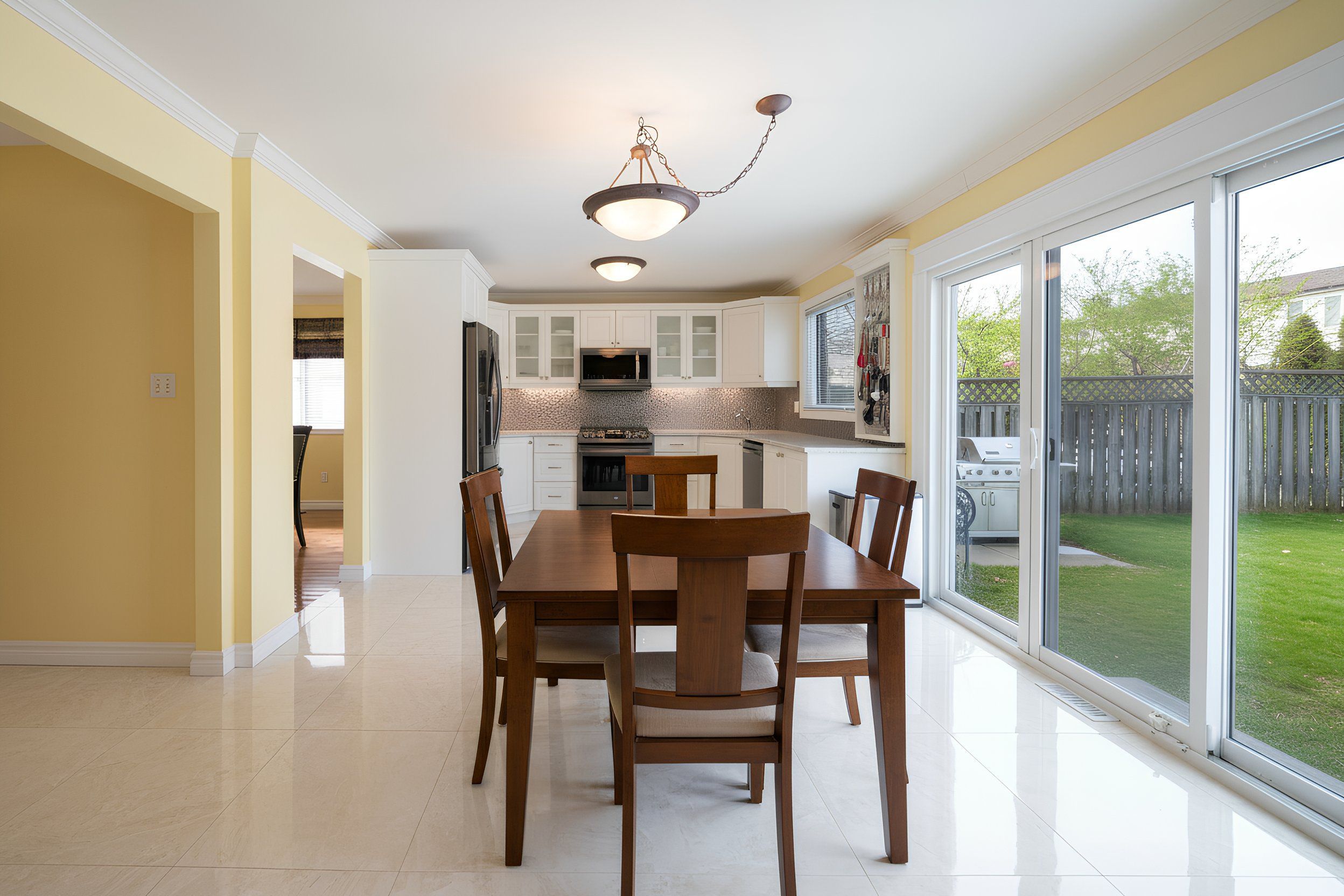 • Spacious eat-in kitchen with modern appliances and easy outdoor access.