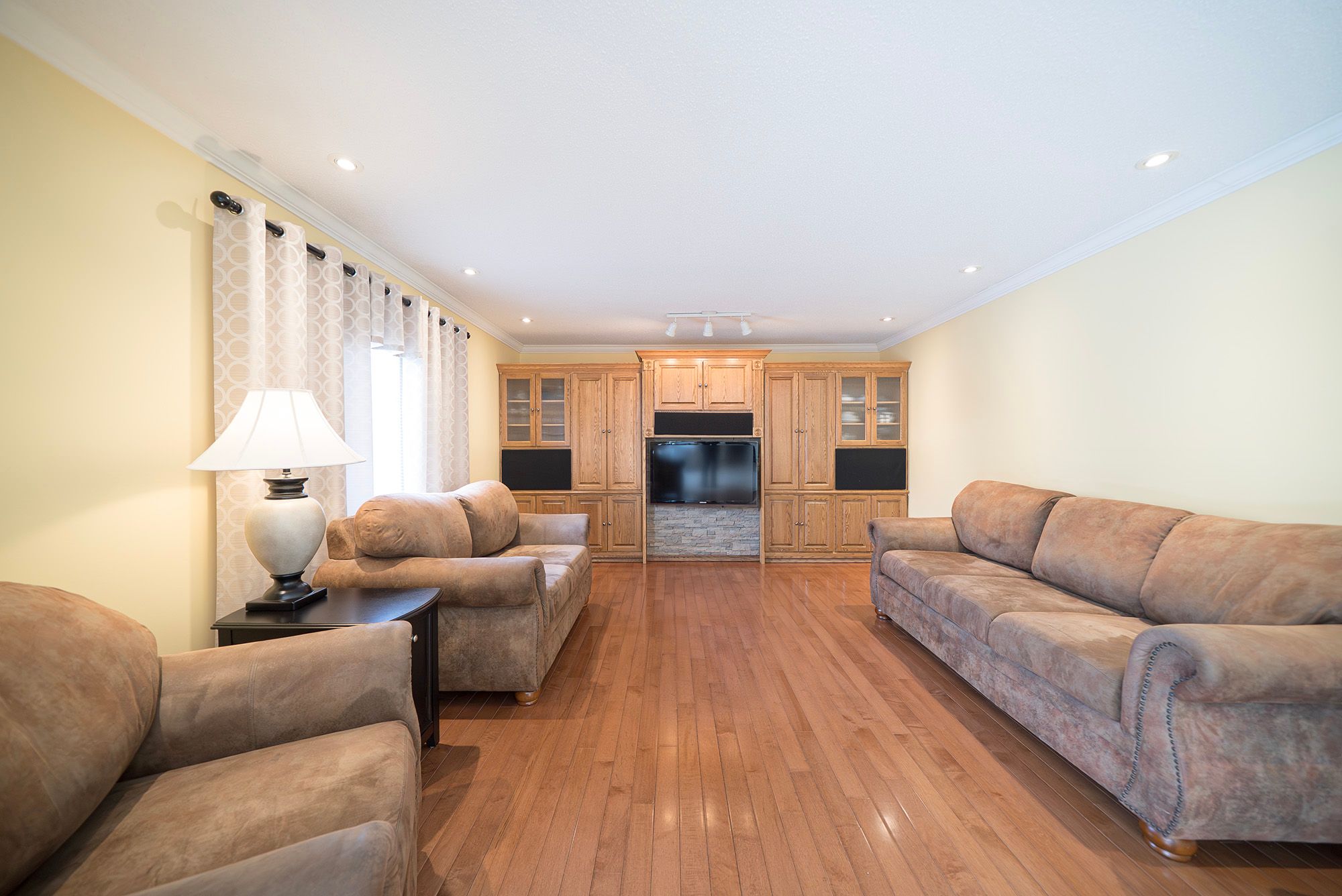 Welcome home to 43 flamingo drive, a spotless two-storey home in hamilton's sought-after bruleville neighbourhood, affectionately known as "birdland," one of the central mountain's most desirable areas. This turn-key residence offers 4+1 bedrooms, 3. 5 bathrooms, a finished basement with in-law suite & a fenced backyard with an above-ground pool. The tidy exterior, 2-car garage and poured concrete driveway & walkway create beautiful curb appeal. A double-door entry opens to a bright foyer with a sparkling tile floor leading into the main living areas. French doors open to a spacious living & dining area. Crown moulding, recessed lighting, fresh paint & gleaming chestnut hardwood floors enhance the bright, polished feel. The eat-in kitchen features tile flooring, shaker-style cabinetry with crown moulding & a sleek honeycomb tile backsplash. Dark lg appliances, including a gas stove, over-the-range microwave & built-in dishwasher, complement the space, while three-panel sliding doors walk out to the rear yard. Chestnut hardwood continues into the family room with recessed lighting & custom oak cabinetry. A 2 pc bathroom serves this level, while the main floor includes a laundry/mudroom with keyless-entry side door & garage access. The garage features an epoxy floor, built-in workbench & side door. The second floor offers 4 bedrooms, including the primary suite with dual closets & a 3pc ensuite. A 5pc bathroom serves the remaining bedrooms. The basement features an in-law suite with bedroom, living area & kitchenette with sink, fridge & counter space. A 4 pc bathroom includes an accessibility-friendly walk-in tub. An office with built-in desk & shelving offers flexible use with soundproof design & observation window. The fenced backyard features a poured concrete patio with gazebo. A 21 ft above-ground pool with cedar deck & gas line for the bbq and pool heater complete the space. Located within walking distance of schools, parks, lime ridge mall & all amenities.