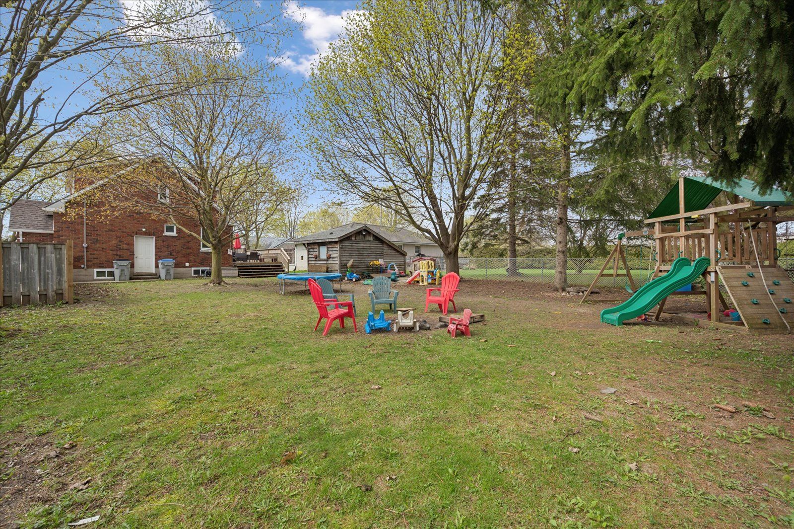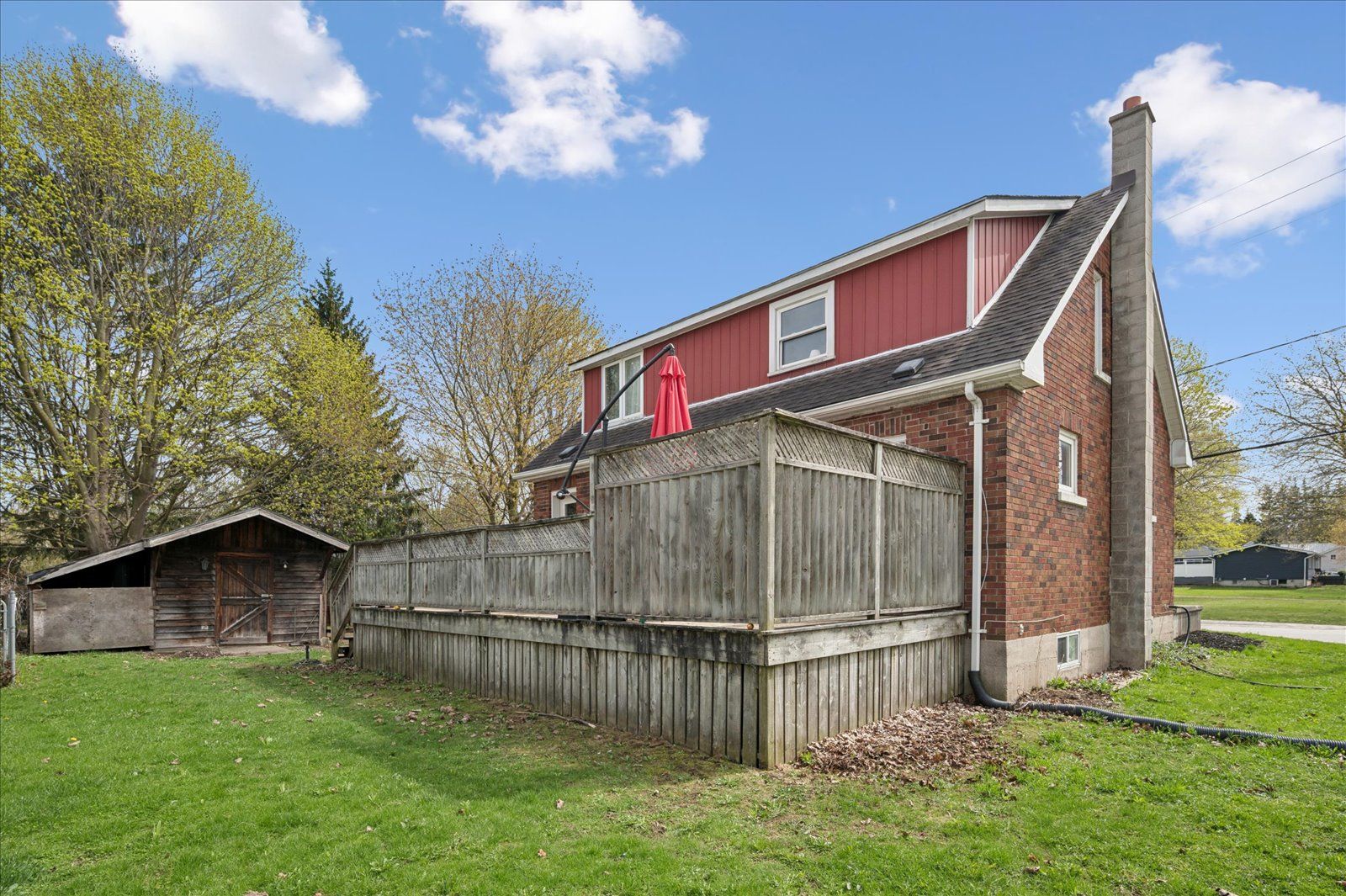 Experience small-town living at 43 flora street in brussels! This charming 1-storey detached home features 3 bedrooms and 1. 5 baths, situated on a large 60' x 132' corner lot. On the main level, you'll discover a bright and roomy living room, a separate dining room with doors leading to a private deck, and a generously sized kitchen complete with a pantry closet and a convenient two-piece powder room. Upstairs, you'll find a four-piece main bathroom with a jetted tub and a separate shower, along with three good-sized bedrooms. The outdoor space offers a fenced yard shaded by mature trees, perfect for relaxation and entertaining. Additionally, the concrete driveway accommodates 3 vehicles parked side by side. This home is ideally located just steps from downtown shopping and a short walk to brussels community park.