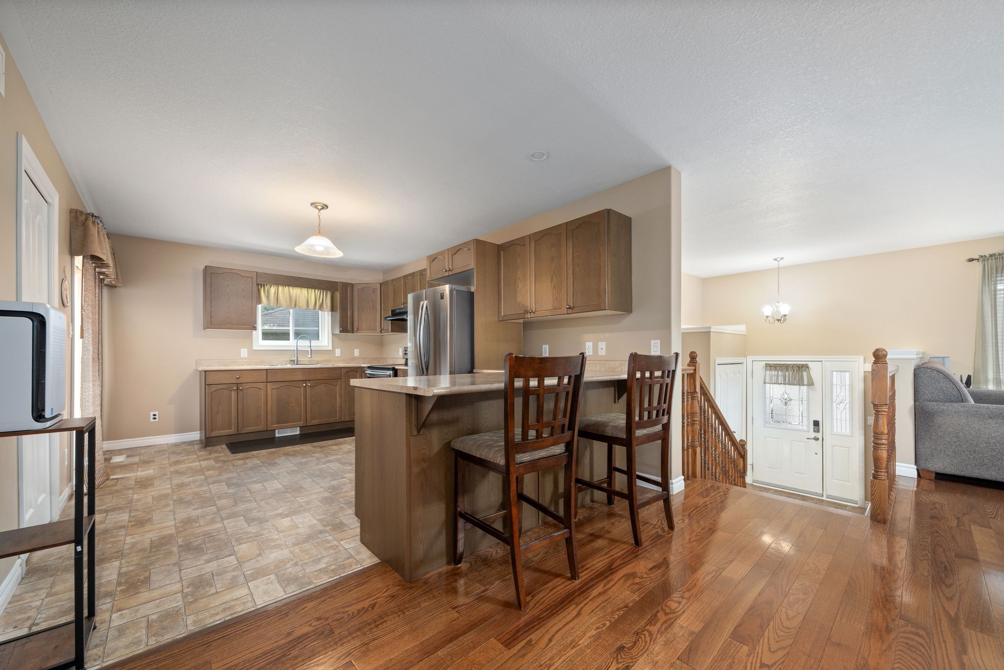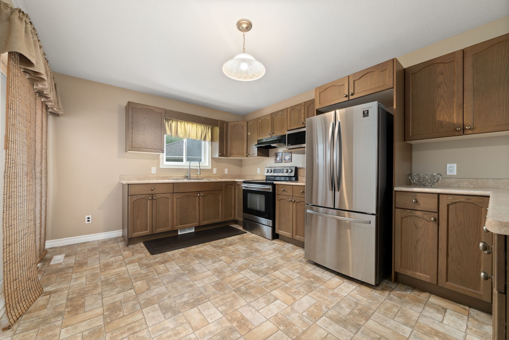 Welcome to this beautifully maintained 2+2 bedrooms, two bathrooms raised bungalow, ideally located in belleville's sought-after hillcrest neighborhood. Nestled on a quiet street, minutes from shopping, schools, and major amenities, this home offers the perfect combination of comfort, convenience, and charm. Step inside to a spacious front entry leading into a semi-open concept main floor with a warm and inviting living room, highlighted by a large sun-filled window and a cozy gas fireplace. The kitchen transitions seamlessly into the dining area and opens onto a sunny deck, perfect for barbecues or quiet mornings with coffee. The pie-shaped lot offers a generous, fenced backyard, complete with stairs from the deck down to a ground-level patio, perfect for gatherings or relaxing afternoons. The main floor features two bedrooms with a brand new carpet , including a spacious primary bedroom with a walk-in closet. The fully finished lower level offers excellent in-law suite potential, complete with a rec room, two additional bedrooms, a modern 3-piece bath with oversized shower, and a laundry area. Additional highlights include an attached single car garage, ample parking, and proximity to cfb trenton (20 minutes). Highway 401( just 5 minutes). St theresa secondary school, hillcrest park, and hillcrest community centre. Whether you are a growing family downsizing, or seeking a move-in-ready home in a desirable location, this property truly has it all.