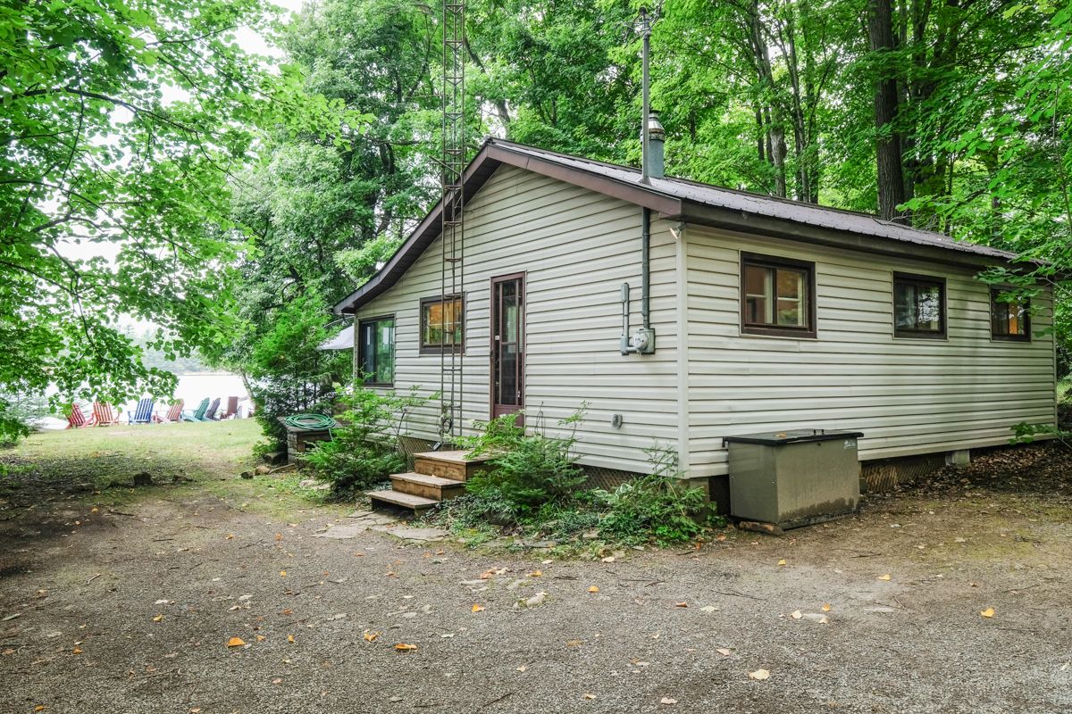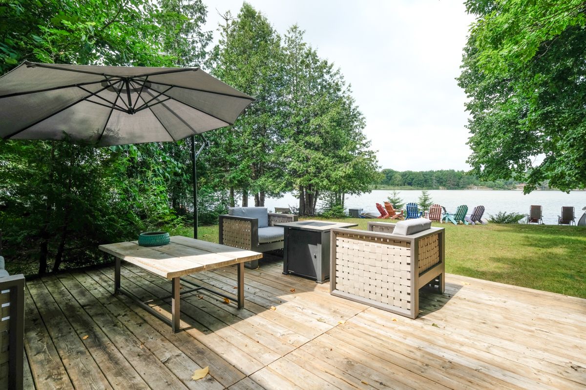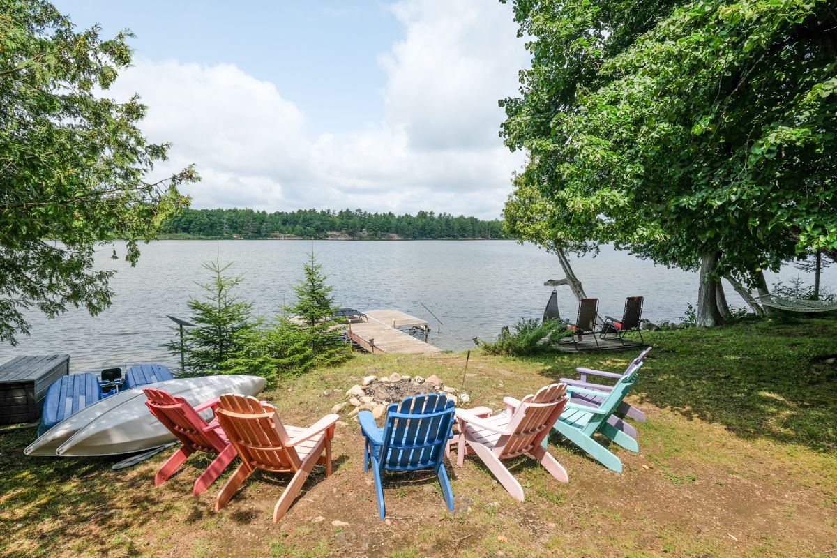 This two-bedroom talbot lake cottage features sunny open concept and cozy charm. A wall of windows faces the lake, with westerly views capturing gorgeous sunsets. Giant deck, open yard, fire pit, and plenty of lounging areas invite you to spend your days soaking up the sun and cooling off in the lake. Talbot lake is perfect for canoe, kayak, paddleboat, or sup and with only 14 cottages on the lake, the serenity is palpable. This four-season cottage is heated with a propane stove and features a drilled well. Three outbuildings include a woodshed, a 20 x 12 garage with power, and a 10 x 9 storage shed with power. All indoor and outdoor furnishings can be included.
