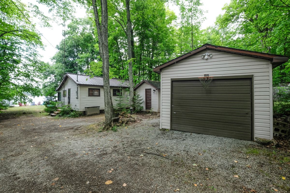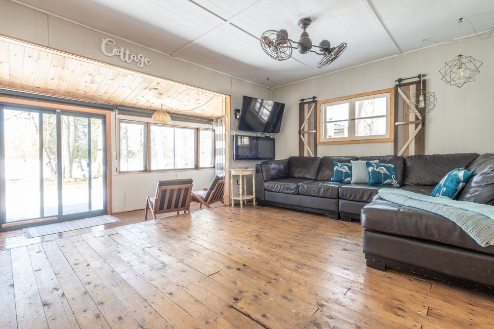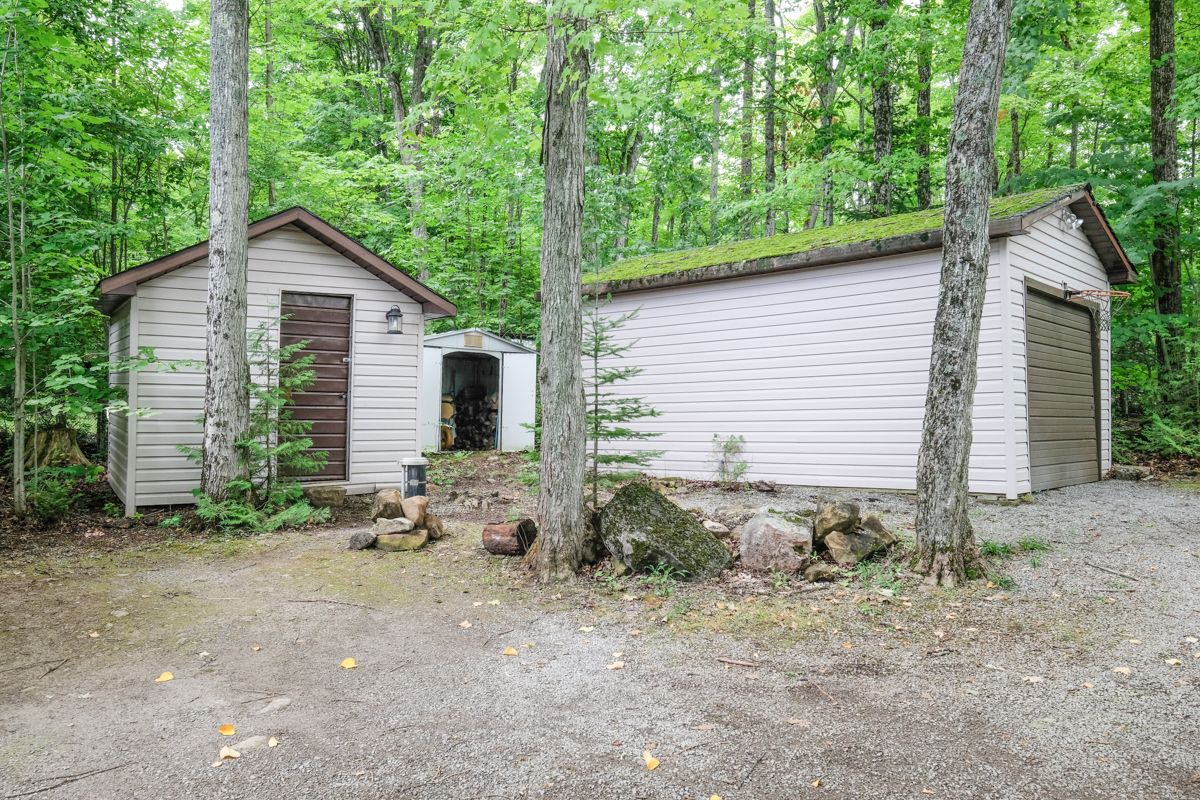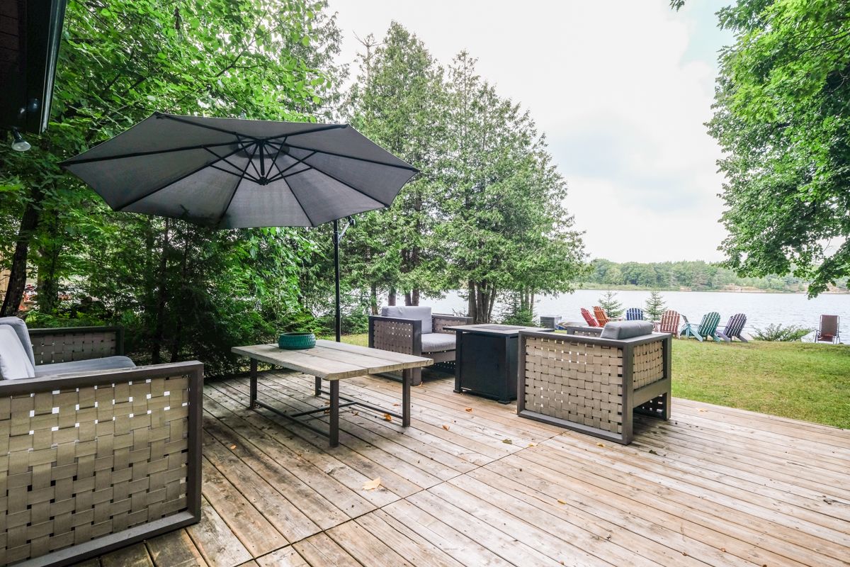 This two-bedroom talbot lake cottage features sunny open concept and cozy charm. A wall of windows faces the lake, with westerly views capturing gorgeous sunsets. Giant deck, open yard, fire pit, and plenty of lounging areas invite you to spend your days soaking up the sun and cooling off in the lake. Talbot lake is perfect for canoe, kayak, paddleboat, or sup and with only 14 cottages on the lake, the serenity is palpable. This four-season cottage is heated with a propane stove and features a drilled well. Three outbuildings include a woodshed, a 20 x 12 garage with power, and a 10 x 9 storage shed with power. All indoor and outdoor furnishings can be included.