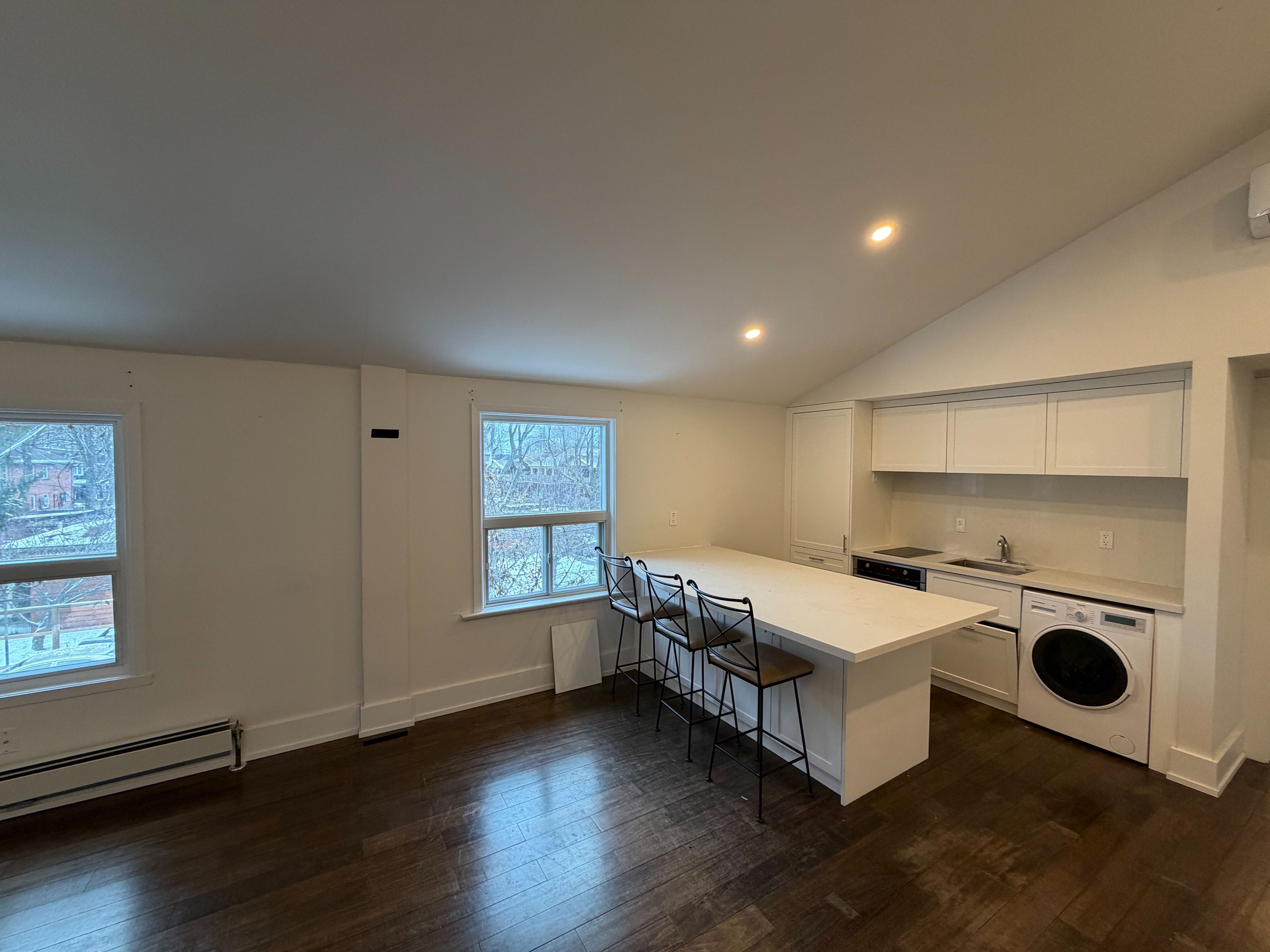 This gem of a beaches rental, a charming 2-bedroom upper-level apartment, is just a quick stroll to the boardwalk. It features a spacious open-concept living room with vaulted ceilings, a decorative fireplace, and an oversized kitchen island perfect for entertaining. Bright, airy bedrooms and abundant natural light fill the space. Enjoy lovely lake views as you stroll outside, bringing that beach vibe to your day. Plus, one parking spot is included!