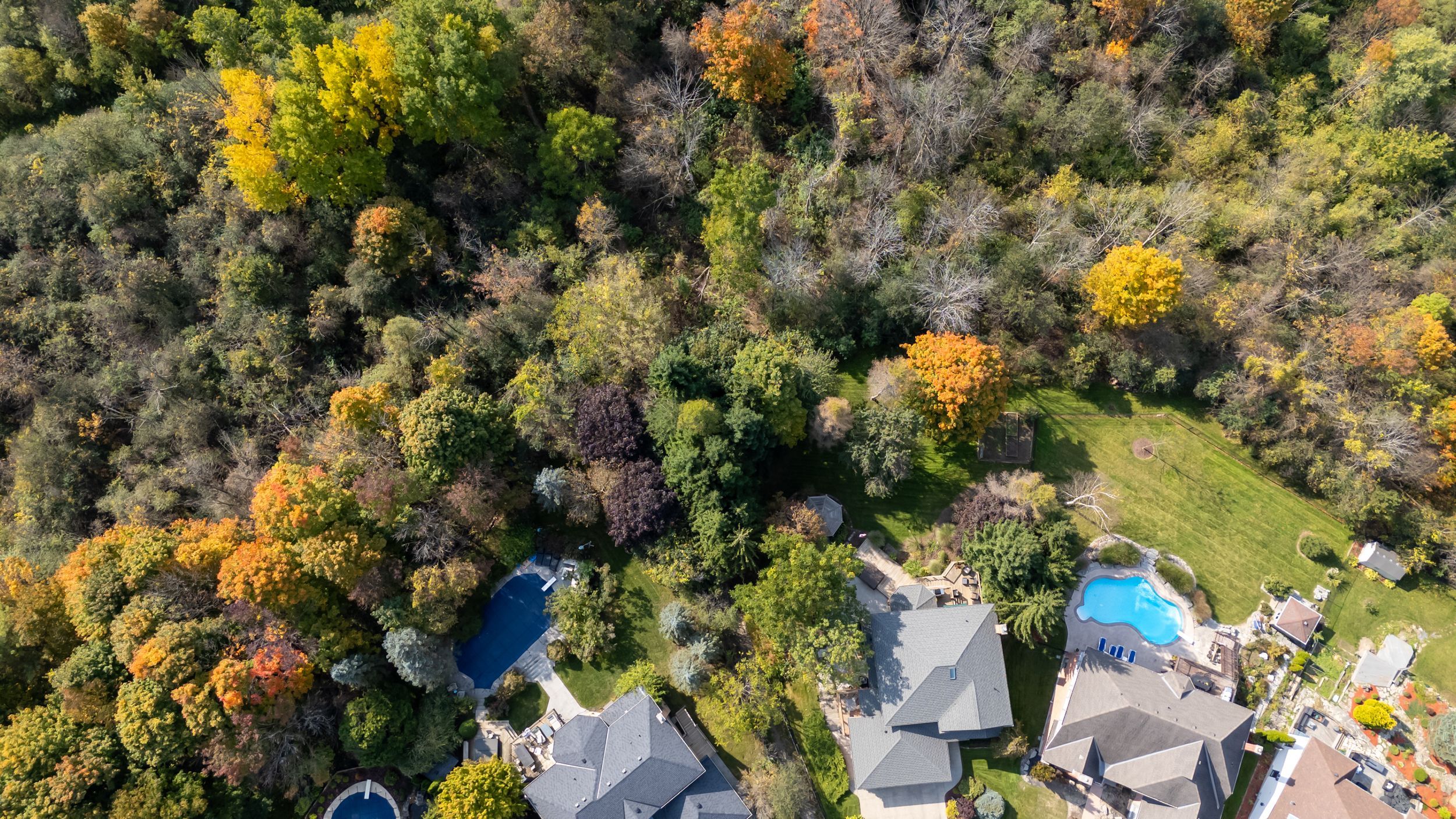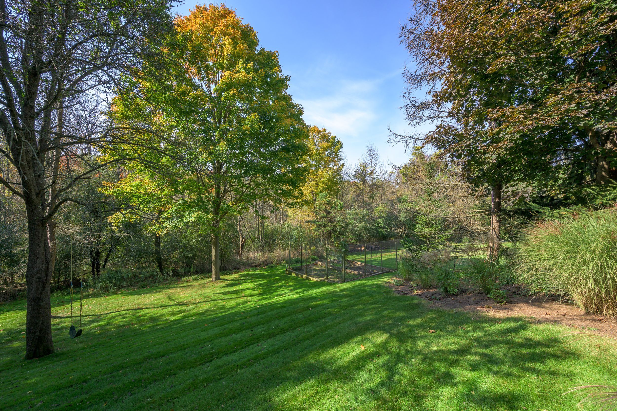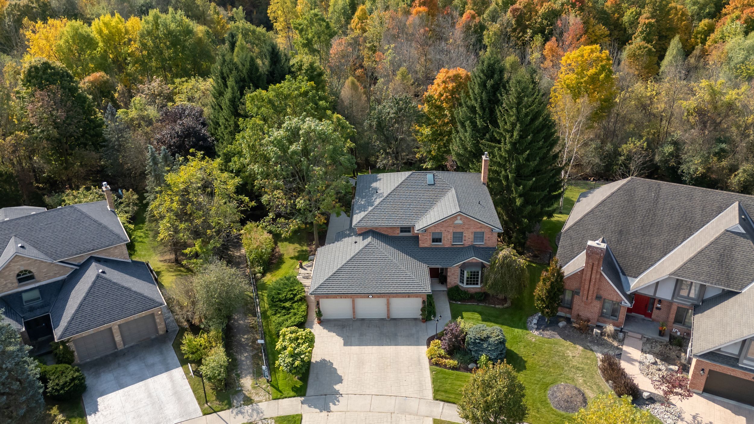 • Located on a pie-shaped ravine lot with scenic views and privacy.