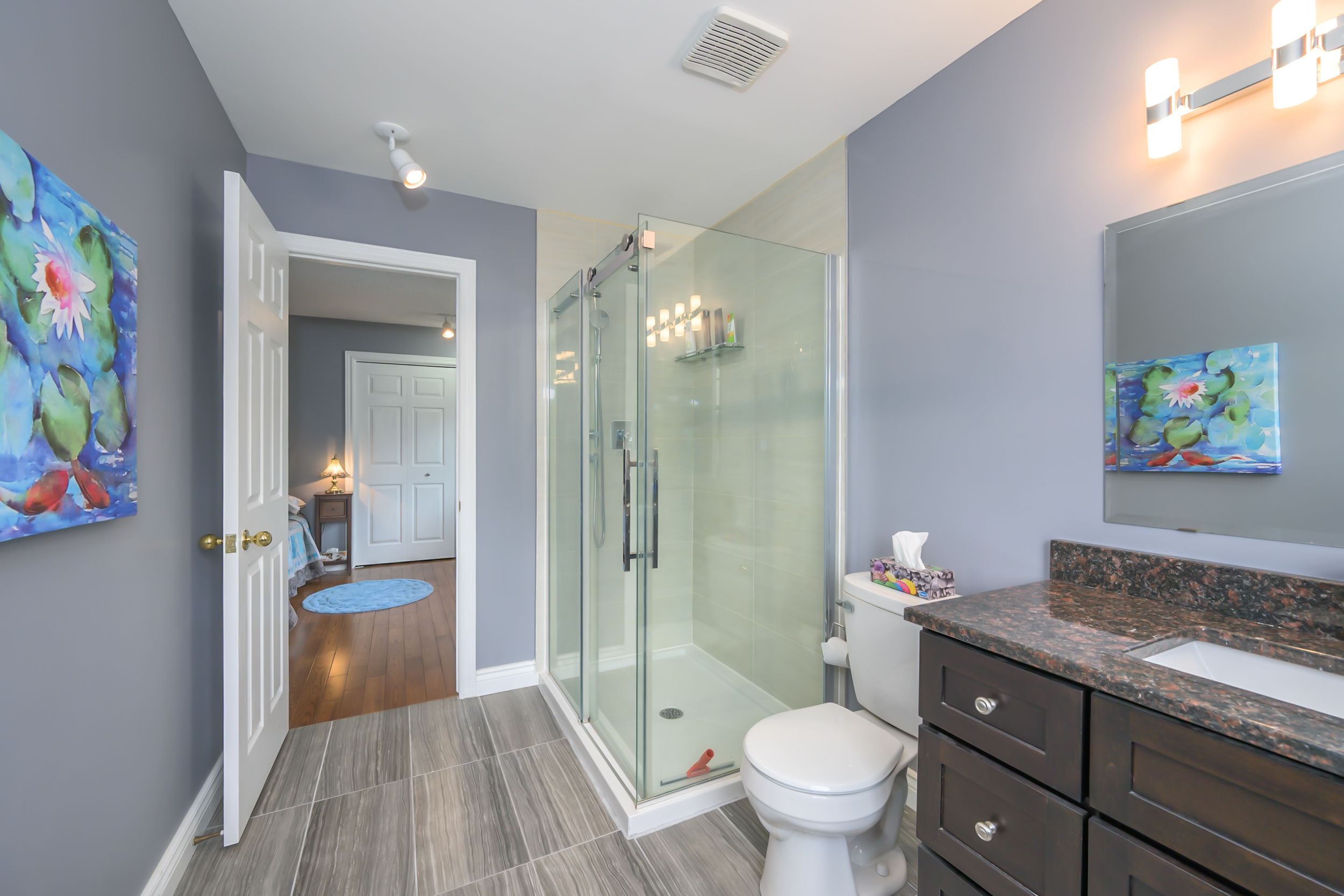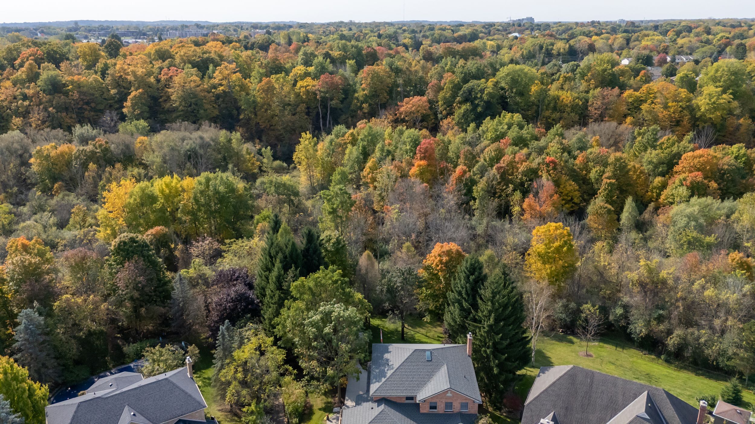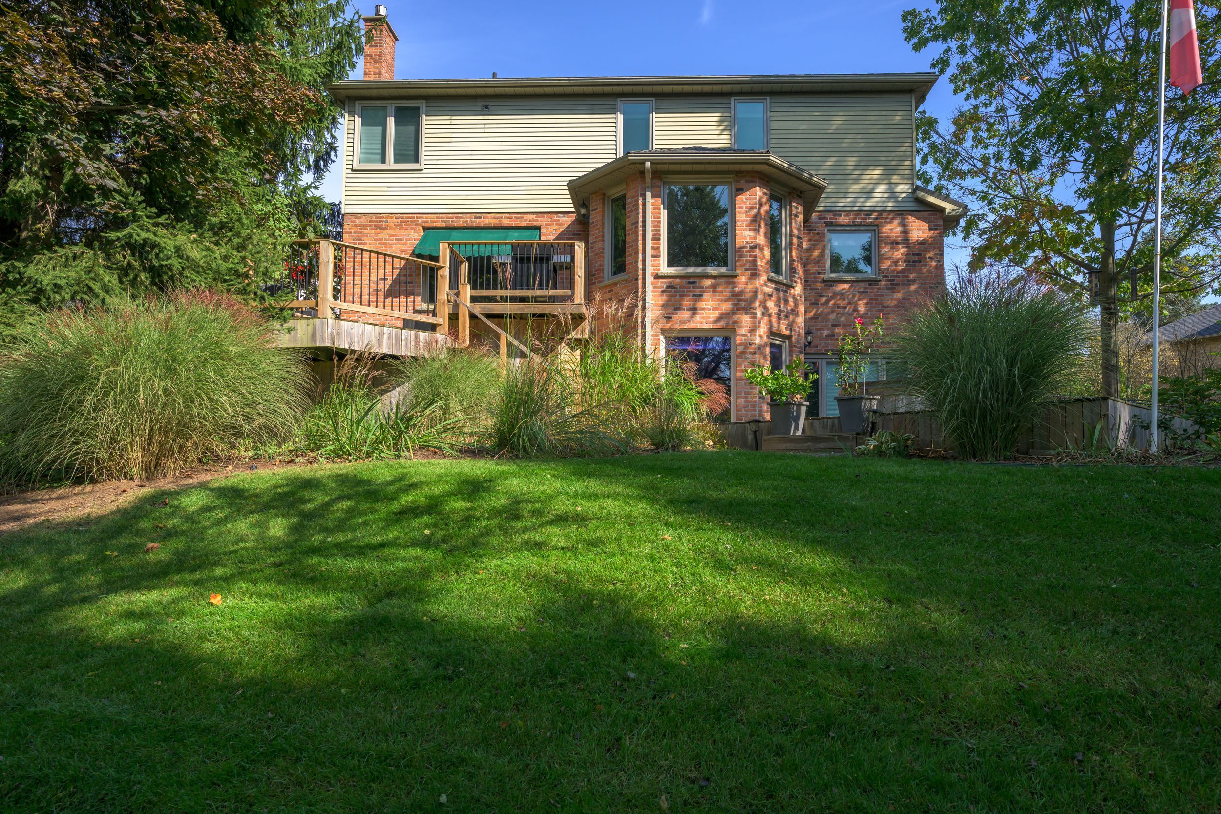 • Located on a pie-shaped ravine lot with scenic views and privacy.
