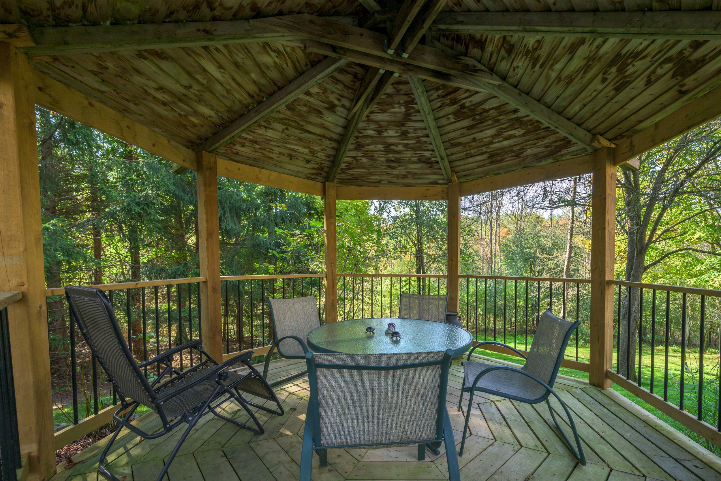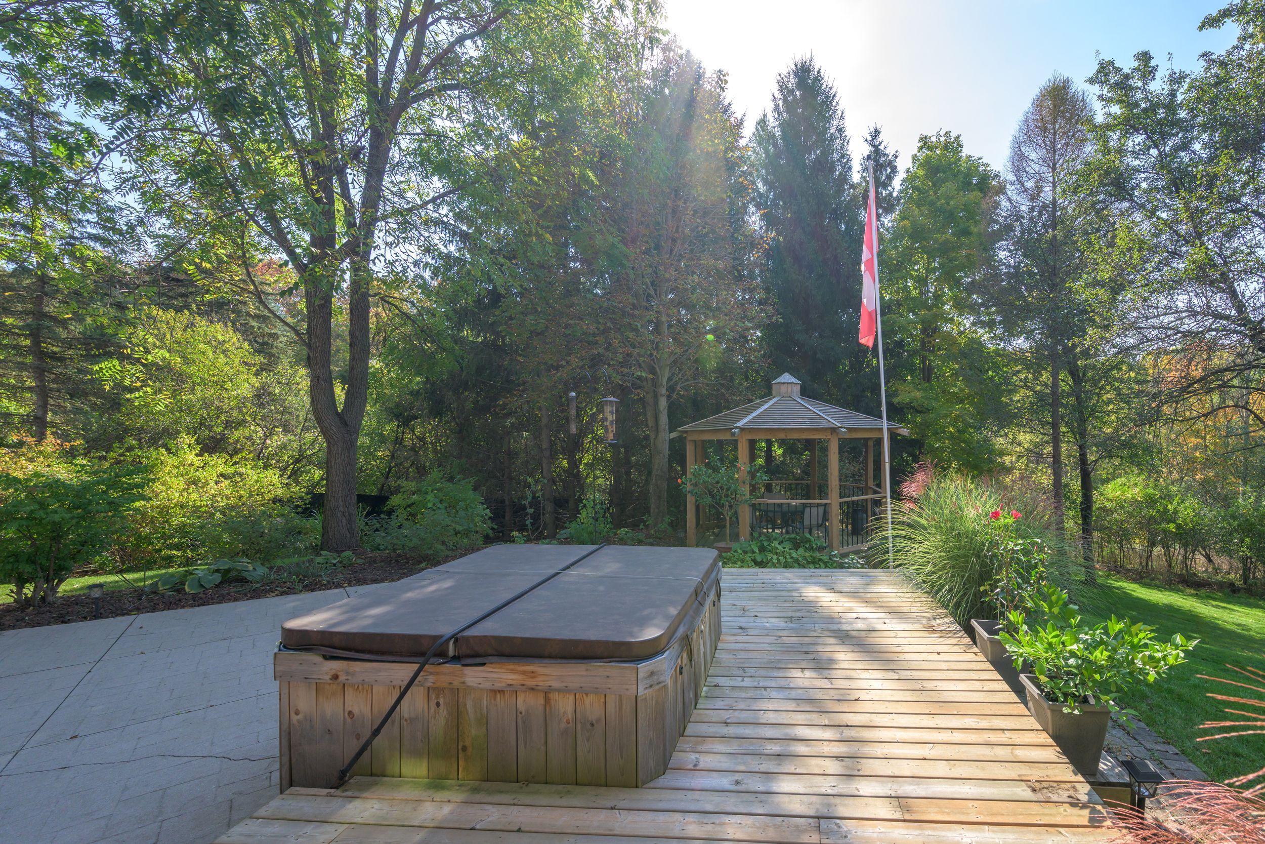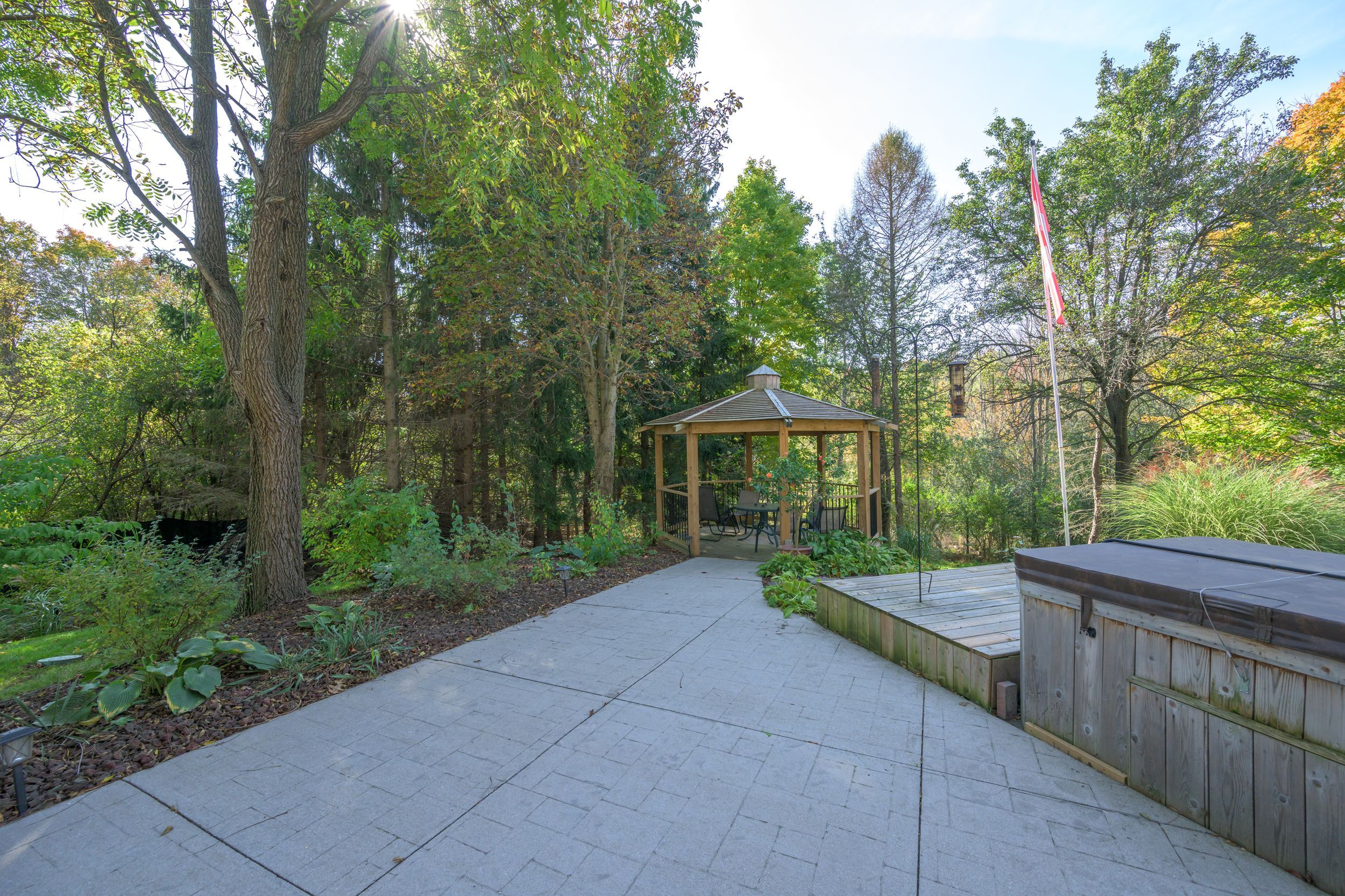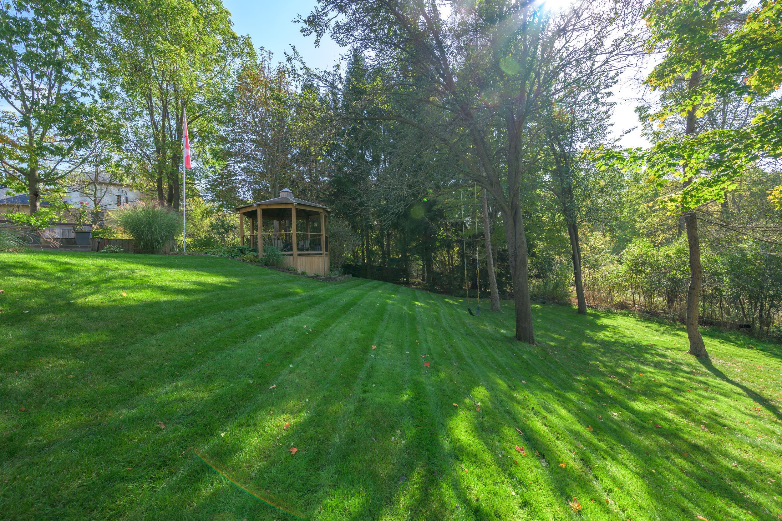 • Well-landscaped yard with gazebo, perfect for pets and family gatherings.
