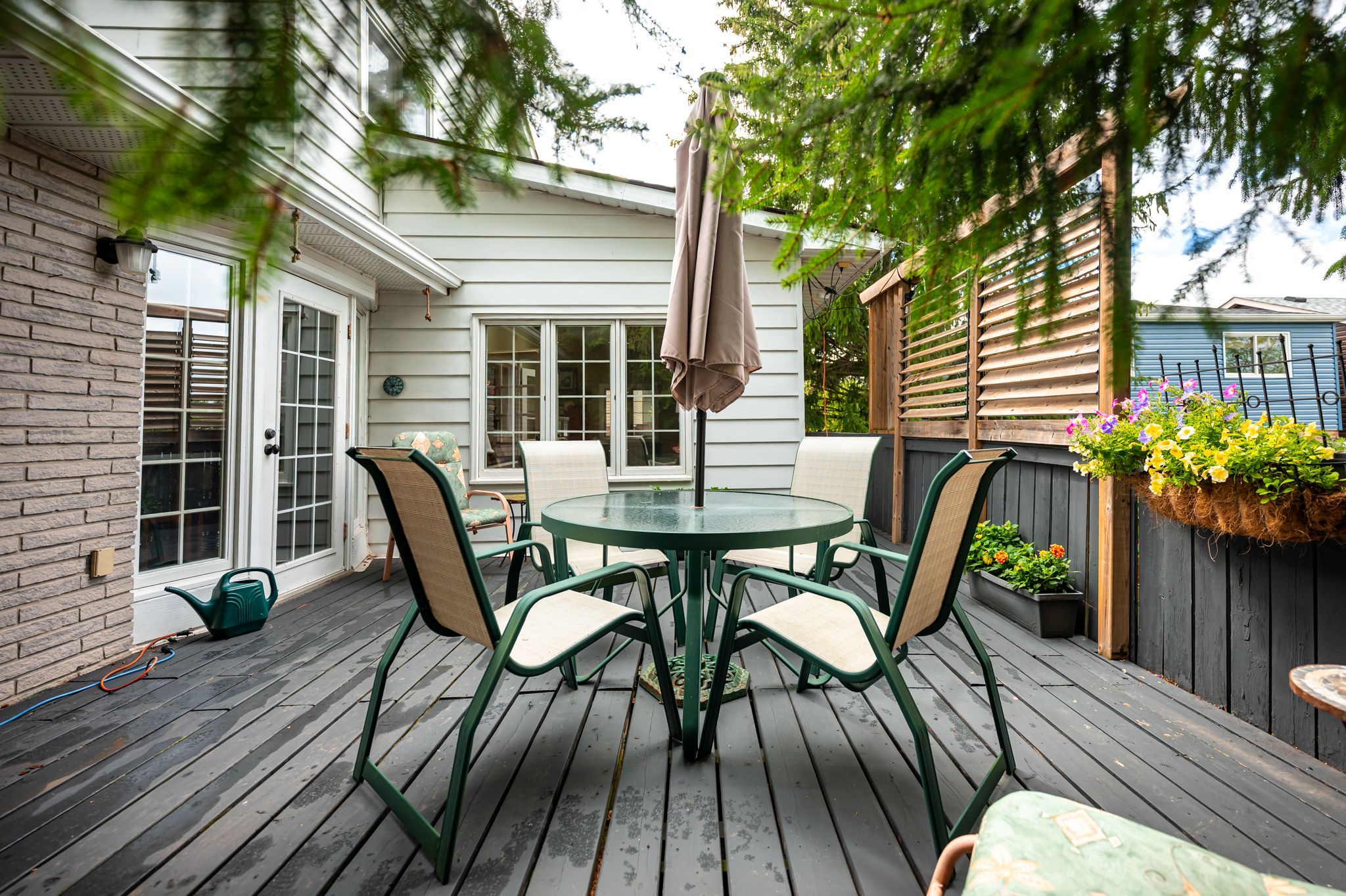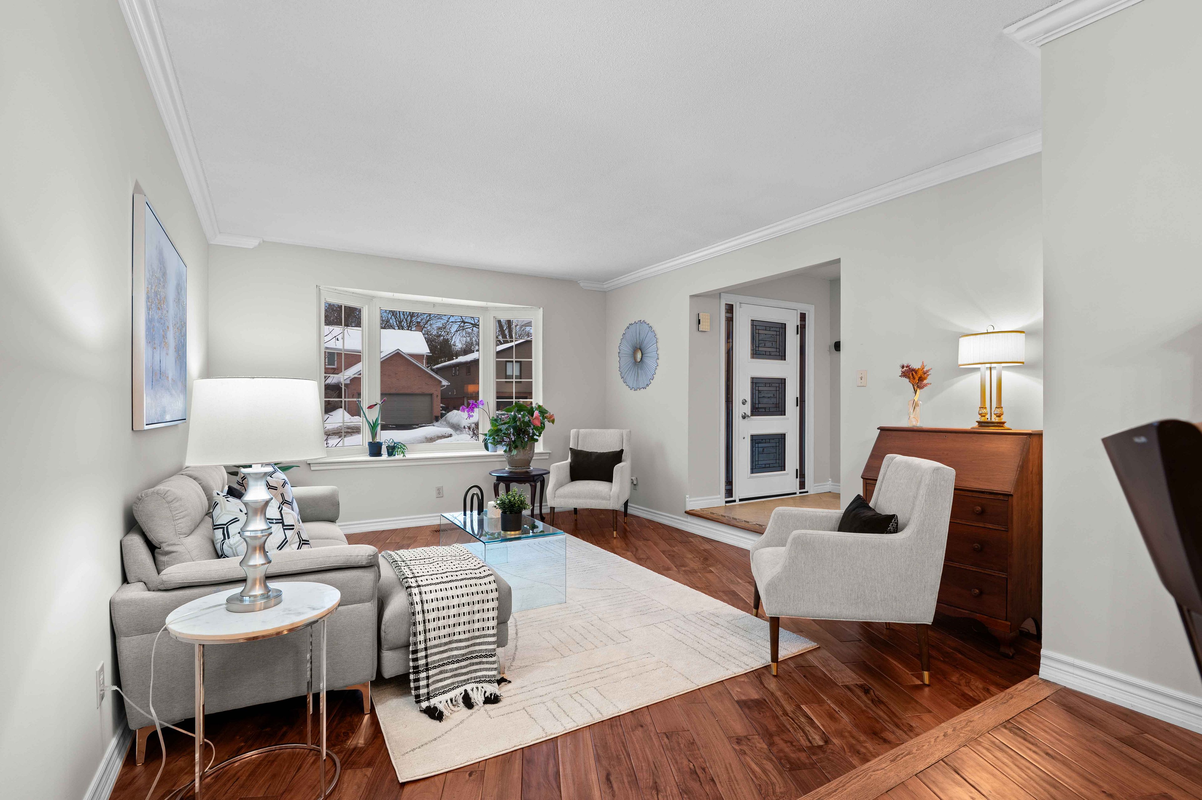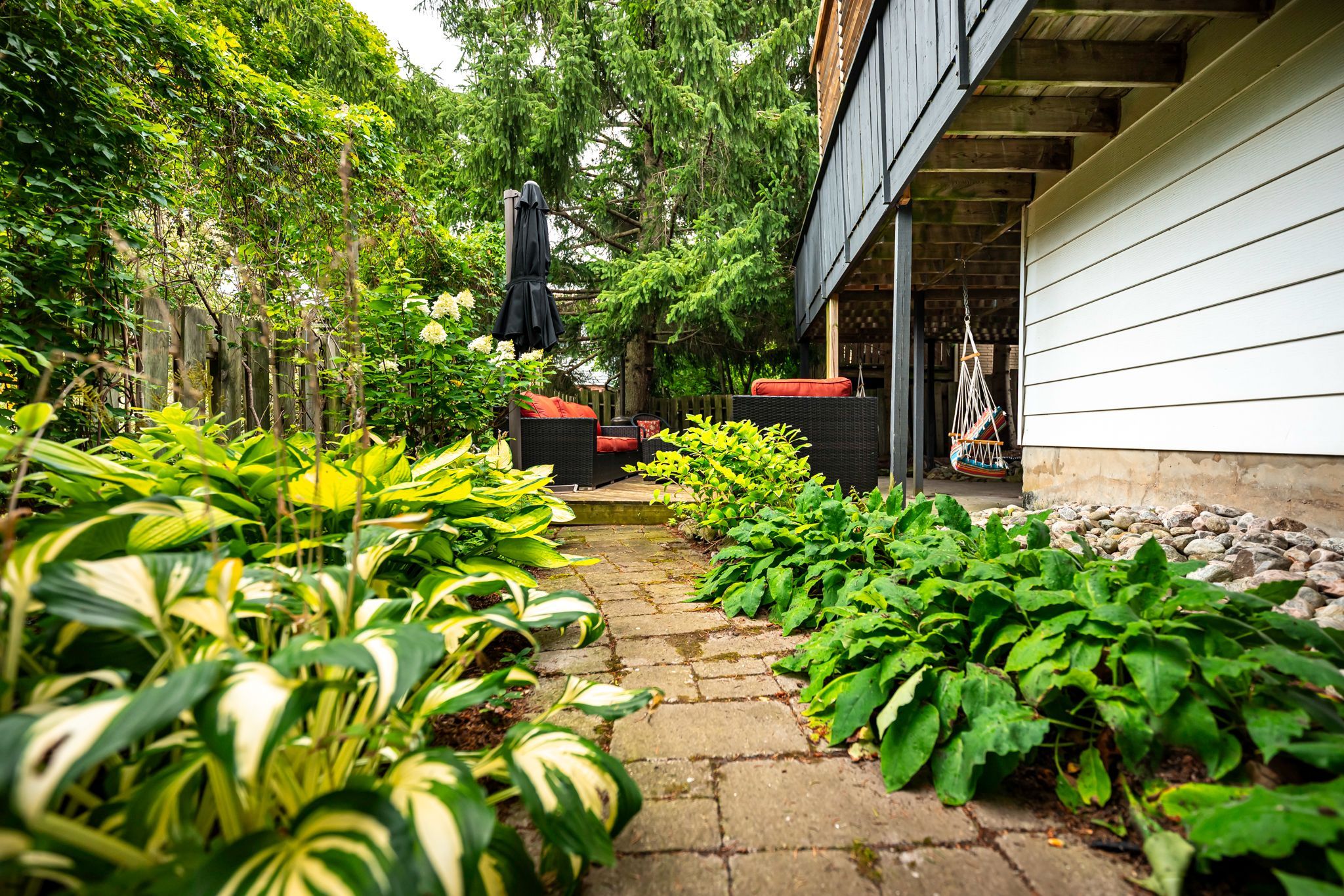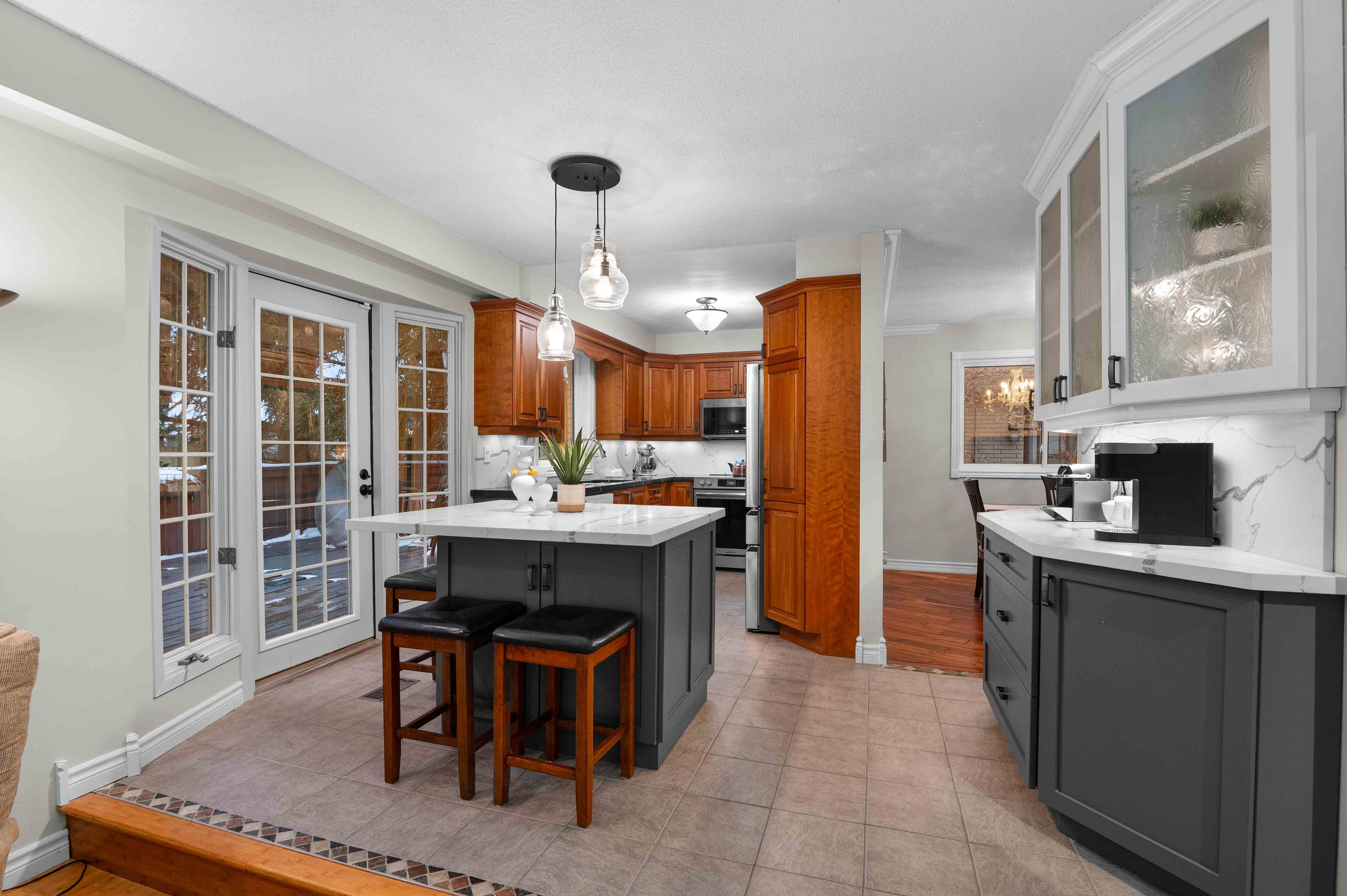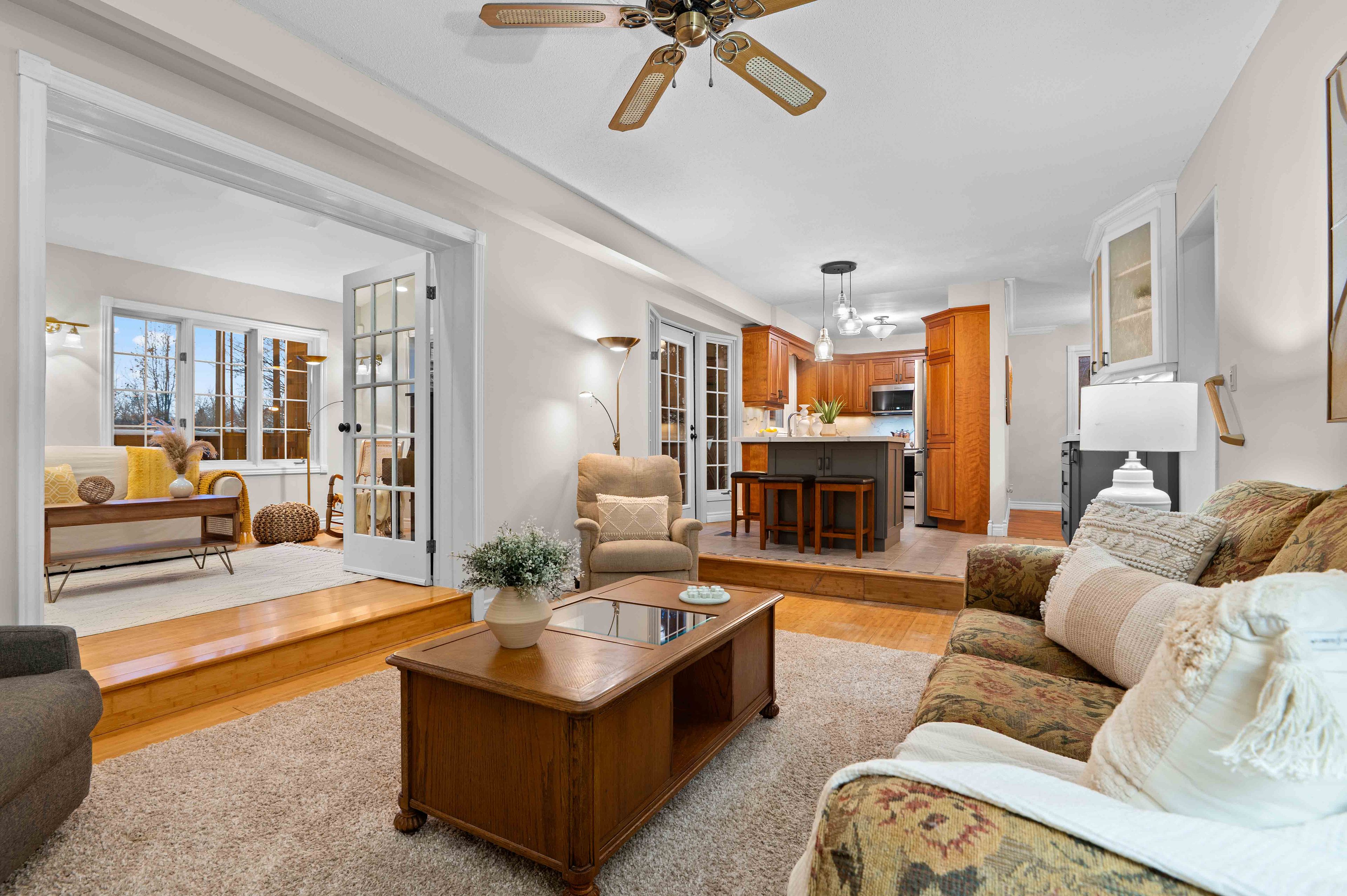 Located in the heart of downtown orangeville, 43 goldgate crescent offers a rare combination of walkable convenience and quiet residential living in a mature neighbourhood. Set on a mature, tree lined street just steps to schools, restaurants, and shopping, this home delivers both character and everyday ease. This thoughtfully designed two storey home offers exceptional versatility and generous living space throughout. An attached two car garage with interior access adds convenience, while the bright formal living room with hardwood flooring and bay window flows seamlessly into the dining room, creating an ideal space for gatherings. The spacious eat in kitchen features ample cabinetry, a dedicated coffee bar, centre island with breakfast bar seating, and open sightlines to the family room with hardwood flooring, built in shelving, and a wood burning fireplace. A walk out leads to the expansive upper deck overlooking the private backyard. French doors open into a sunroom wrapped in windows, complete with hardwood flooring, a walk out to the deck, and a spiral staircase leading to a lower level games room with its own separate walk out. Upstairs offers three bedrooms and a four piece bathroom, including a spacious primary retreat with walk in closet and private three piece ensuite. The finished lower level includes a large four piece bathroom and an open concept kitchen, dining, and living area with walk out to a covered patio. A separate area off the living space is ideal for an additional bedroom or office. This level offers excellent potential for extended family or in law capability. The fully fenced backyard features mature perennial gardens, a large upper deck, covered patio, and lower deck, creating multiple outdoor living spaces in a private setting.