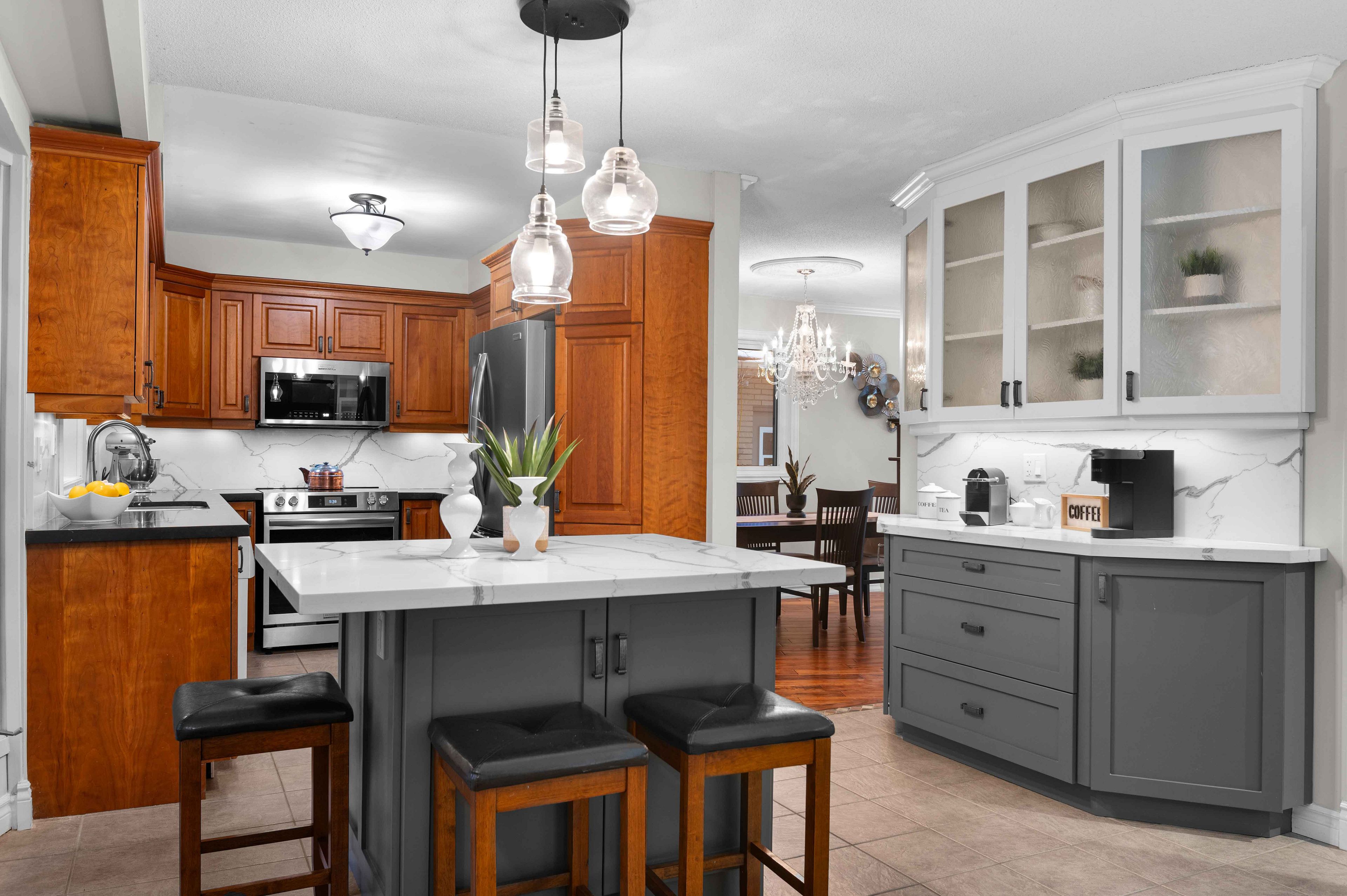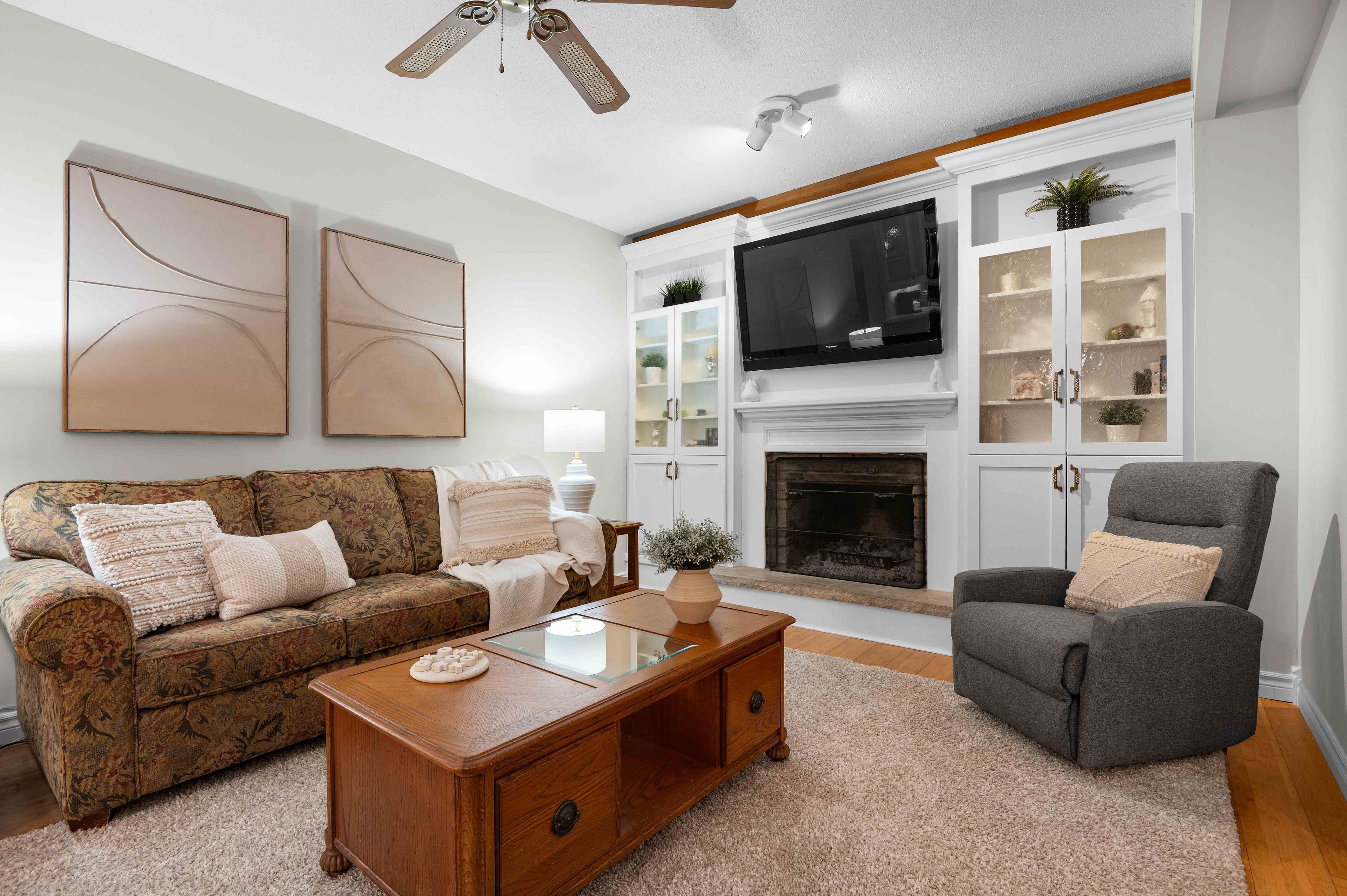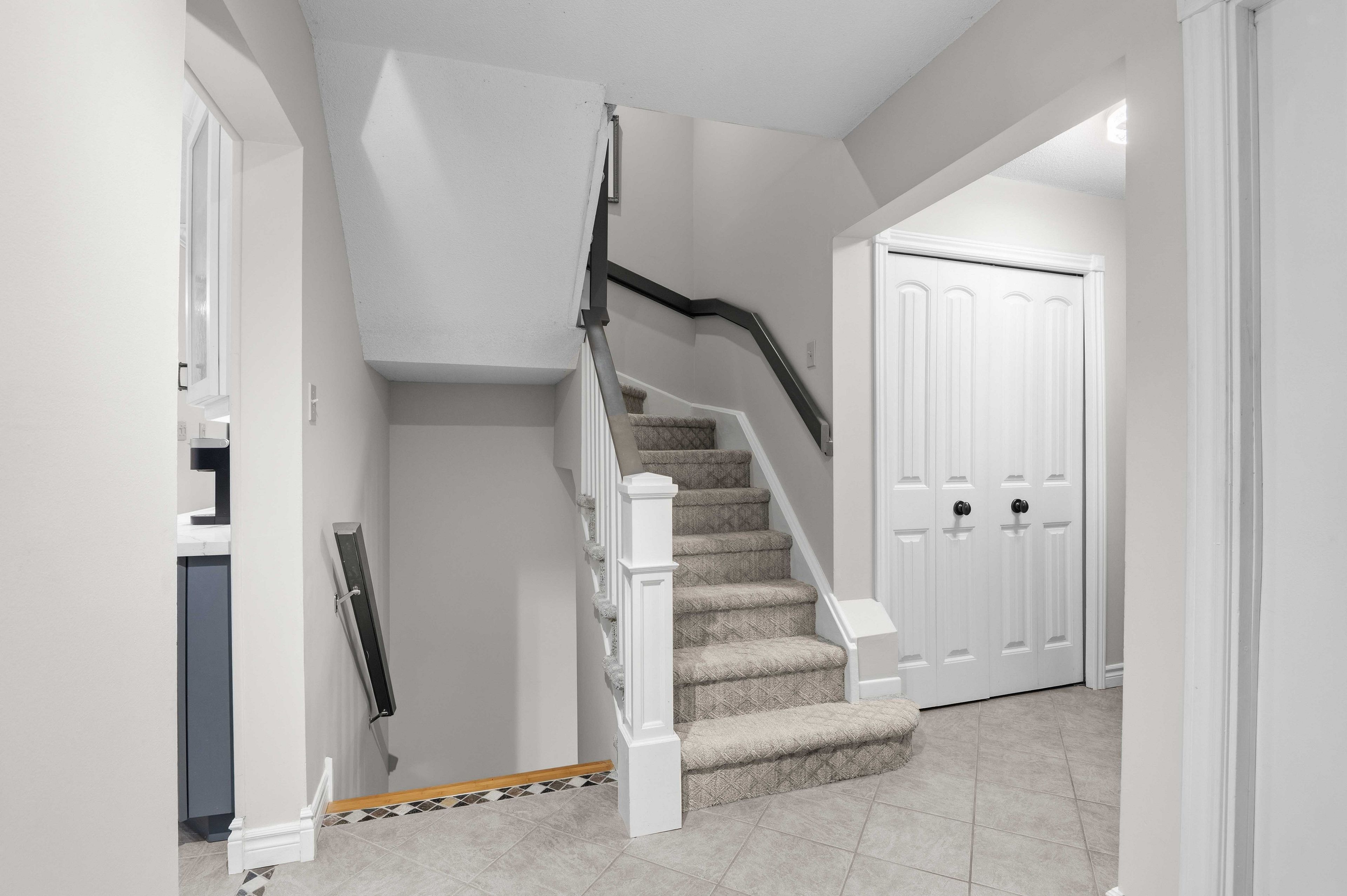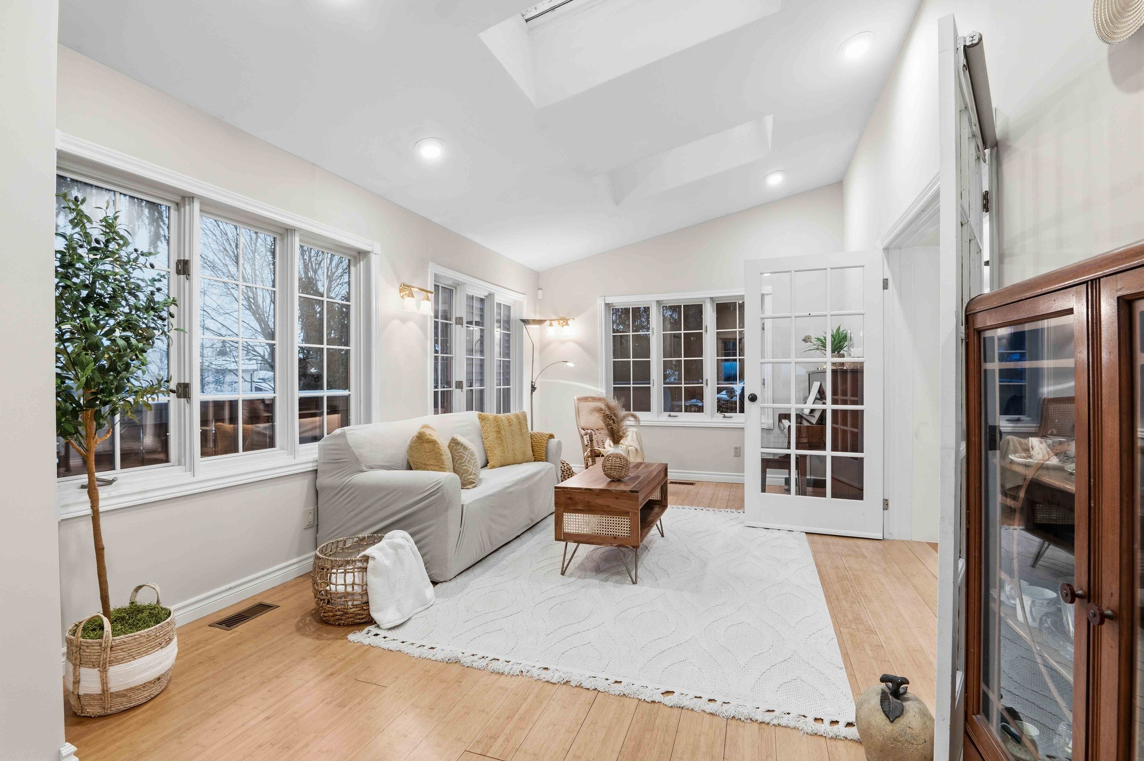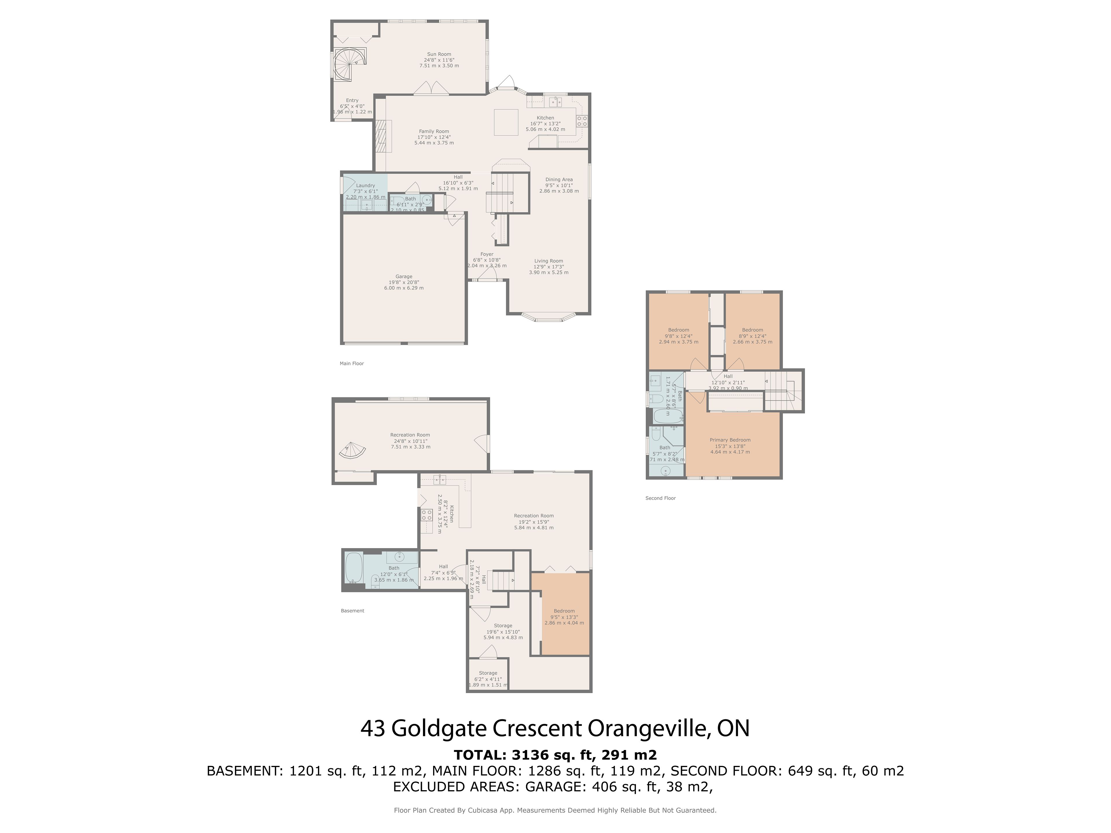 Located in the heart of downtown orangeville, 43 goldgate crescent offers a rare combination of walkable convenience and quiet residential living in a mature neighbourhood. Set on a mature, tree lined street just steps to schools, restaurants, and shopping, this home delivers both character and everyday ease. This thoughtfully designed two storey home offers exceptional versatility and generous living space throughout. An attached two car garage with interior access adds convenience, while the bright formal living room with hardwood flooring and bay window flows seamlessly into the dining room, creating an ideal space for gatherings. The spacious eat in kitchen features ample cabinetry, a dedicated coffee bar, centre island with breakfast bar seating, and open sightlines to the family room with hardwood flooring, built in shelving, and a wood burning fireplace. A walk out leads to the expansive upper deck overlooking the private backyard. French doors open into a sunroom wrapped in windows, complete with hardwood flooring, a walk out to the deck, and a spiral staircase leading to a lower level games room with its own separate walk out. Upstairs offers three bedrooms and a four piece bathroom, including a spacious primary retreat with walk in closet and private three piece ensuite. The finished lower level includes a large four piece bathroom and an open concept kitchen, dining, and living area with walk out to a covered patio. A separate area off the living space is ideal for an additional bedroom or office. This level offers excellent potential for extended family or in law capability. The fully fenced backyard features mature perennial gardens, a large upper deck, covered patio, and lower deck, creating multiple outdoor living spaces in a private setting.