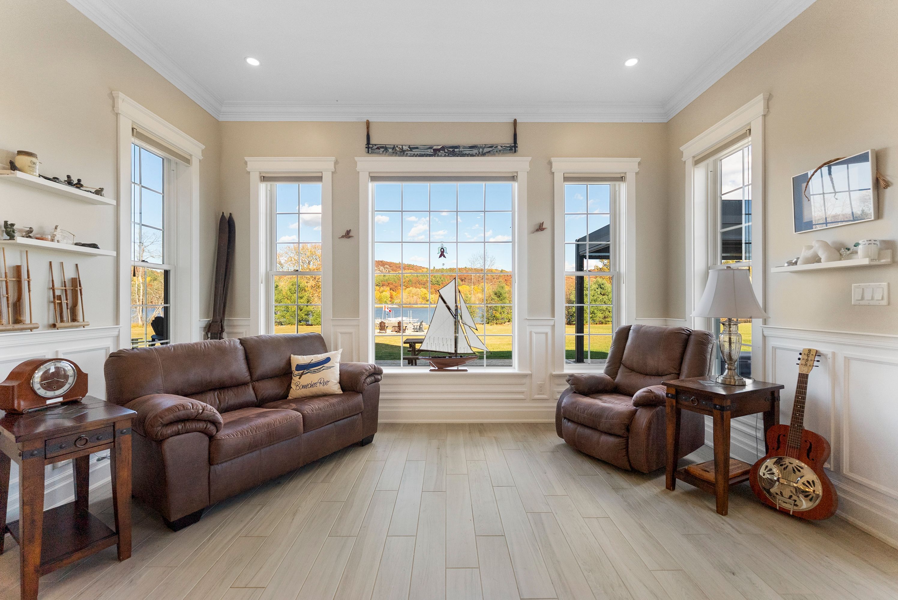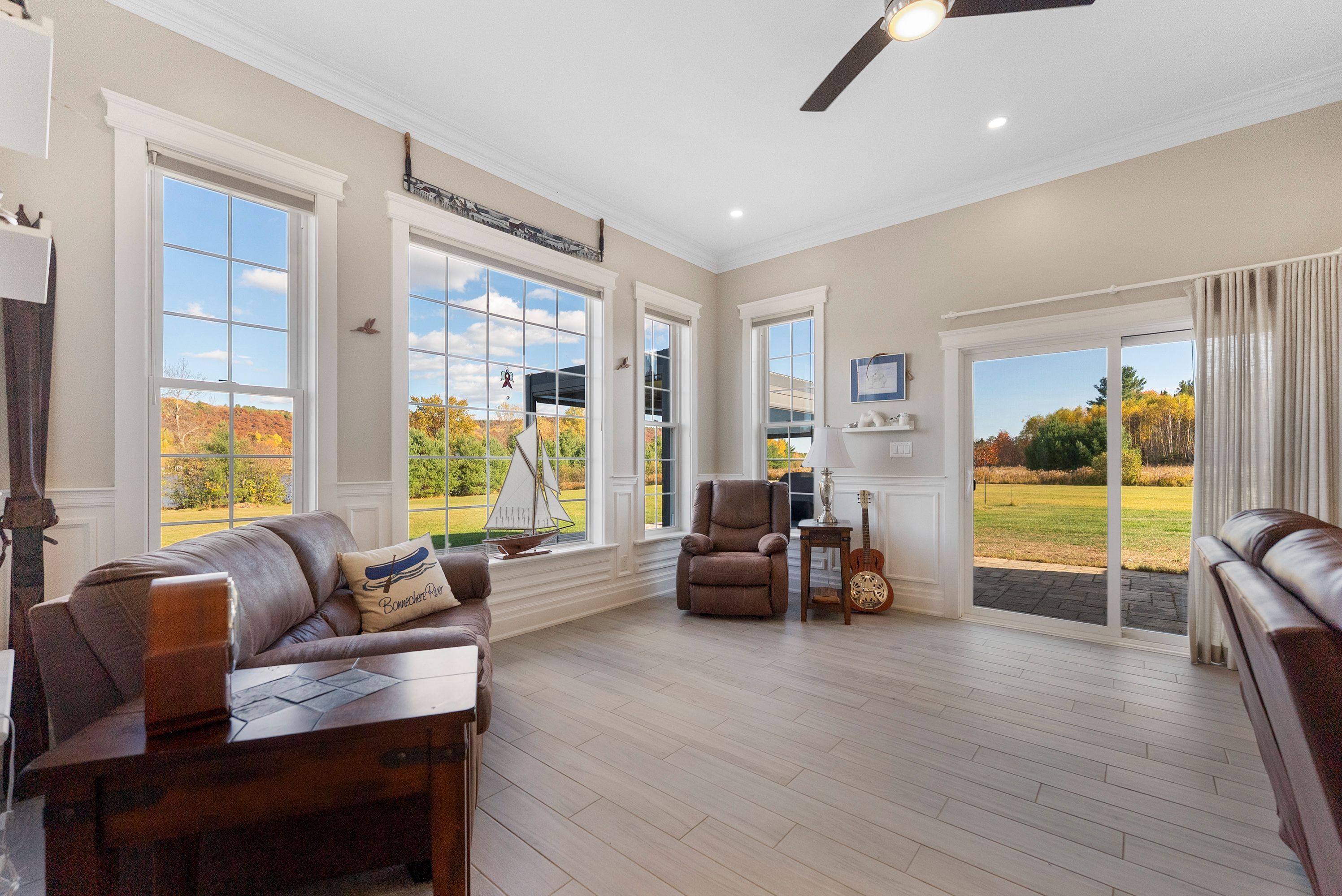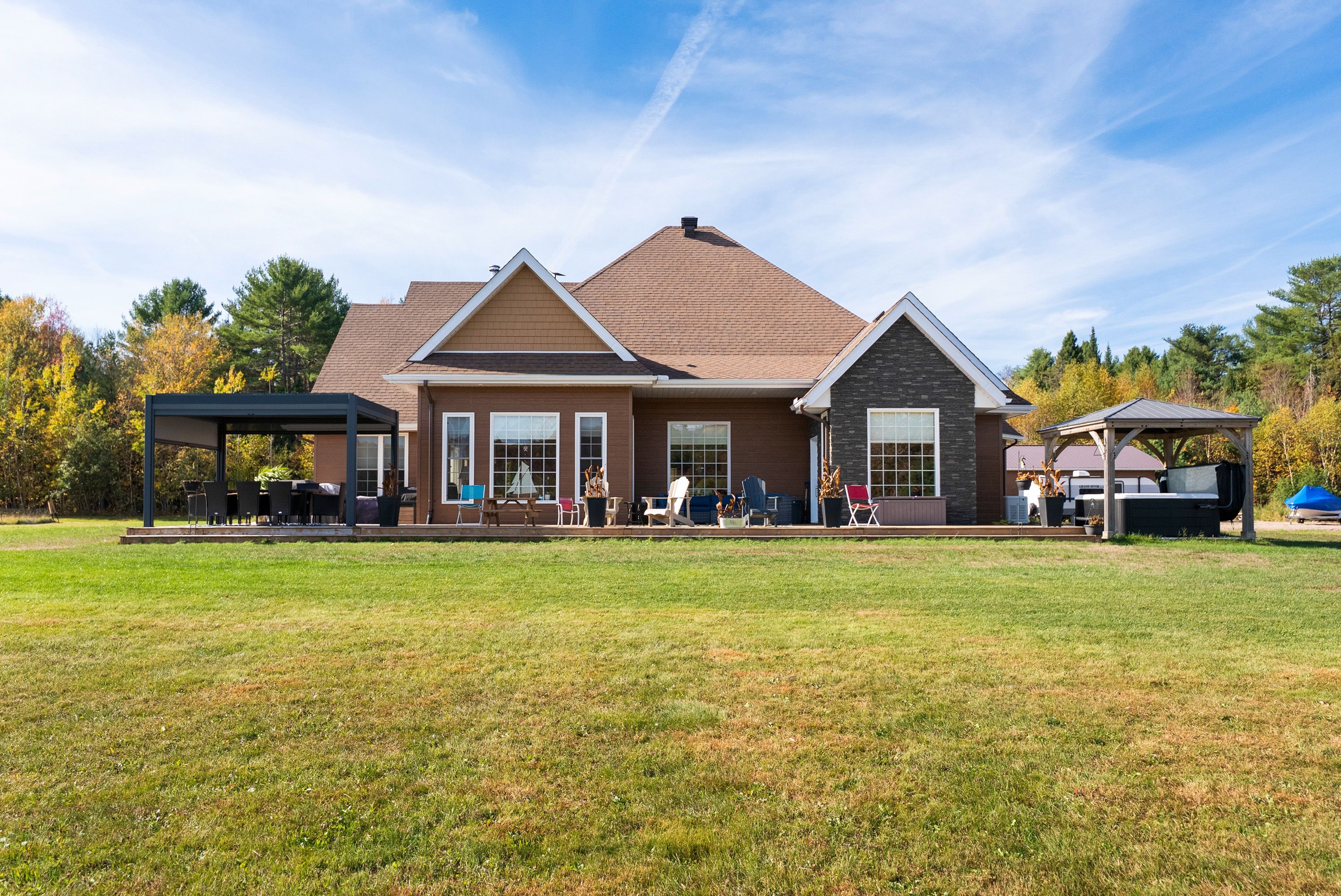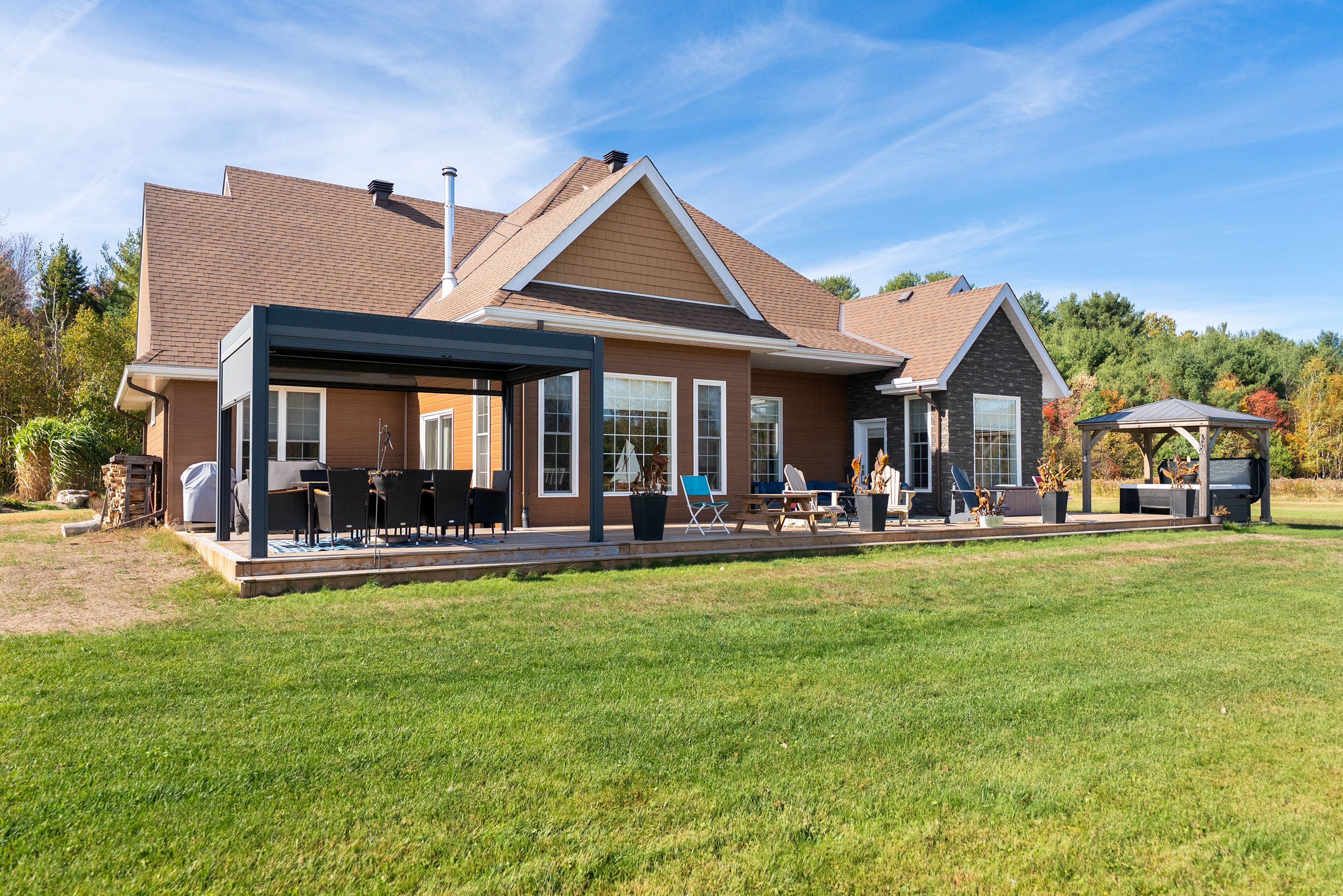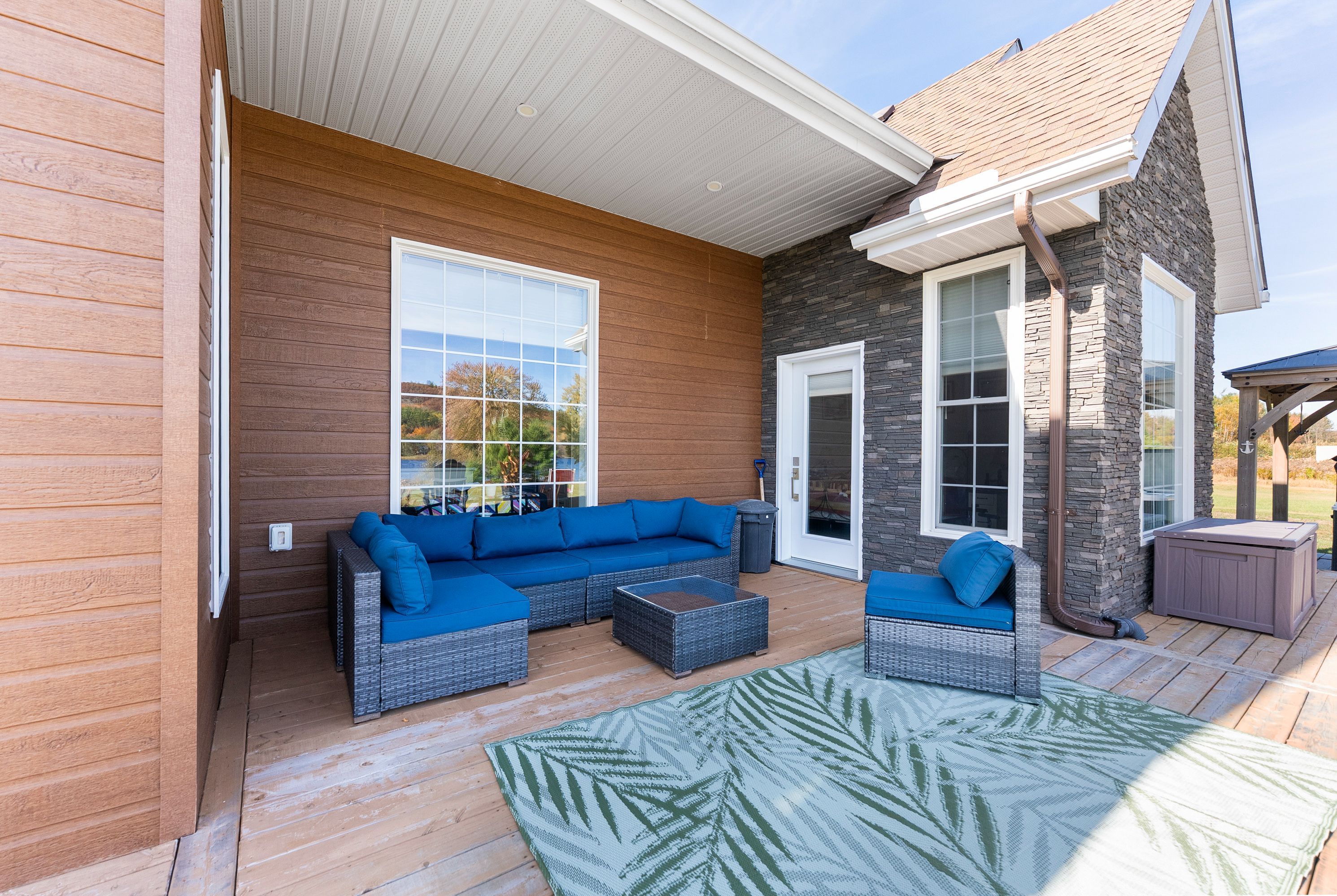 Nestled on 5. 9 acres overlooking majestic hills and natural rock face, this exceptional property offers an unmatched blend of luxury, functionality, and tranquility. The beautifully crafted custom home features fine trim and crown mouldings, in-floor heating, forced air, and ac for year-round comfort. The primary suite is a private retreat with a custom walk-in closet, soaker tub, and a spa-inspired shower complete with dual rainfall shower heads. The breathtaking designer kitchen is the true heart of the home, featuring a grand centre island, high-end appliances including a countertop stove, dual wall ovens, microwave, dishwasher, and a built-in bar fridge. Thoughtfully designed for both function and style, it's a chef's dream and the perfect gathering space for family and friends. The front deck overlooks the water, while the covered hot tub and screened metal pergola with a louvered roof invite you to relax outdoors in any season. Entertain effortlessly with a designated bbq area and two outdoor fire pits surrounded by nature. The property's exterior is finished with durable cannexel siding and includes a 30' x 30' detached insulated garage (heated, 200 amp service, and trailer hook-up), plus a super shed for extra storage. The attached garage(24' x 24")boasts a heated loft area room that has multi uses from a craft room, exercise room or studio or a fantastic home office. For gardeners, there's a greenhouse, irrigated gardens, sprinkler system drawing from the river via a submersible pump, and professional perennial gardens and landscaping. Practical features include a generac generator powering the entire home, 200 amp house service, and water treatment system ensuring quality and peace of mind. This property exudes simple elegance and refined country style, a home built for those who value craftsmanship, privacy and a true sense of community. 24 hour irrevocable on all offers.