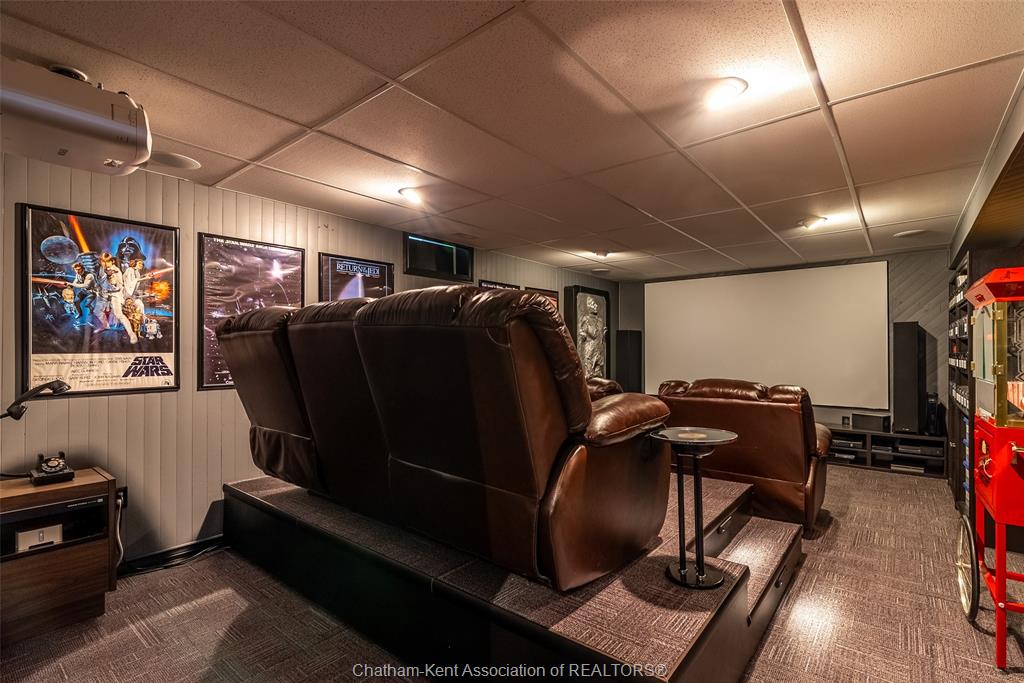 Welcome to 43 greenfield lane, a truly special 4-level back split in a wonderful northside chatham neighbourhood. This beautifully maintained 3-bedroom, 2-bath family home blends modern updates with unique character—offering comfort, style, and a touch of fun for all ages. Step inside to a bright, inviting main floor featuring a kitchen updated in 2023 with sleek finishes, ample cabinetry, and a functional layout ideal for everyday living or hosting guests. The spacious living and dining areas are warm and welcoming. Upstairs, you’ll find three generously sized bedrooms and main bathroom that was refreshed in 2019, offering a clean, contemporary feel. The third level provides even more living space, including a cozy family room and an updated bathroom done in 2025, perfect for movie nights or kids’ playtime. And for the home’s best-kept secret.... Open the clever hidden bookcase door to discover your own basement cinema room, a private and immersive entertainment space that makes this property truly unforgettable. Outside, the home backs onto a serene green space, offering privacy and nature views rarely found in the city. Enjoy quiet morning coffees, evenings around the fire, or outdoor playtime in a setting that feels like your own peaceful escape. With thoughtful updates throughout, a unique hidden theatre, and a prime location close to schools, parks, and amenities, 43 greenfield lane is the perfect family home—full of comfort, convenience, and its own touch of magic. Call today to #lovewhereyoulive