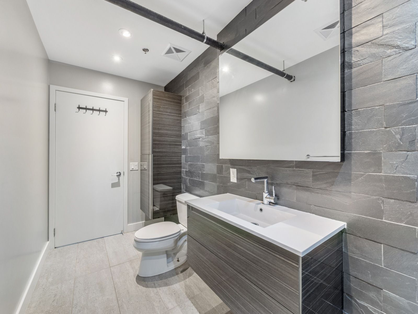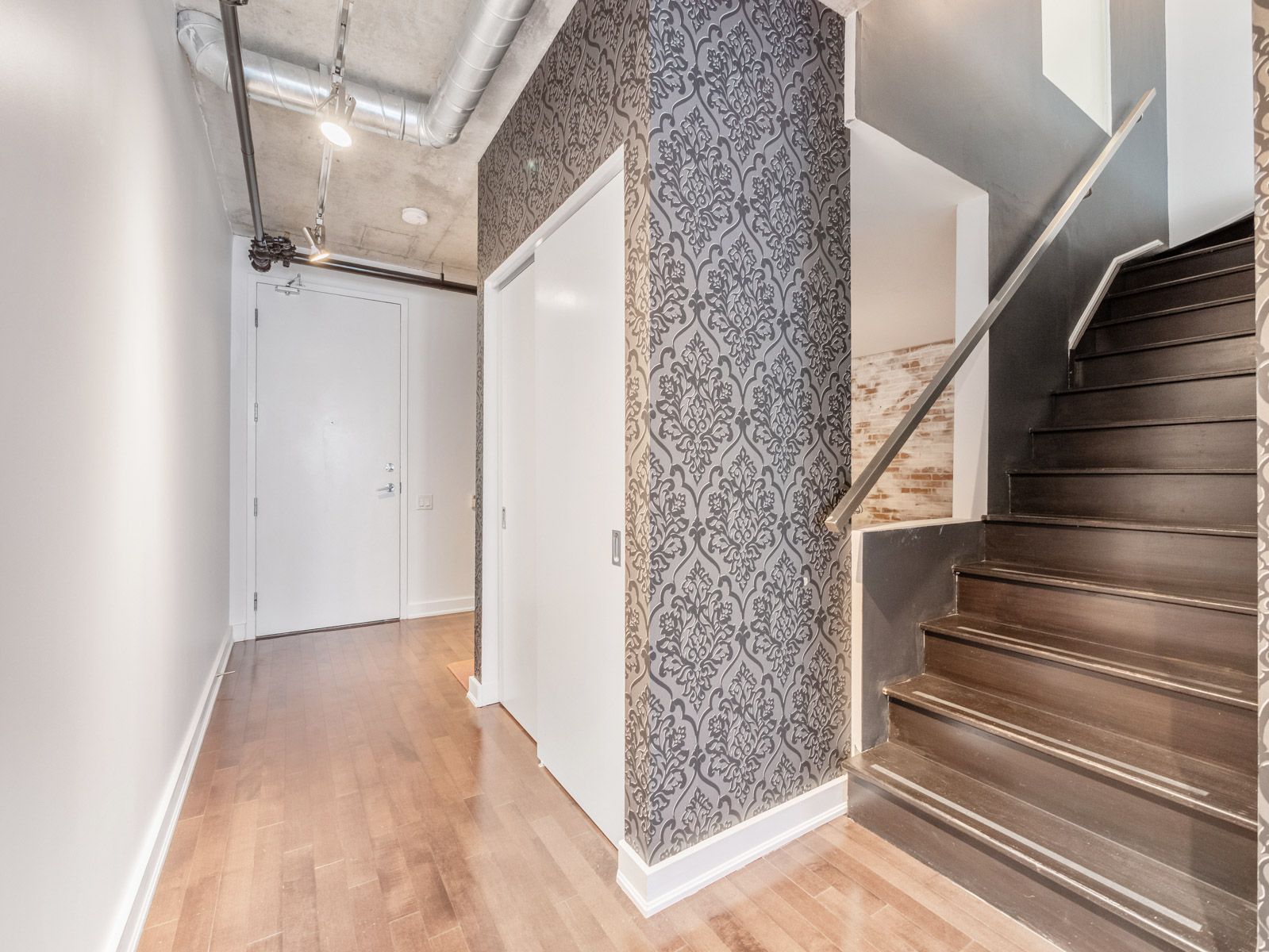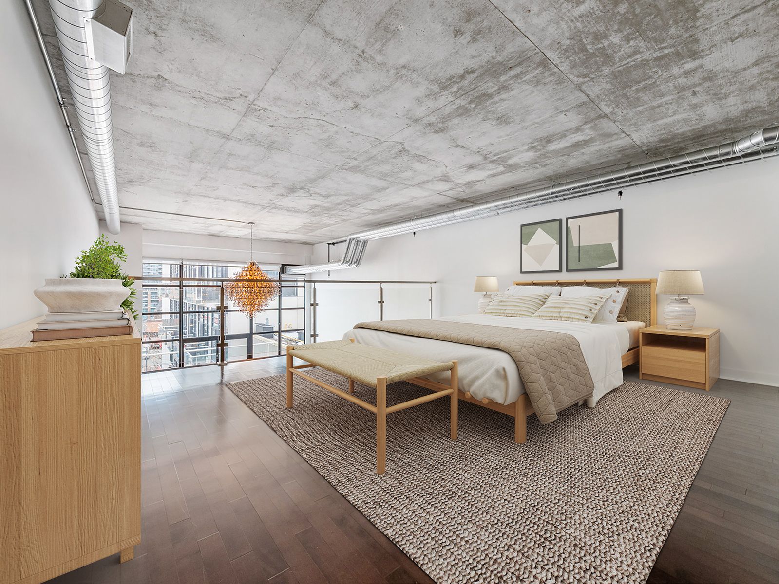 Experience elevated urban living in this rare two-storey hard loft, set within a historic and highly exclusive building. Rich in character, the space showcases exposed concrete and ductwork, dramatic 17-foot ceilings, and expansive floor-to-ceiling windows that create an airy, gallery-like atmosphere throughout. A seamless walkout leads to a spectacular 250 sq ft private terrace, an exceptional outdoor extension ideal for entertaining, unwinding, or enjoying city views in every season. The open-concept main level is thoughtfully designed with ample room for both refined living and proper dining, offering flexibility without sacrificing style. Two well-proportioned bedrooms and two bathrooms provide comfort and privacy, making this an ideal home for discerning professionals or creatives seeking something truly distinctive. This offering includes an oversized parking space (13 ft wide by 16 ft deep) and a locker, with all utilities included except hydro. Residents enjoy 24-hour concierge service and access to premium amenities, including a fully equipped gym, elegant party room, boardroom, and a shared rooftop lounge complete with bbqs and a hot tub. Perfectly positioned for a vibrant, walkable lifestyle: balzac's coffee is at your doorstep, left field and local are directly across the street, the lcbo sits just up the road, and metro groceries are conveniently located behind the building. A striking, design-forward home that offers both luxury and livability; this is a truly special space for those who value style, character, and effortless city living.