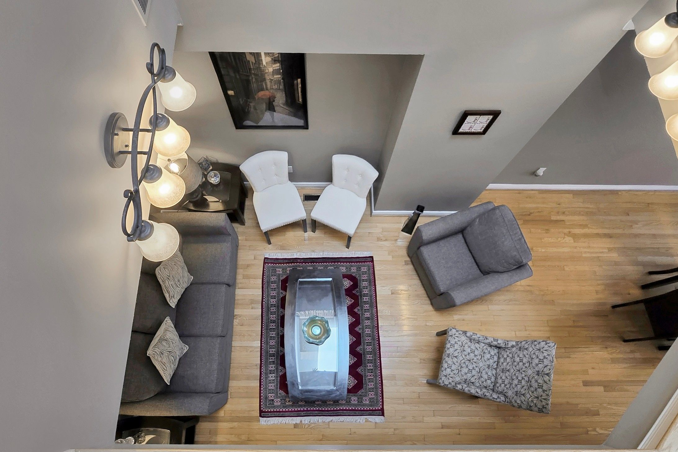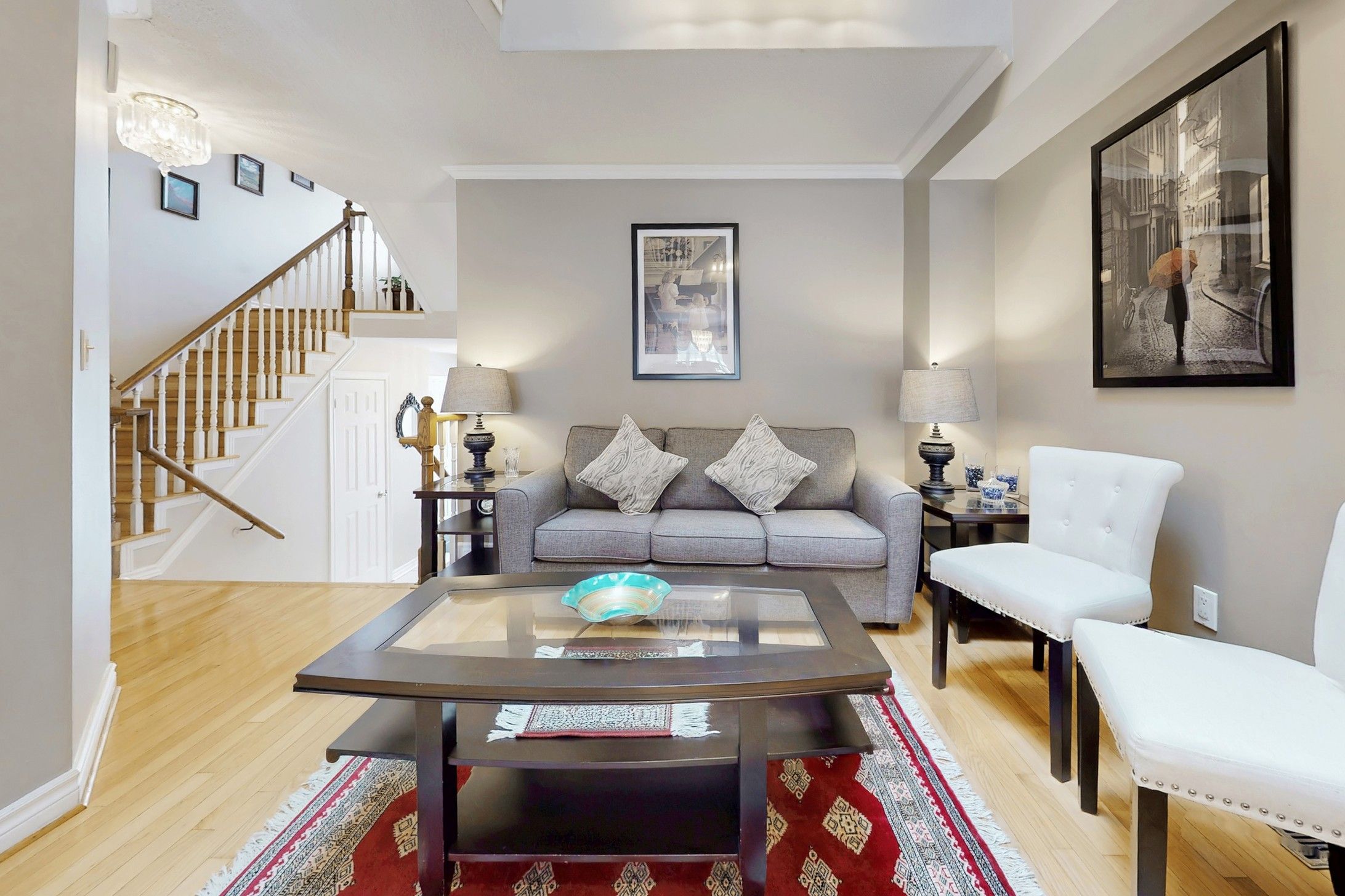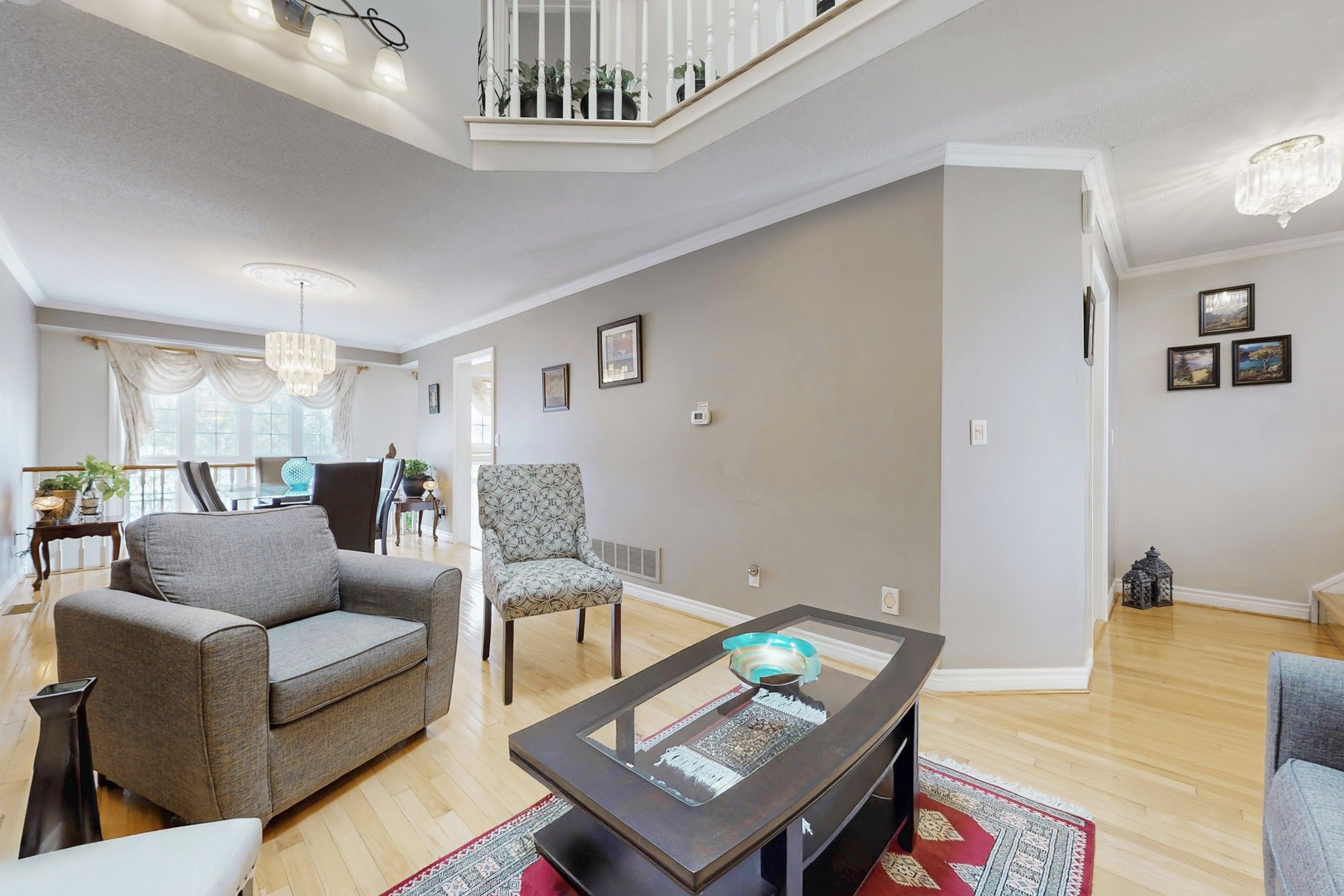 • Spacious foyer leads to elegant living and dining areas with hardwood floors.