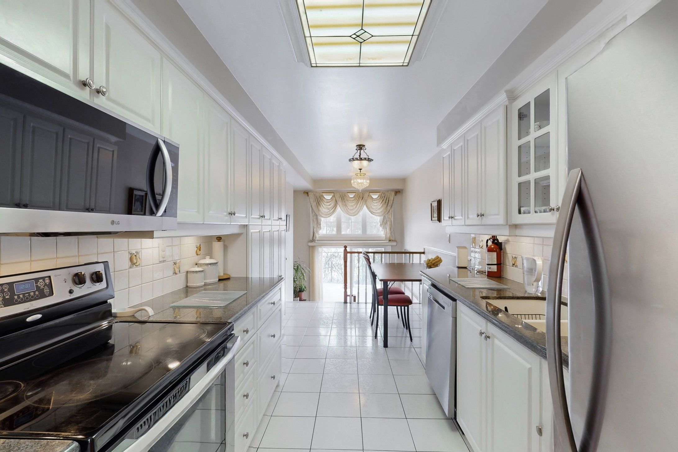 • Renovated kitchen with granite countertops and stainless steel appliances.
