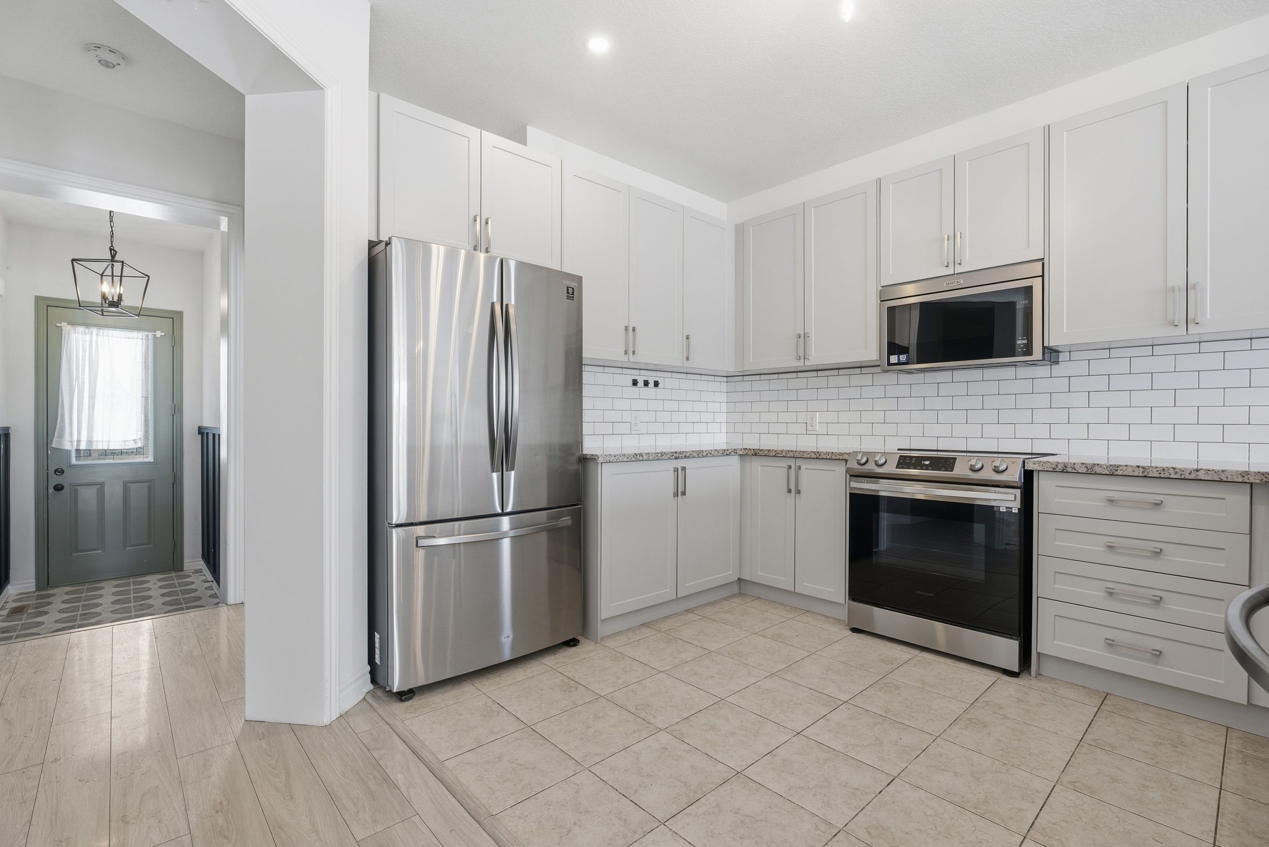 Welcome to 43 harvest avenue, tillsonburg: a stunning, modern bungalow built just a few years ago and perfectly positioned to back onto serene green space while facing a picturesque pond. This exceptional setting offers breathtaking views from both the front and back of the home. As you arrive, you'll immediately appreciate the home's impressive curb appeal, highlighted by lush landscaping and ample parking with space for 3 vehicles, including an attached garage and 2 driveway spots. Step inside to discover a thoughtfully designed main floor that is very inviting. The bright and airy living room is filled with natural light from large windows and provides direct access to the outdoor deck, perfect for relaxing or entertaining while enjoying the peaceful surroundings. The kitchen is beautifully appointed with stainless steel appliances, abundant cabinetry, and plenty of workspace, making it ideal for both everyday cooking and hosting family and friends. The main level also features two generously sized bedrooms, offering comfort and convenience for homeowners or guests alike. The fully finished basement, completed by the builder, expands the living space significantly. It includes a spacious third bedroom, a 3-pc bathroom and a large recreation room, perfect for entertaining, a home office, a media room or accommodating overnight guests. Throughout the home, soaring 9-foot ceilings enhance the open and spacious feel, while oversized windows flood the interior with natural light. The seamless layout connects the living, dining, and kitchen areas, making this home equally suited for daily living and entertaining. Enjoy peaceful mornings overlooking the pond and unwind in the evenings with calming green space views, all from the comfort of your own home. This property presents an outstanding opportunity to experience modern bungalow living in a scenic and highly desirable neighborhood. Book your private showing today and make this beautiful home your forever retreat.