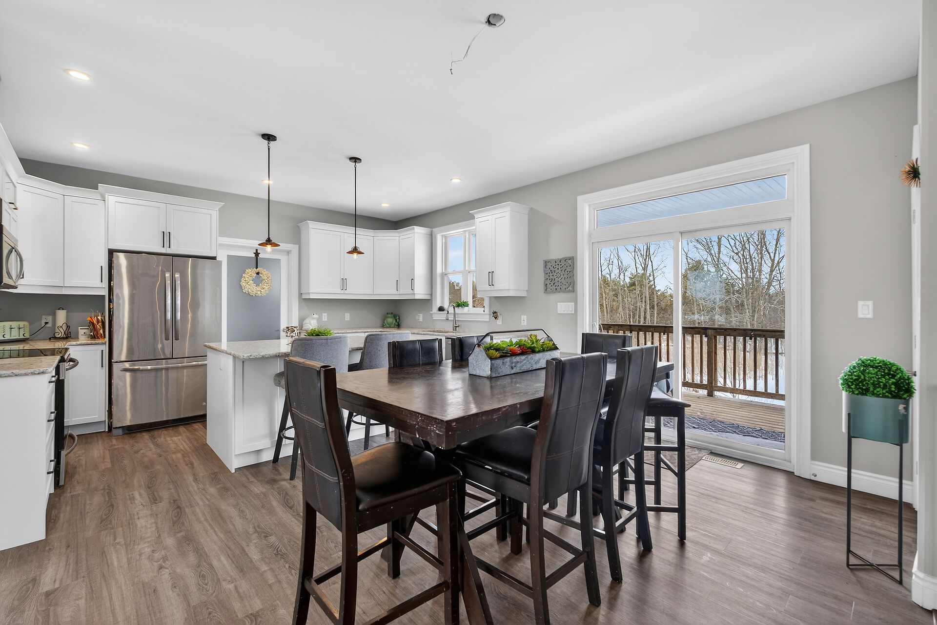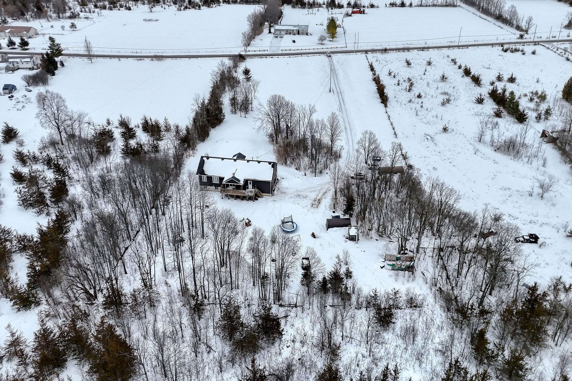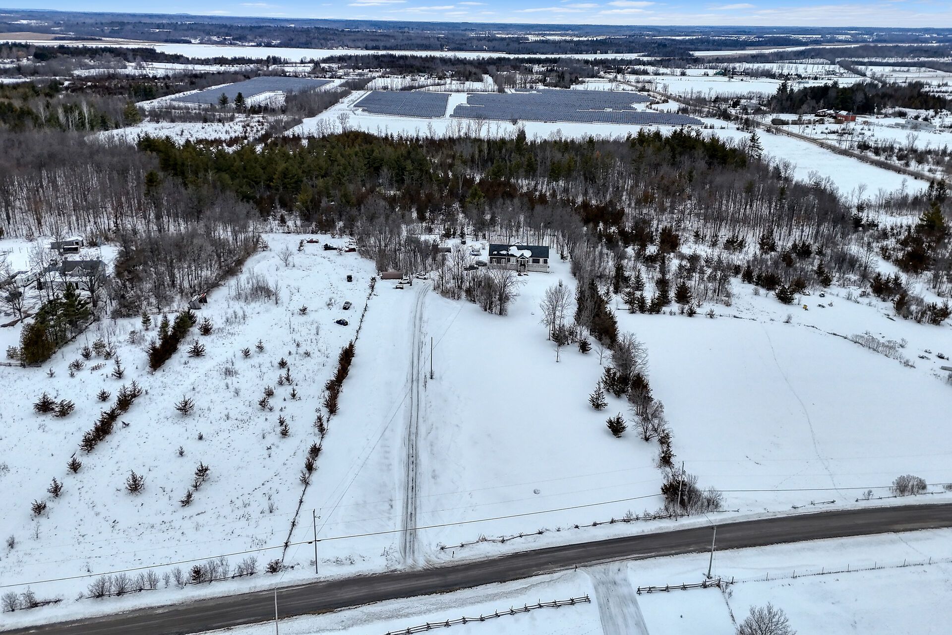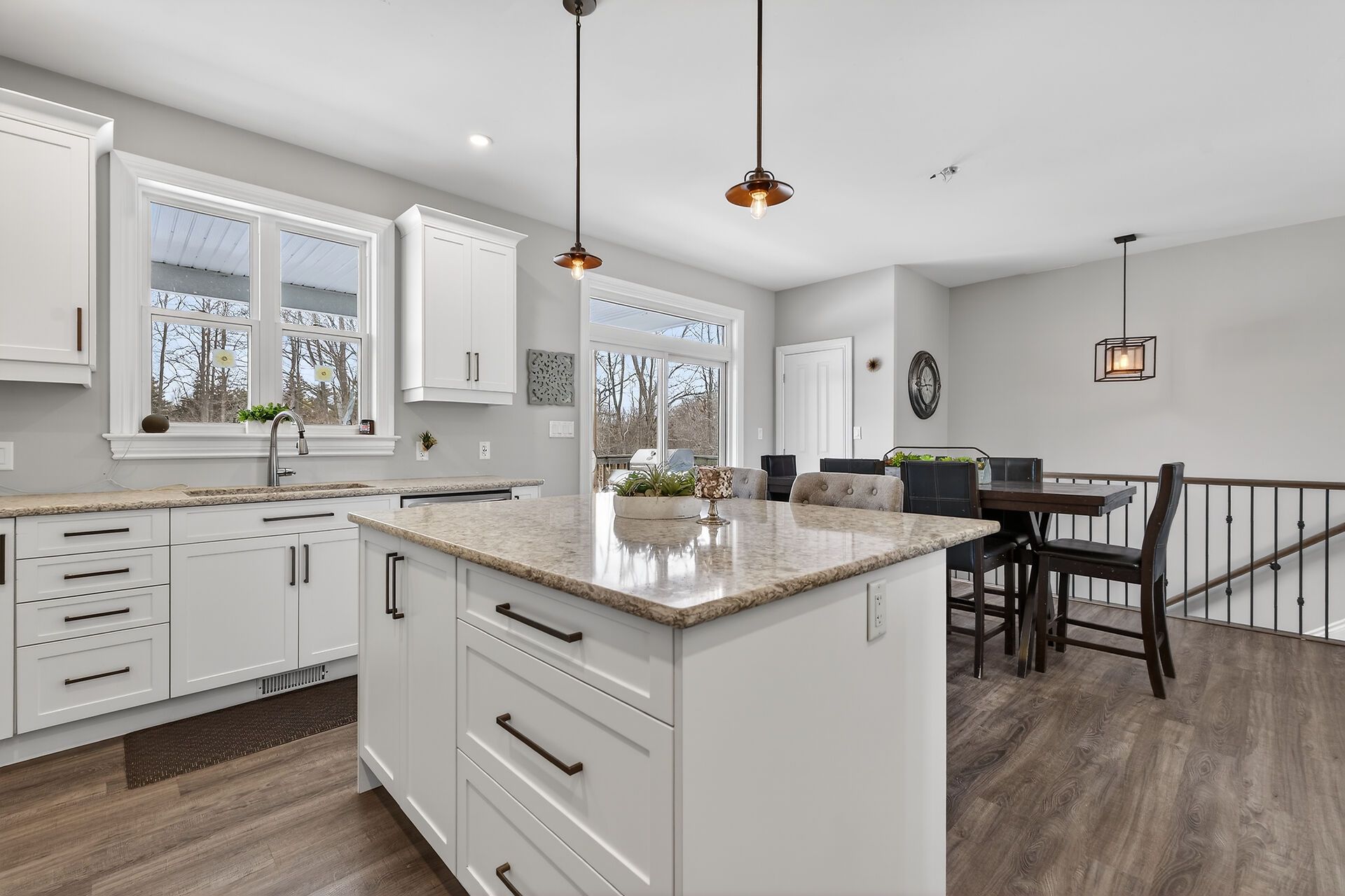 Welcome to this lovely and bright 8-year-old bungalow, offering the perfect blend of modern comfort and peaceful country living. This carpet-free home features 3+2 bedrooms and 3 full bathrooms, thoughtfully designed with quality finishes throughout. The main floor welcomes you with convenient access from the attached double garage, a dedicated laundry/mudroom area, and an inviting open-concept layout. The stunning kitchen showcases quartz countertops, a large island ideal for entertaining, and flows seamlessly into the spacious dining area and living room, complete with a cozy propane fireplace. Sliding doors off the dining area lead to a generous deck overlooking the forest - the perfect spot to relax and enjoy the view. You'll find three well-appointed bedrooms on the main level, including a beautiful primary suite featuring a large walk-in closet and a private ensuite bath, along with a full main bathroom. The fully finished lower level expands your living space with high ceilings, in-floor heating, two additional bedrooms, a 3-piece bathroom, a large recreation room, and storage. The utility room also provides convenient access to the garage. Tastefully finished throughout with durable vinyl plank flooring, this home is move-in ready and designed for easy living. Situated on 3. 36 private acres and set well back from hegadorn road, this property offers exceptional privacy while still being easily accessible. We look forward to welcoming you home!
