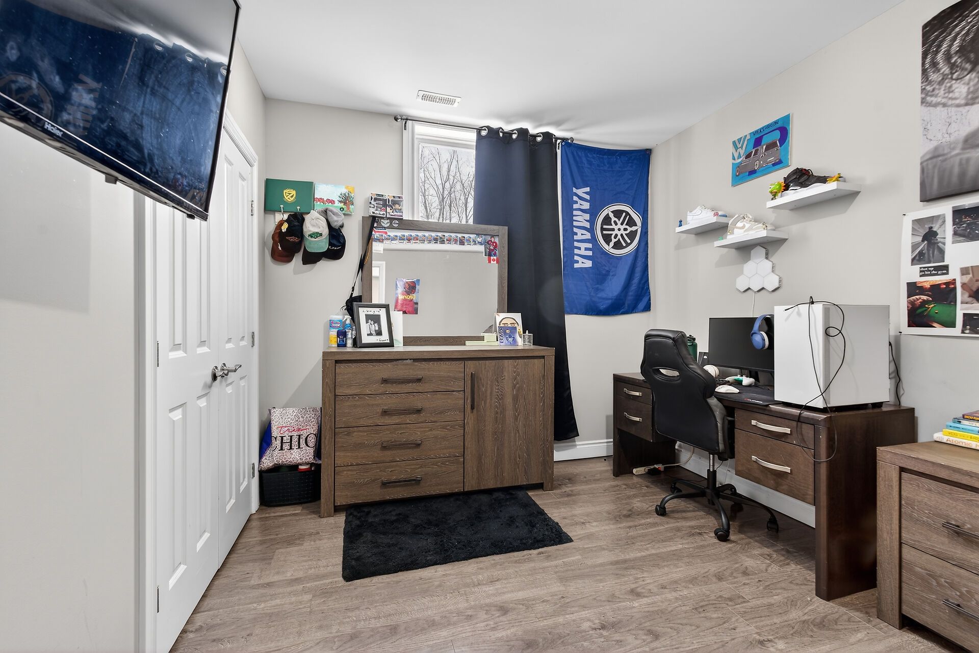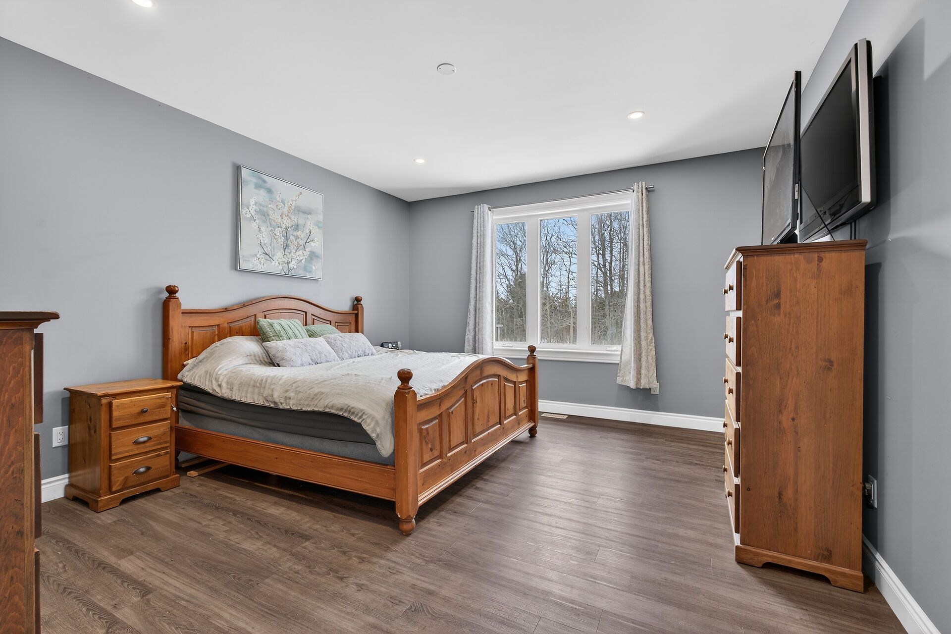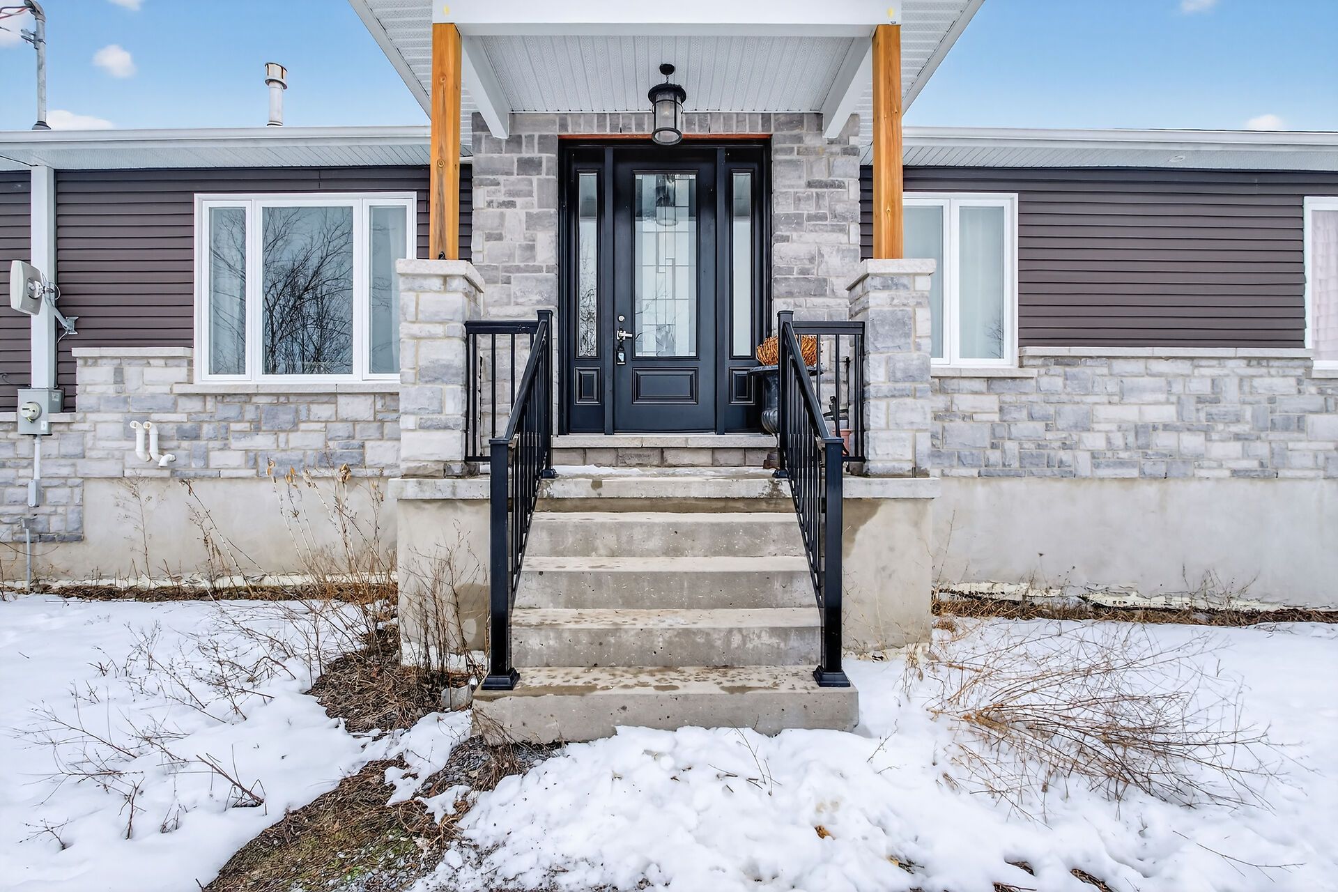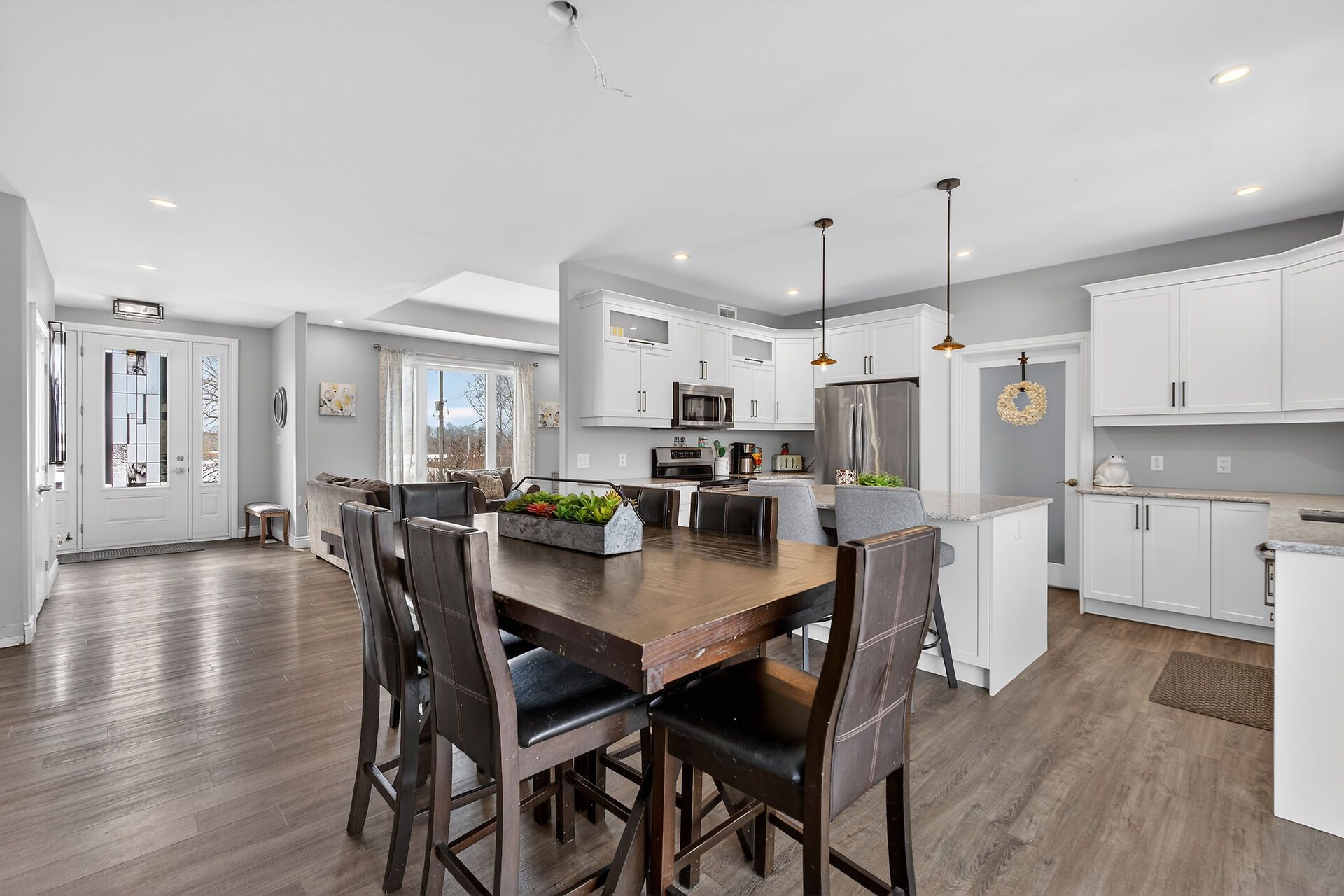 Welcome to this lovely and bright 8-year-old bungalow, offering the perfect blend of modern comfort and peaceful country living. This carpet-free home features 3+2 bedrooms and 3 full bathrooms, thoughtfully designed with quality finishes throughout. The main floor welcomes you with convenient access from the attached double garage, a dedicated laundry/mudroom area, and an inviting open-concept layout. The stunning kitchen showcases quartz countertops, a large island ideal for entertaining, and flows seamlessly into the spacious dining area and living room, complete with a cozy propane fireplace. Sliding doors off the dining area lead to a generous deck overlooking the forest - the perfect spot to relax and enjoy the view. You'll find three well-appointed bedrooms on the main level, including a beautiful primary suite featuring a large walk-in closet and a private ensuite bath, along with a full main bathroom. The fully finished lower level expands your living space with high ceilings, in-floor heating, two additional bedrooms, a 3-piece bathroom, a large recreation room, and storage. The utility room also provides convenient access to the garage. Tastefully finished throughout with durable vinyl plank flooring, this home is move-in ready and designed for easy living. Situated on 3. 36 private acres and set well back from hegadorn road, this property offers exceptional privacy while still being easily accessible. We look forward to welcoming you home!