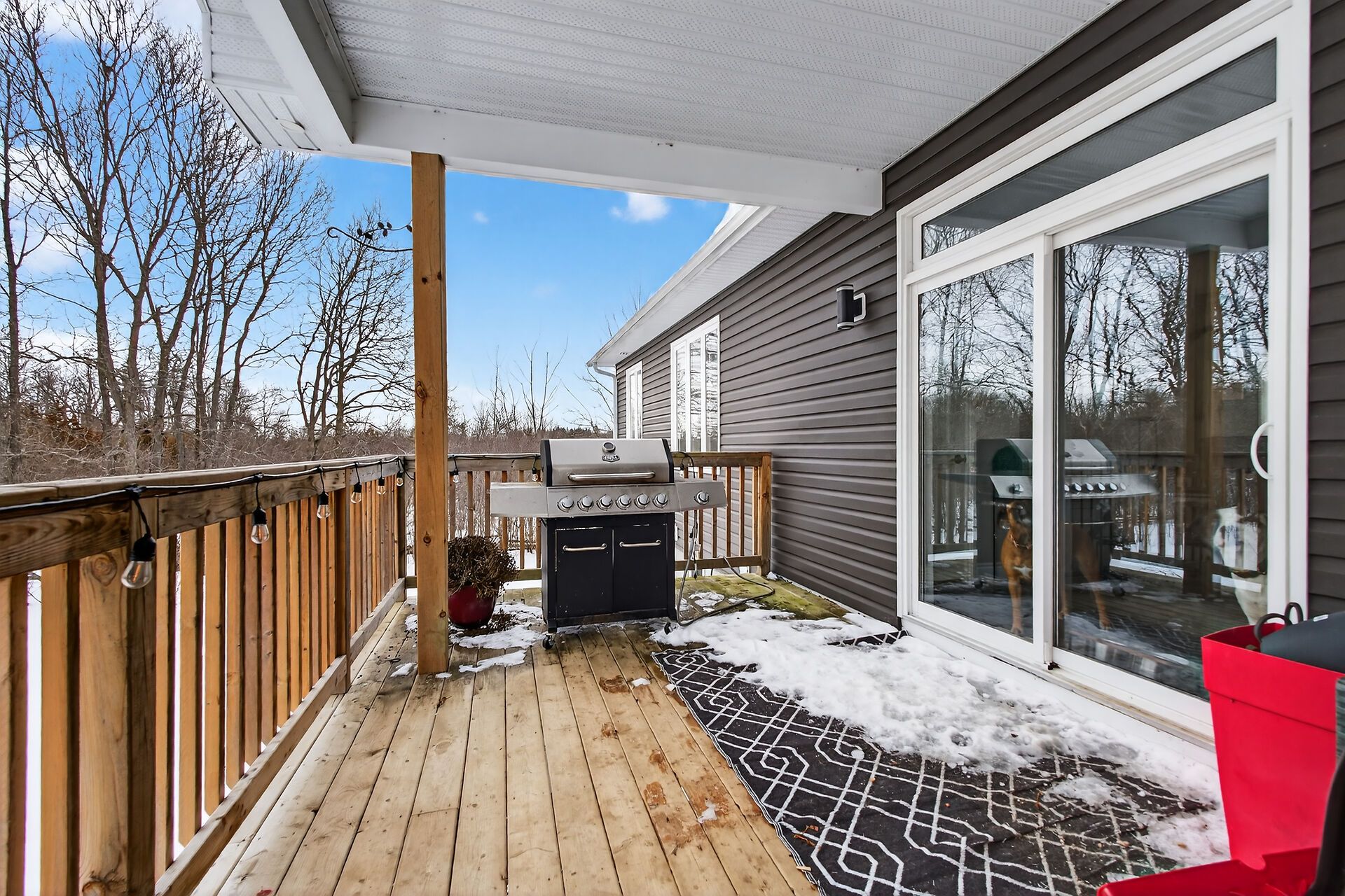 • Generous deck overlooking the forest, perfect for relaxing.