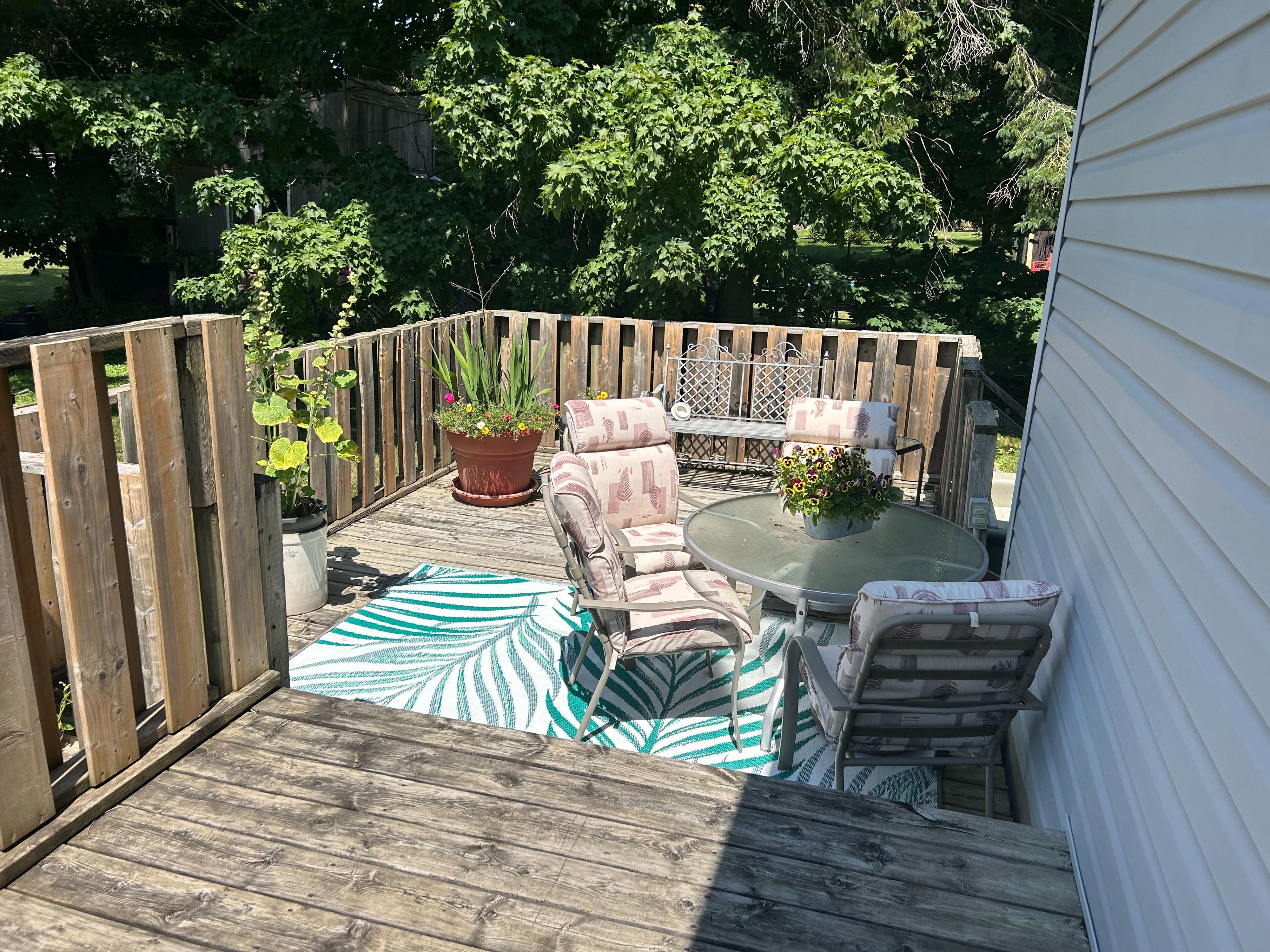 • Outdoor space features a mix of flower and vegetable gardens.