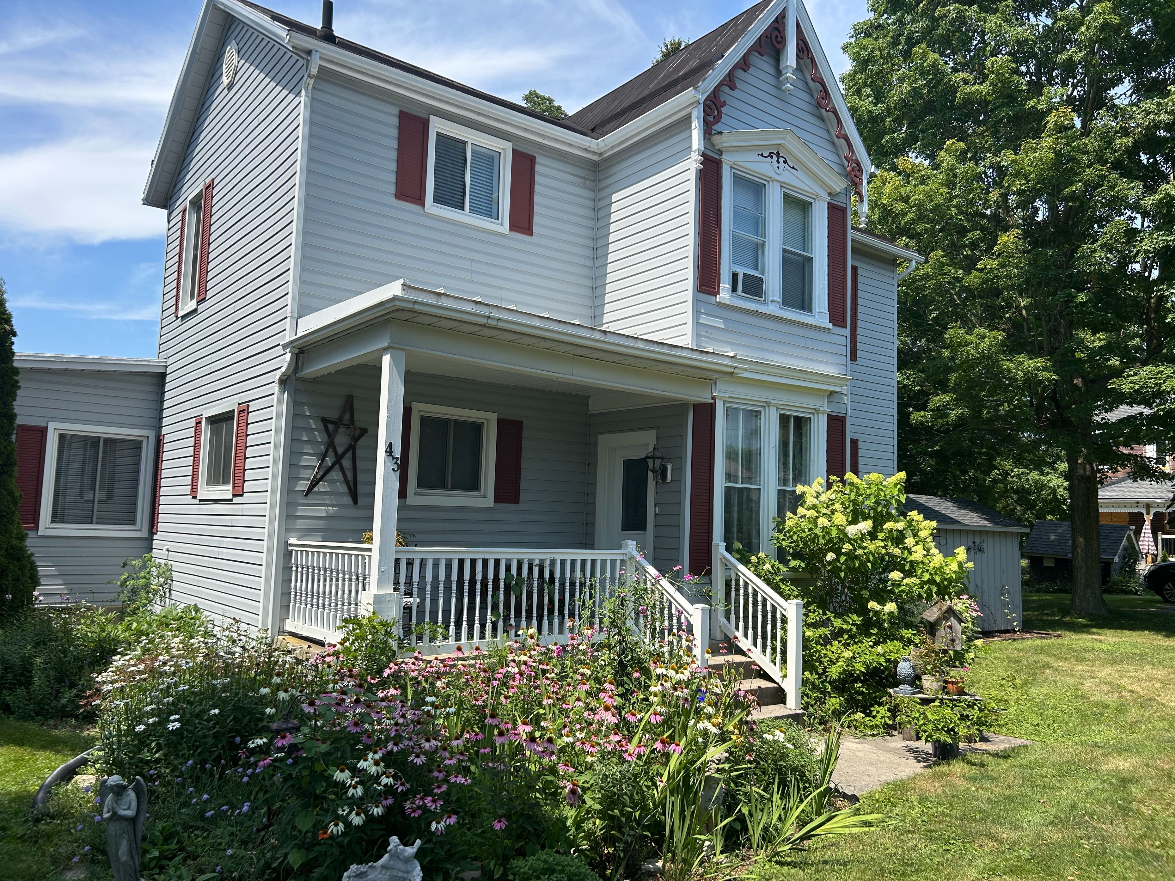 Character and charm in this beautiful immaculate victorian home. Welcome to your next home in the quaint town of seaforth. This home has tall baseboards, rounded archways, hardwood floors and the list goes on... This home is spacious with a functional family layout as well as a large lot. Main floor laundry and a bedroom make this home desirable for all ages. Upstairs, you will find 2 large bedrooms, additional walk in closet/storage space and a spacious 4 piece bathroom with a corner soaker tub, stand up shower and updated vanity. The outdoor space is a mixture of both flower and vegetable plants with lots of options for the garden enthusiast. Back deck allows for sun as well as side patio for shade provides various outdoor entertaining options.