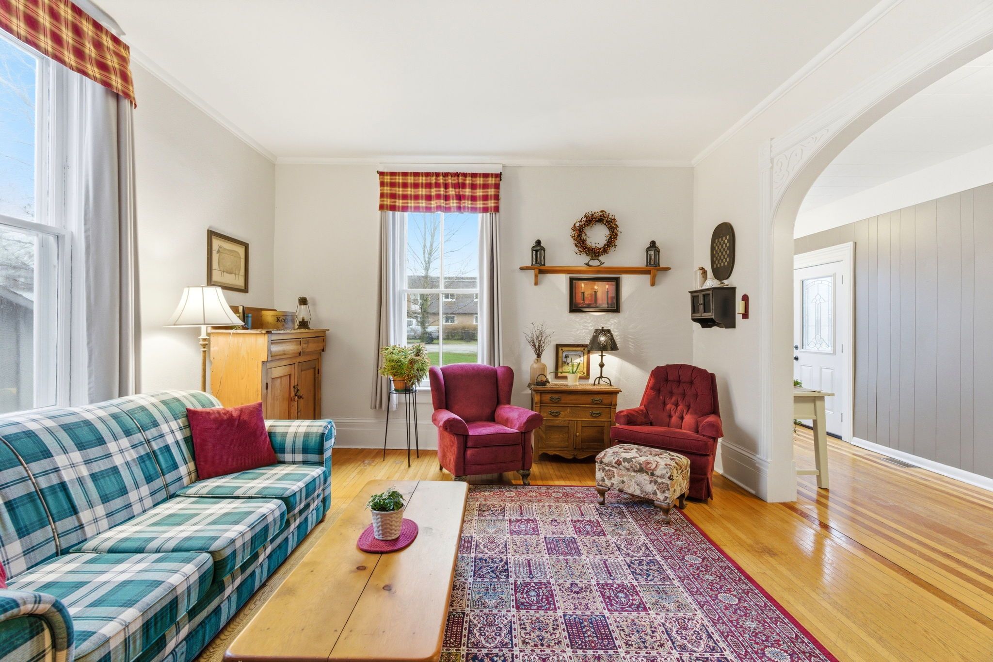 • Bright sun-filled spaces with original features like rounded archways.