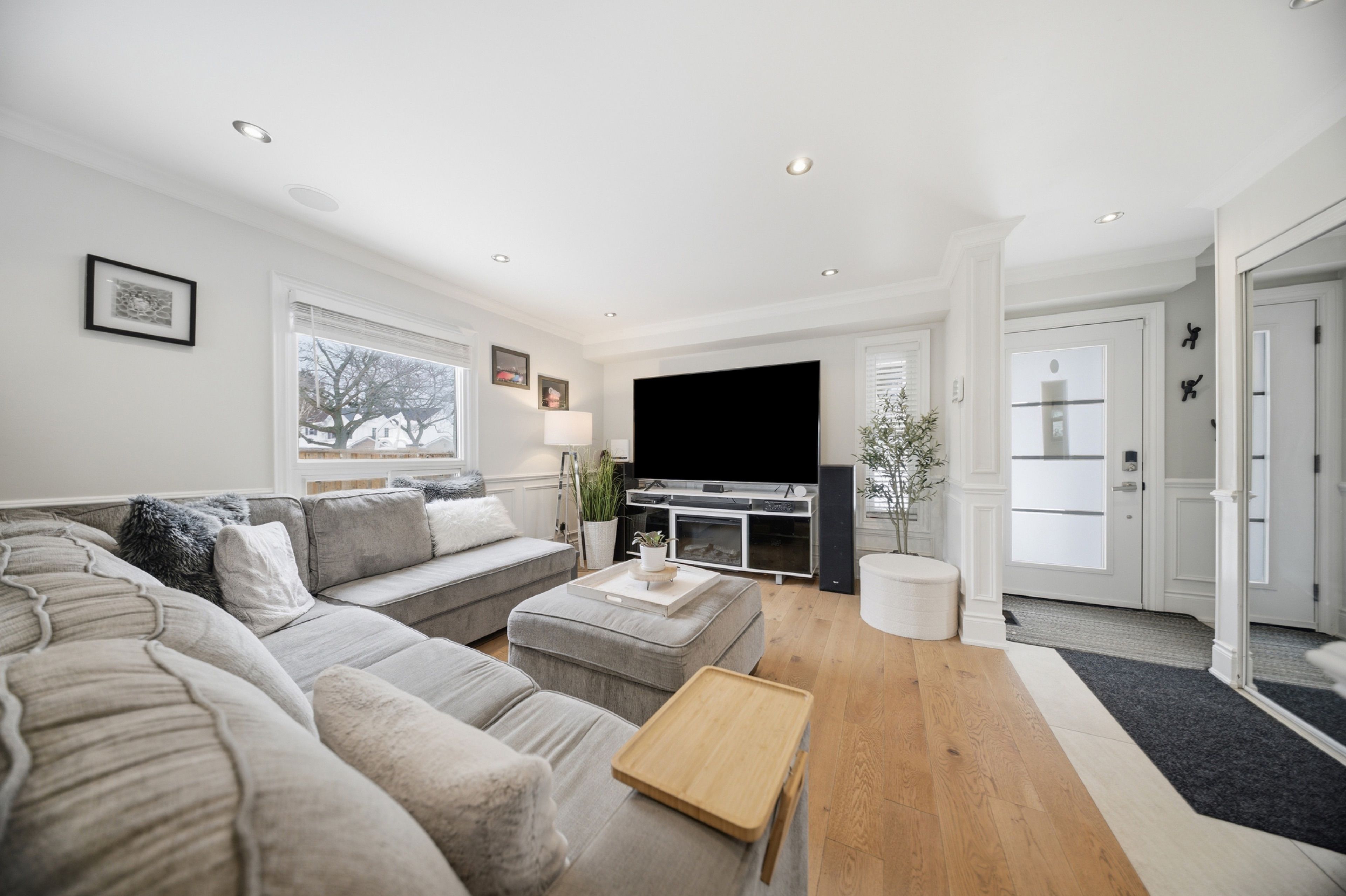 Welcome to 43 kipling cres in sought-after south ajax, just steps to the lake. This fully renovated home sits on a rare oversized corner lot with a 4-car driveway. Main floor features wainscoting, crown moulding, hardwood floors, pot lights, and a gourmet kitchen with quartz counters, custom backsplash, and stainless steel appliances. Walk out to a private backyard with a two-tier deck, gas bbq hookup, gazebo, and above-ground pool. Upstairs offers a spacious primary with walk-in closet and 4-pc ensuite, plus two additional bedrooms and full bath.