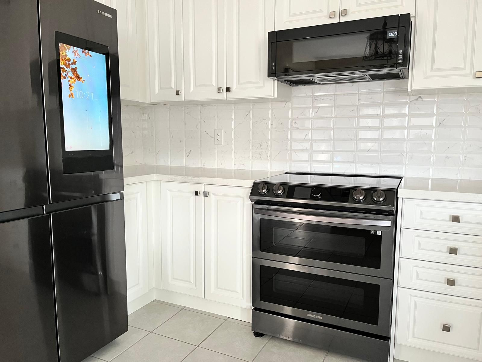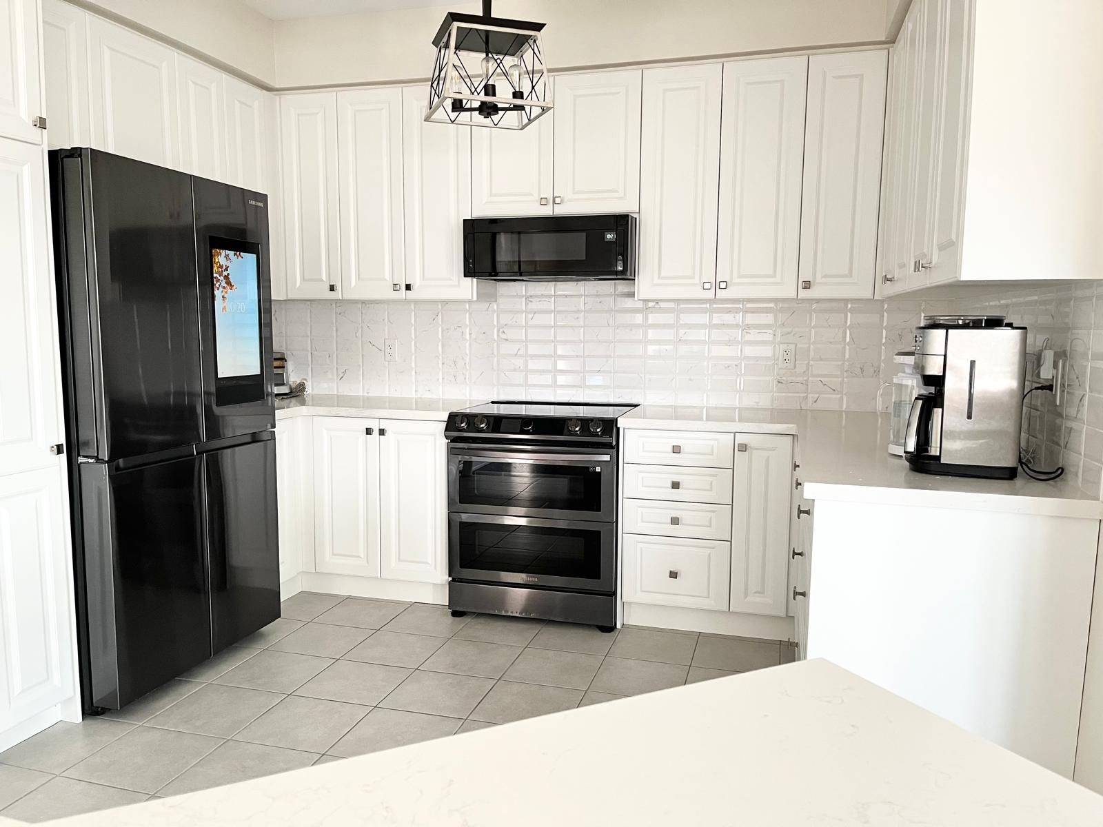 • Upgraded kitchen features quartz countertops and stainless steel appliances.