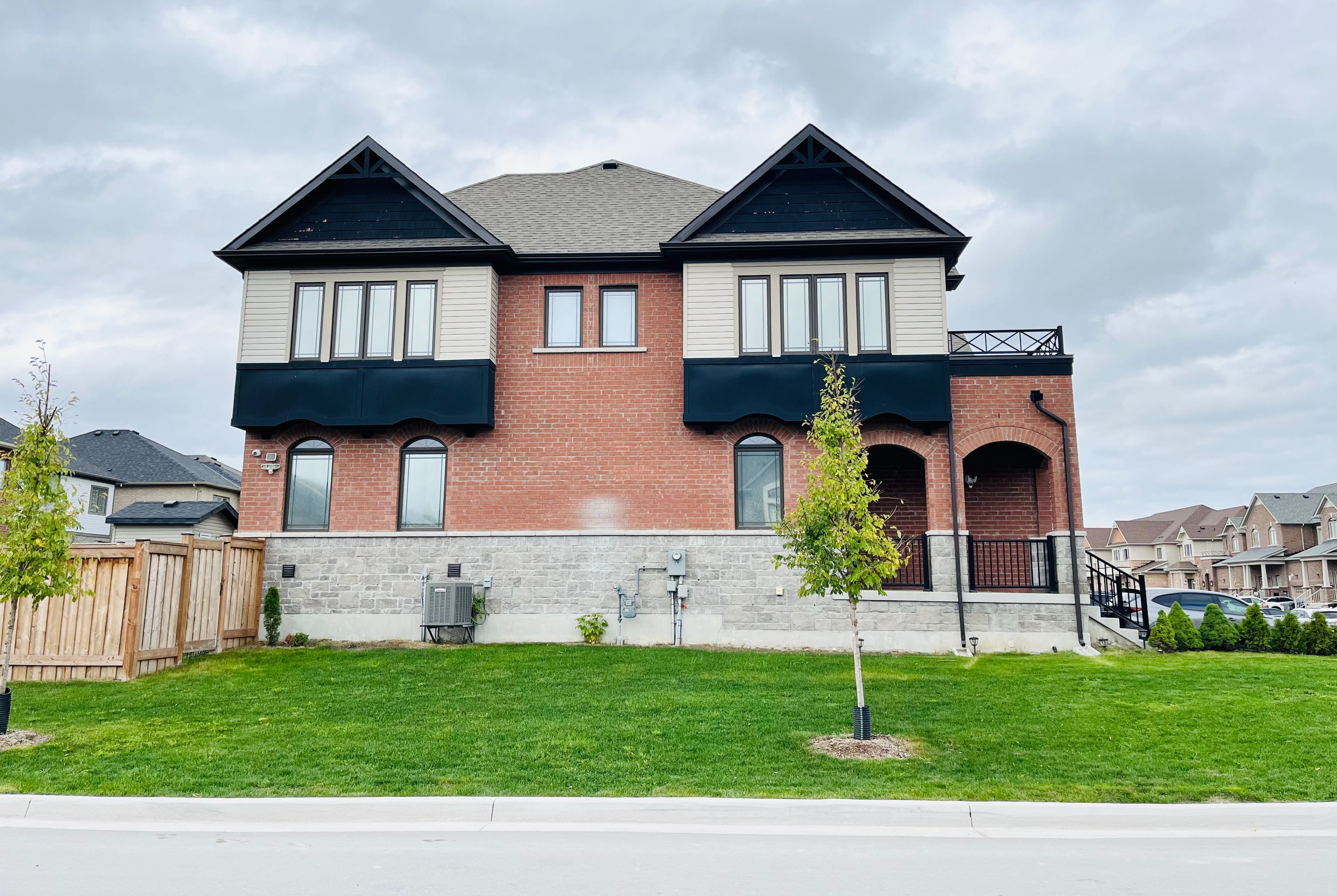 Welcome to 43 lorne thomas place in alliston's newest and most desirable neighbourhood --a stunning full-brick end-unit townhome that feels just like a semi, sitting proudly on a rare 3,929 sq. Ft. Corner lot with triple exposure (south, east, north) and incredible natural light throughout. This 2021-built, 1,744 sq. Ft. Home offers 3 spacious bedrooms, 3 baths, and a total of 6 parking spaces including a double-car garage with an automatic garage door opener and an electrical outlet for ev charging. Inside, you will find 9ft ceilings, chocolate red oak hardwood floors on the main level, smooth ceilings, and an upgraded kitchen with quartz countertops, tile backsplash, and stainless steel smart appliances. The open-concept layout flows seamlessly into the living and dining areas, perfect for entertaining. Upstairs features a luxurious primary suite with a large glass shower and double sinks, generous bedrooms, and convenient second-floor laundry. Additional highlights include a fenced backyard (2023), smart and silent garage door system and security cameras, tarion warranty. Situated on a quiet no-thru street close to parks, schools, and shopping---with new retail and amenities coming soon nearby--this move-in-ready home blends modern upgrades, elegant finishes, and everyday functionality into one perfect package.