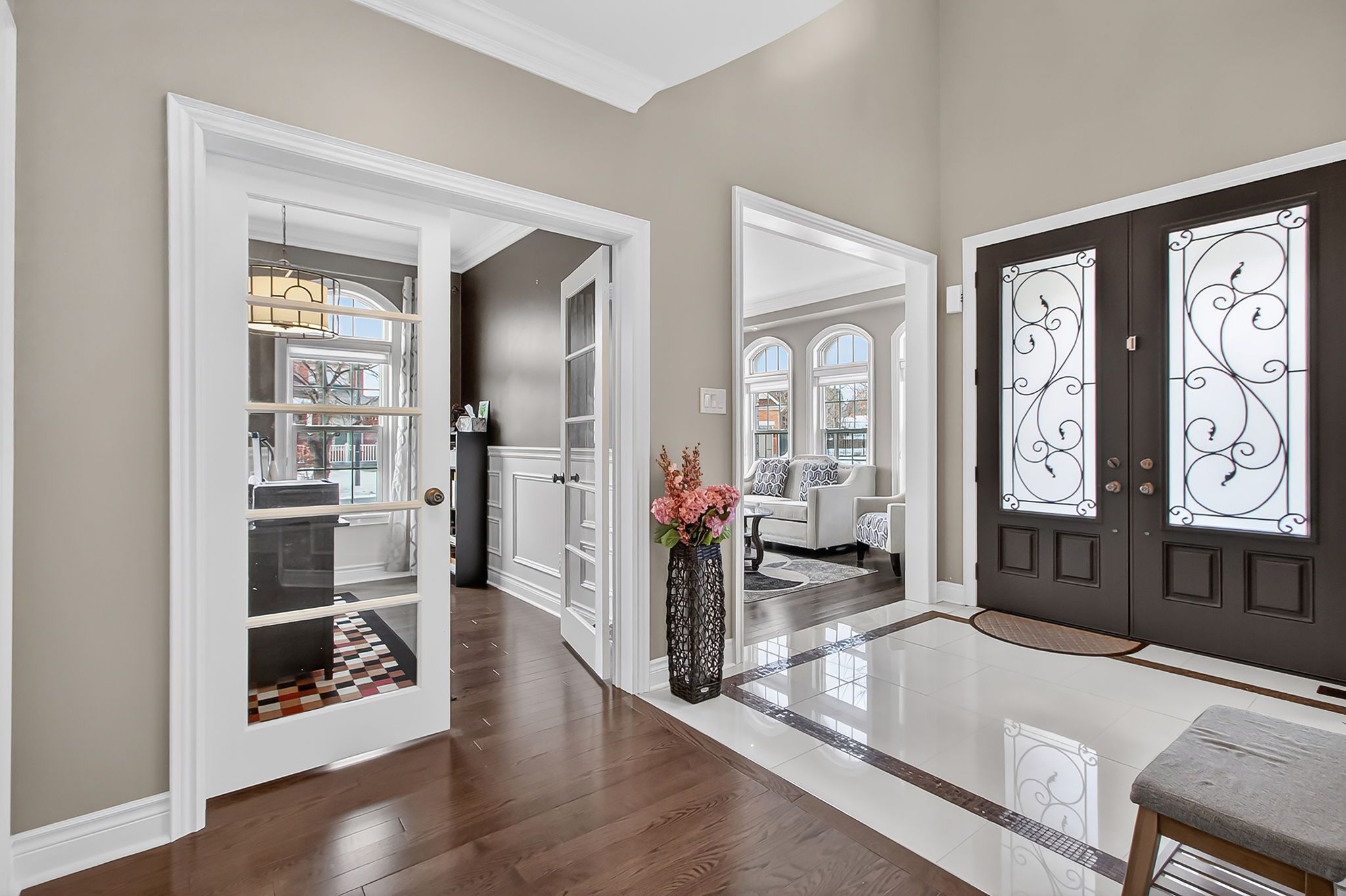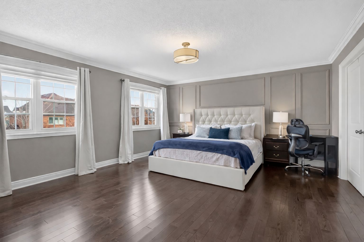 The rare positioning of this premium corner lot on a quiet court allows for an architectural abundance of windows, flooding the home with natural light from three exposures. Designed for those who prioritize a bright and airy atmosphere, the 10-foot ceilings and continuous hardwood flooring serve to amplify the sunlight throughout the main level. The layout is a study in functional luxury, featuring a polished private office for a dedicated work environment and a kitchen anchored by a granite island and gas range that acts as a sun-drenched hub for hosting. The upper level is intentionally configured for privacy, featuring four generous bedrooms, including a rare dual-ensuite design where two bedrooms enjoy their own private baths. Outdoors, a newly installed interlock stone patio provides a private sanctuary, while the nearby caledon east community complex offers elite recreation just steps away. This is a home for those who value refined finishes, a quiet-court setting, and the restorative power of natural light.
