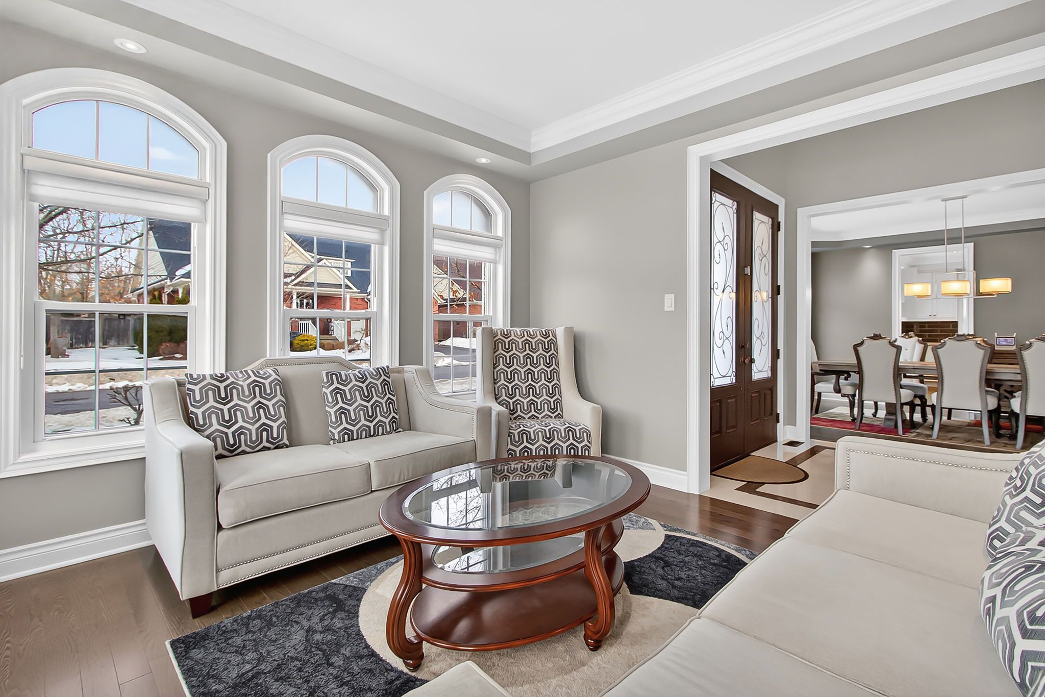 • 10-foot ceilings and hardwood flooring enhance the bright main level.