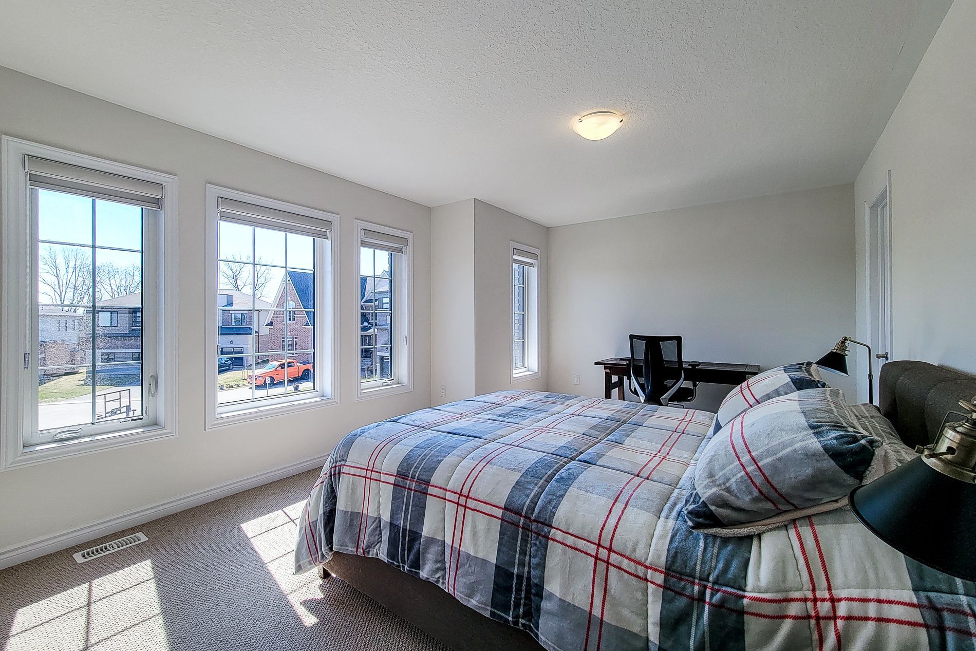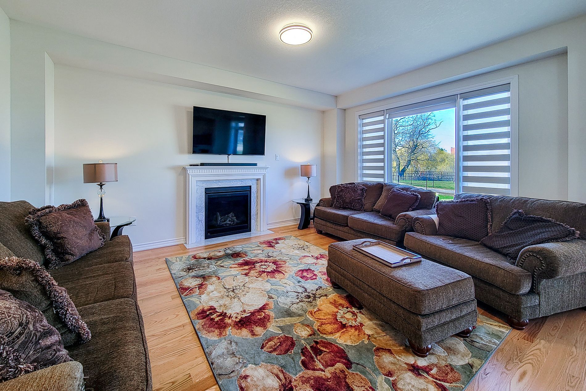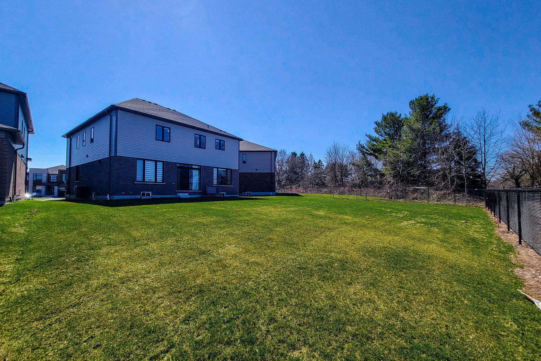Welcome to 43 mears place in the highly sought-after paris riverside community. Built in 2024, this upgraded wildflower model offers over 3,300 sq ft of refined living space with 5 bedrooms and 4 bathrooms-perfect for modern family living. Designed with both style and function in mind, the home features a bright open-concept layout with oversized windows that flood the space with natural light, including upgraded enlarged basement windows for added versatility. The kitchen is a true standout, showcasing upgraded countertops, a stylish backsplash, gas stove, premium appliances, and a large centre island-ideal for everyday living and entertaining. Elegant touches such as upgraded staircase railings, designer light fixtures, and zebra blinds elevate the home throughout, while a full water purification system adds an extra level of comfort and quality. The main floor flows seamlessly into a warm family room with a gas fireplace, complemented by hardwood flooring, smooth ceilings, and convenient laundry with direct garage access. Upstairs, the spacious primary suite offers a walk-in closet and private en-suite, with well-appointed secondary bedrooms and additional bathrooms designed for growing families. Situated on a premium ravine lot with an exterior gas line, this home offers the perfect blend of luxury, practicality, and location-just minutes from downtown paris, parks, amenities, and highway access.
