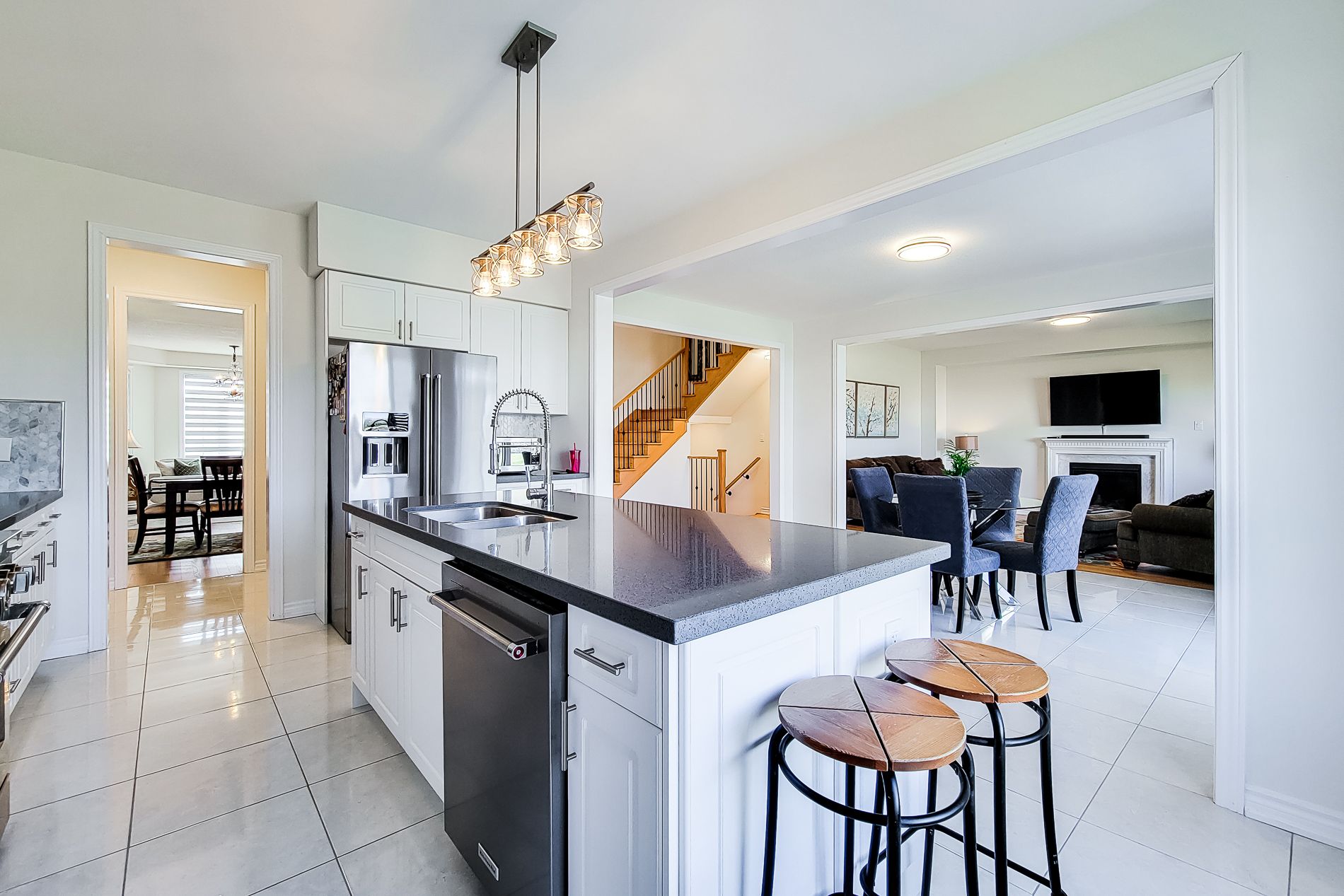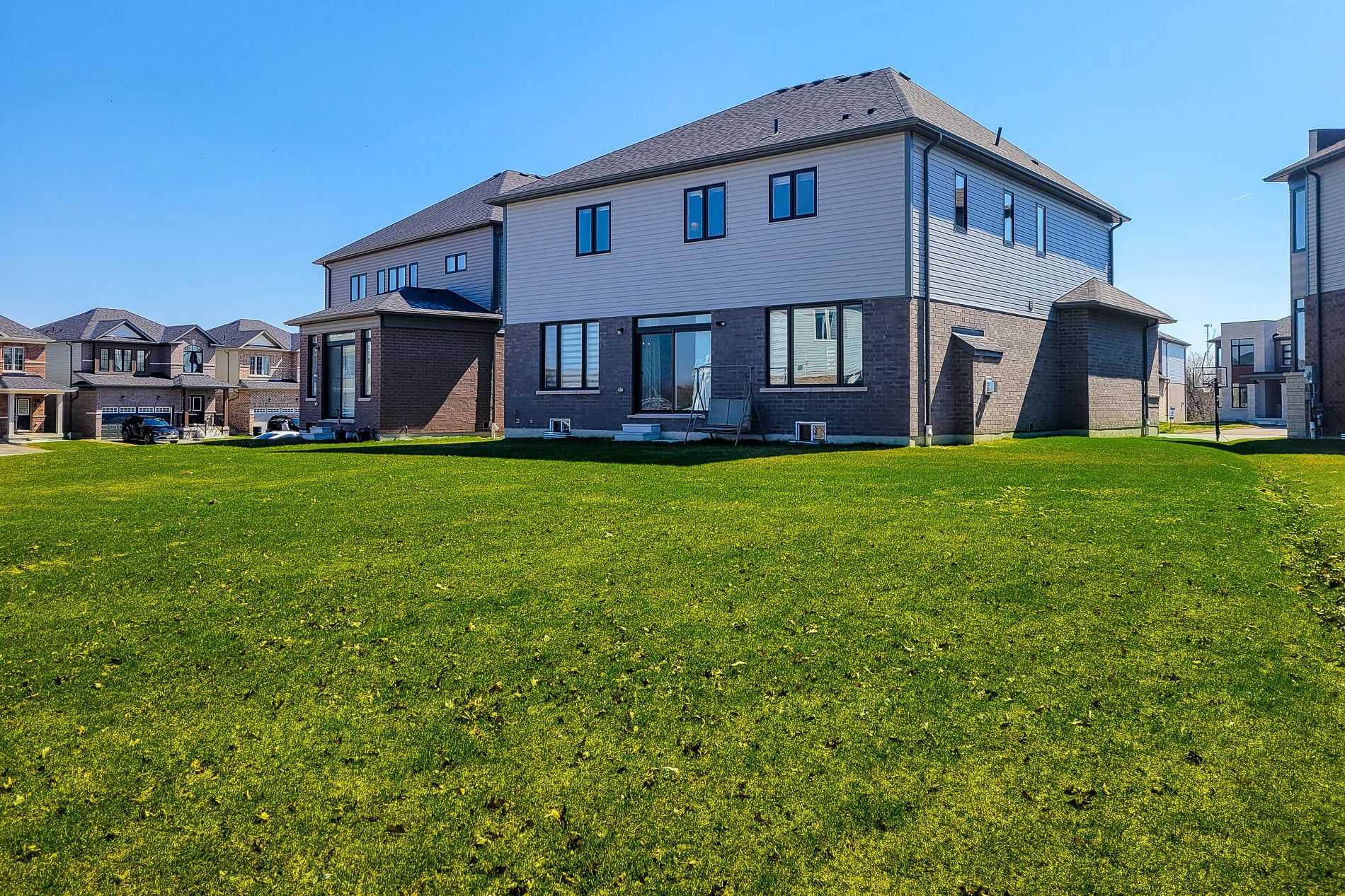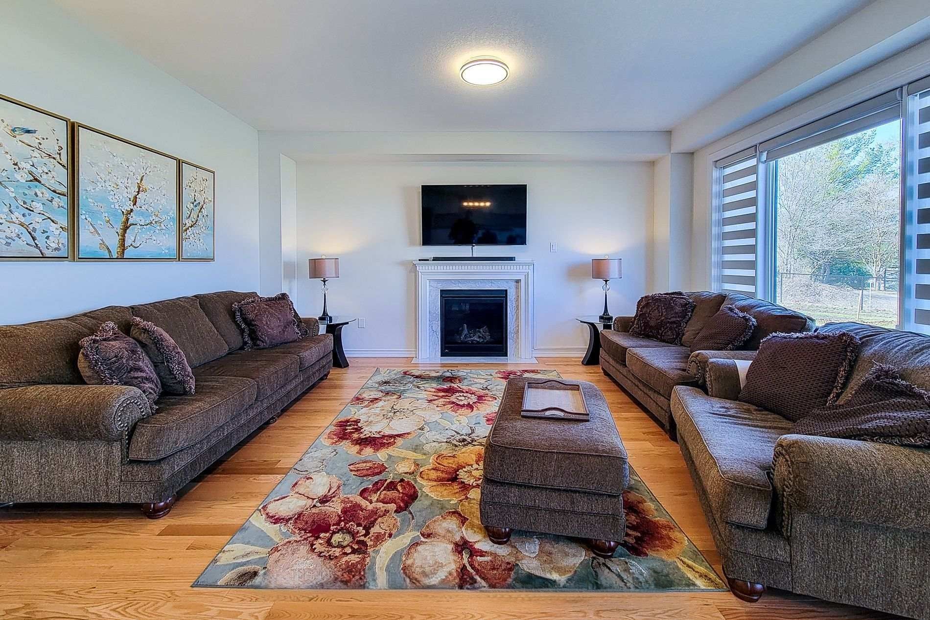 Welcome to 43 mears place in the highly sought-after paris riverside community. Built in 2024, this upgraded wildflower model offers over 3,300 sq ft of refined living space with 5 bedrooms and 4 bathrooms-perfect for modern family living. Designed with both style and function in mind, the home features a bright open-concept layout with oversized windows that flood the space with natural light, including upgraded enlarged basement windows for added versatility. The kitchen is a true standout, showcasing upgraded countertops, a stylish backsplash, gas stove, premium appliances, and a large centre island-ideal for everyday living and entertaining. Elegant touches such as upgraded staircase railings, designer light fixtures, and zebra blinds elevate the home throughout, while a full water purification system adds an extra level of comfort and quality. The main floor flows seamlessly into a warm family room with a gas fireplace, complemented by hardwood flooring, smooth ceilings, and convenient laundry with direct garage access. Upstairs, the spacious primary suite offers a walk-in closet and private en-suite, with well-appointed secondary bedrooms and additional bathrooms designed for growing families. Situated on a premium ravine lot with an exterior gas line, this home offers the perfect blend of luxury, practicality, and location-just minutes from downtown paris, parks, amenities, and highway access.