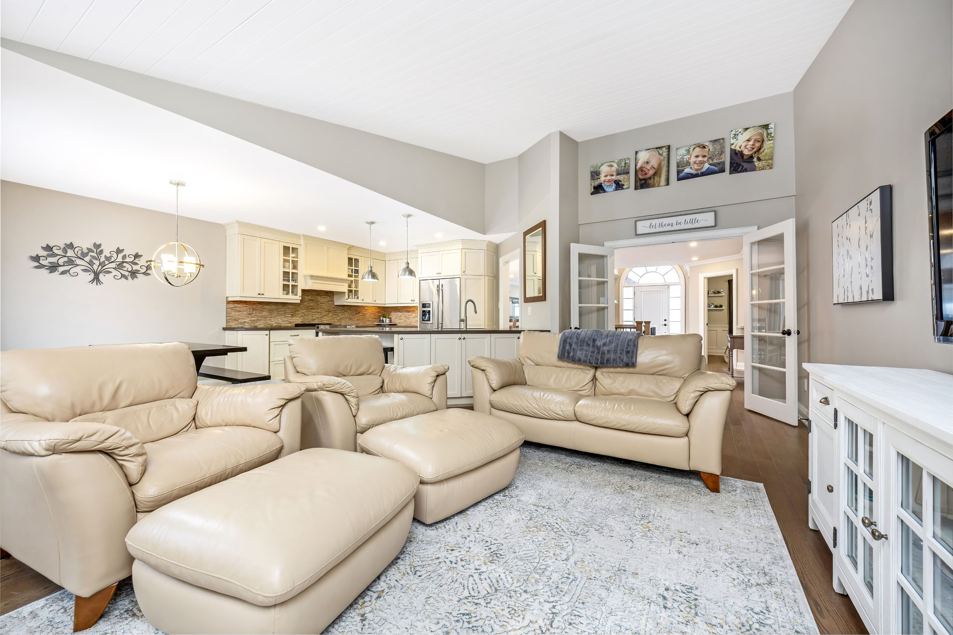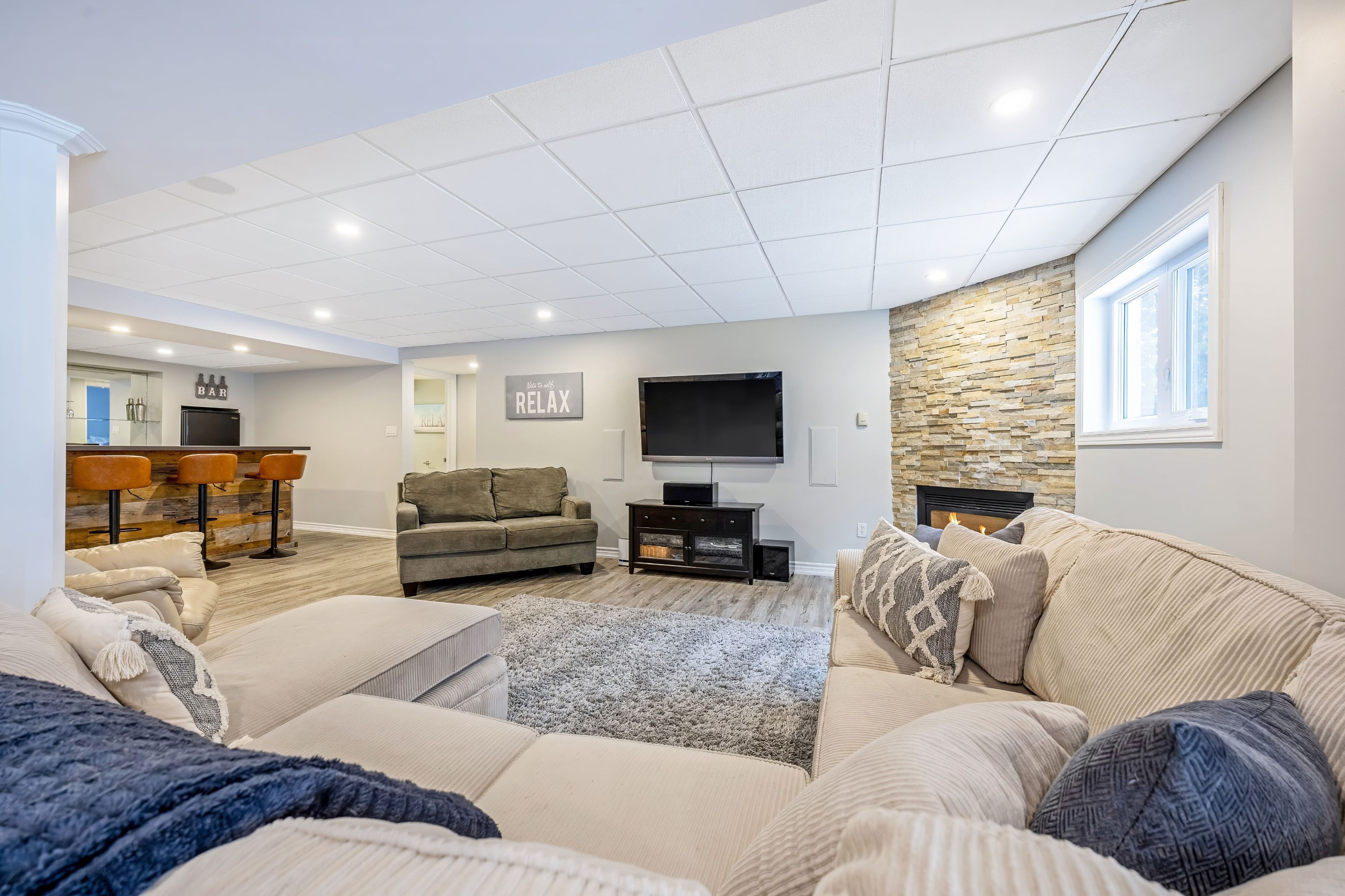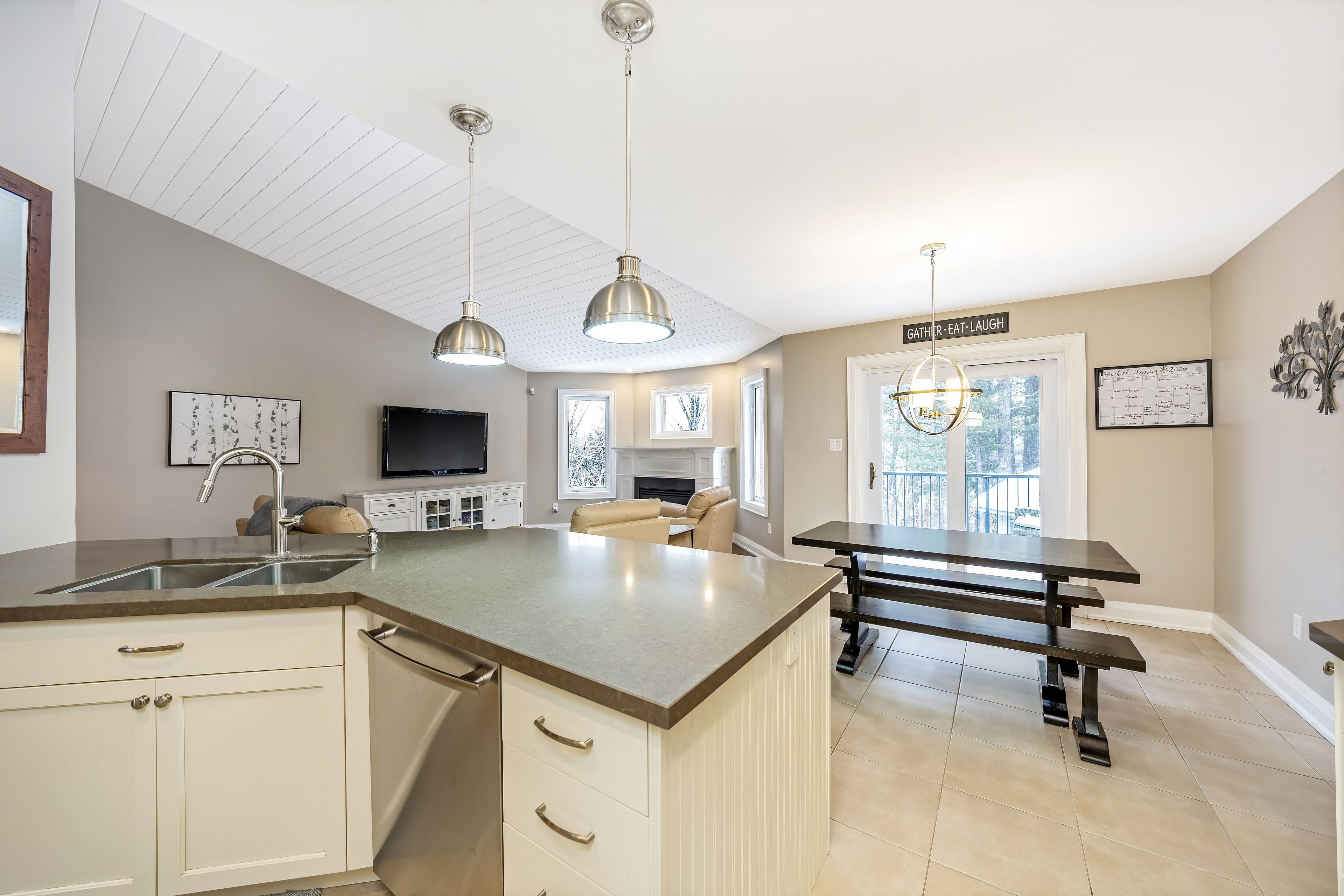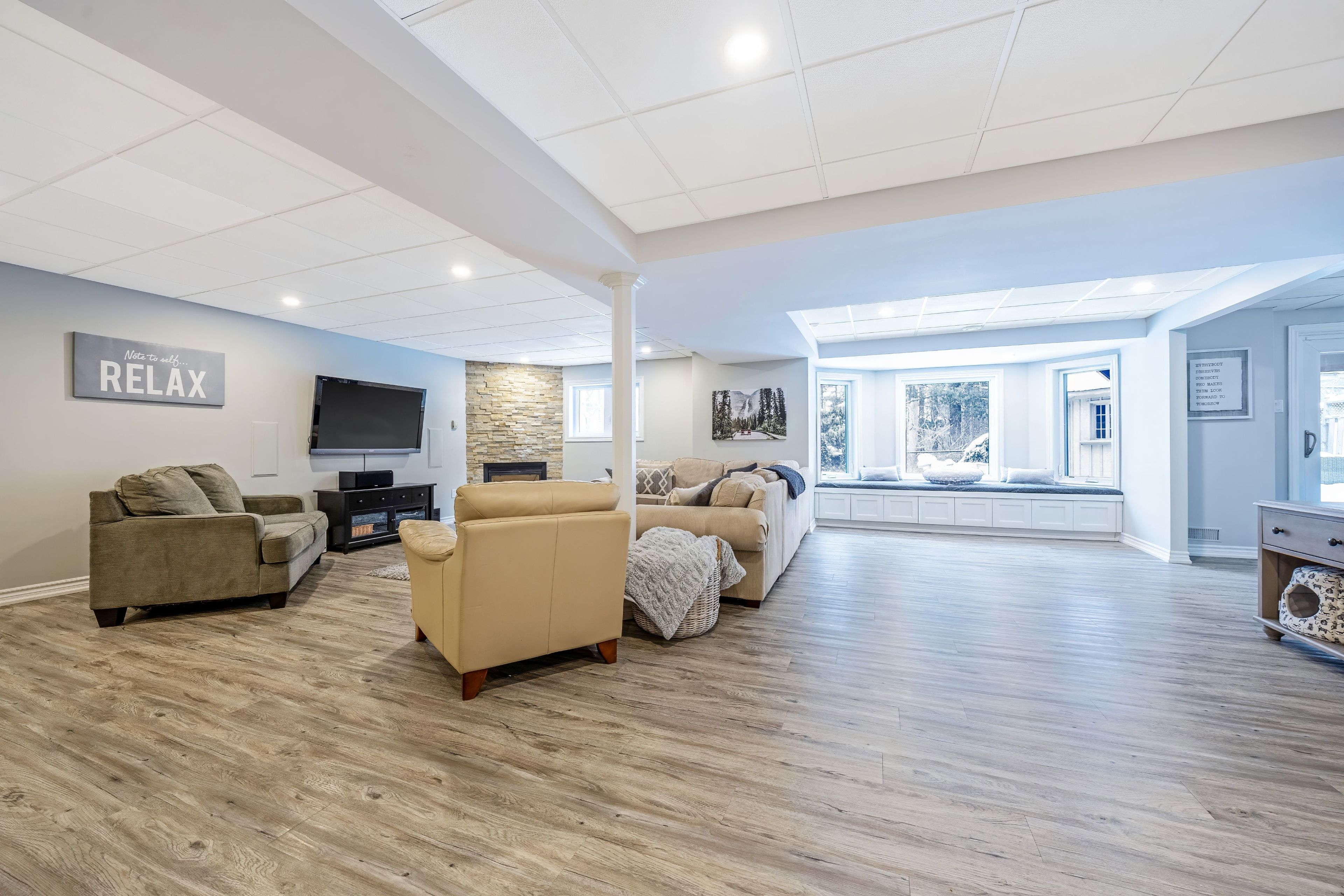 Welcome to newman place, a quiet cul-de-sac just minutes from downtown georgetown, offering a stunning detached bungalow set on a private ravine lot with an inground pool. A landscaped front yard and stone walkway lead to a bright, inviting foyer highlighted by soaring ceilings, an arched transom window, and full-height sidelights. The main level features hardwood flooring throughout and a seamless open-concept layout ideal for both everyday living and entertaining. The living and dining areas are accented by crown moulding, expansive windows, and a striking feature wall with an electric fireplace. The kitchen showcases white shaker-style cabinetry, quartz countertops, tile backsplash, a centre island with breakfast bar seating, and stainless steel appliances. The adjoining breakfast area offers a walkout to a private composite deck with gas bbq hookup and spiral staircase to pool area. Open to the kitchen, the family room impresses with vaulted shiplap ceilings, a gas fireplace, & large windows overlooking the ravine. The primary bedroom retreat features hardwood flooring, a walk-in closet with built-in shelving, and a spa-inspired five-piece ensuite complete with soaker tub, glass-enclosed shower, and double vanity. Two additional bedrooms, a four-piece family bathroom, and a convenient laundry room with garage access complete the main level. The finished lower-level walkout is designed for entertaining, featuring a movie room, office area, and a spacious recreation room with wet bar and gas fireplace. Two additional bedrooms & a four-piece bathroom provide excellent space for teens, guests, or in-law potential. Step outside to enjoy the private backyard oasis, perfect for hot summer days, complete with an interlocking stone patio, heated inground saltwater pool with waterfall, cabana, and the private ravine setting. All this close to downtown, farmer's market & park public school with easy access to commuter routes. Don't miss out on this one!