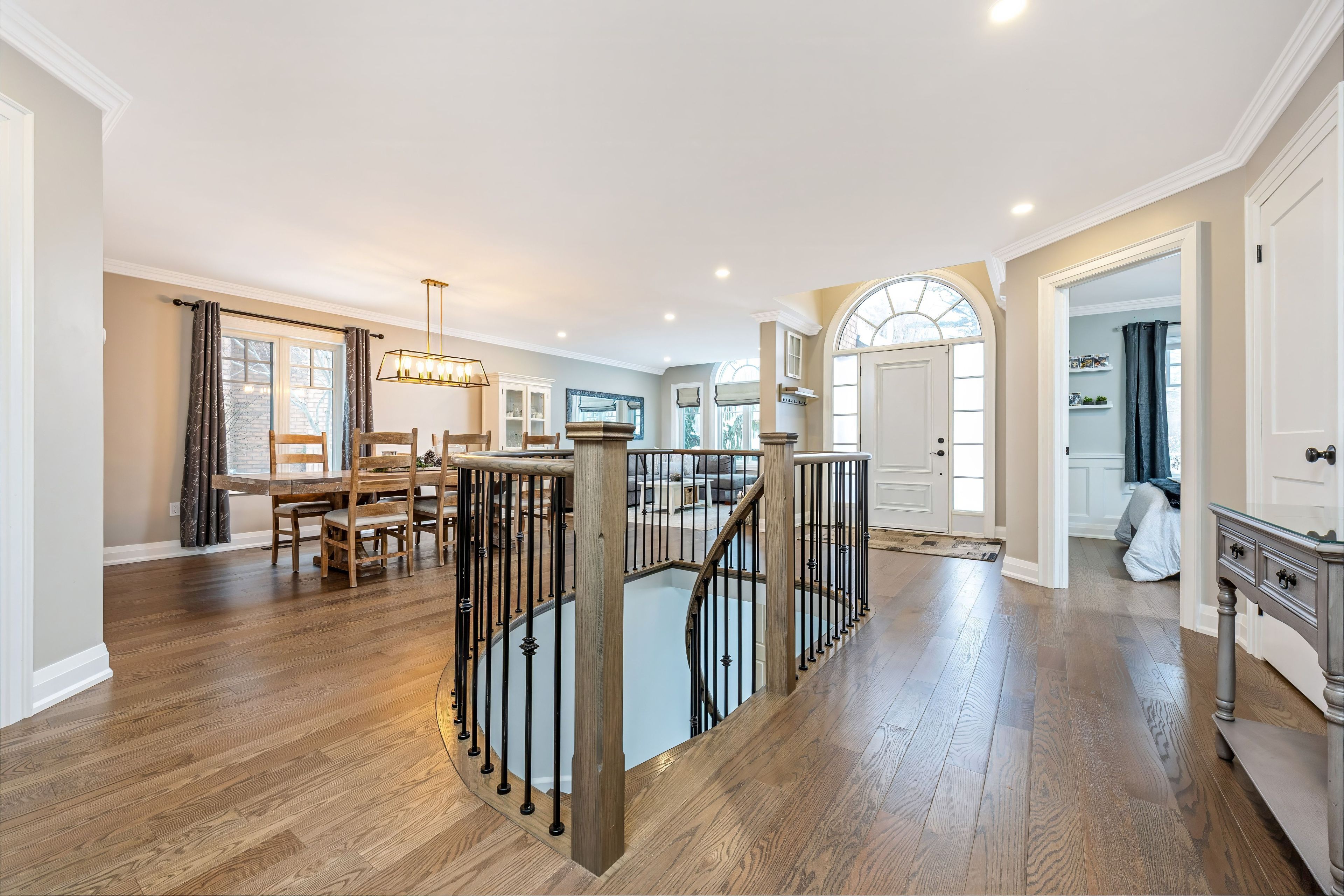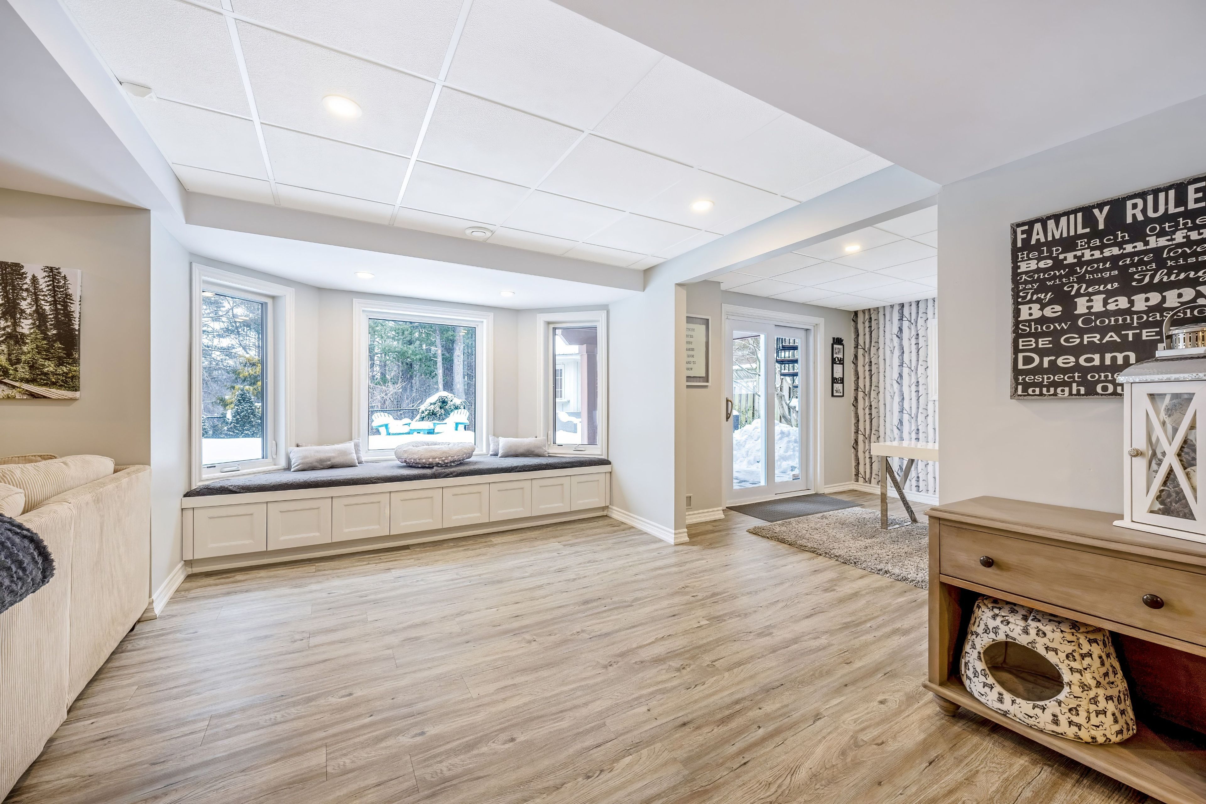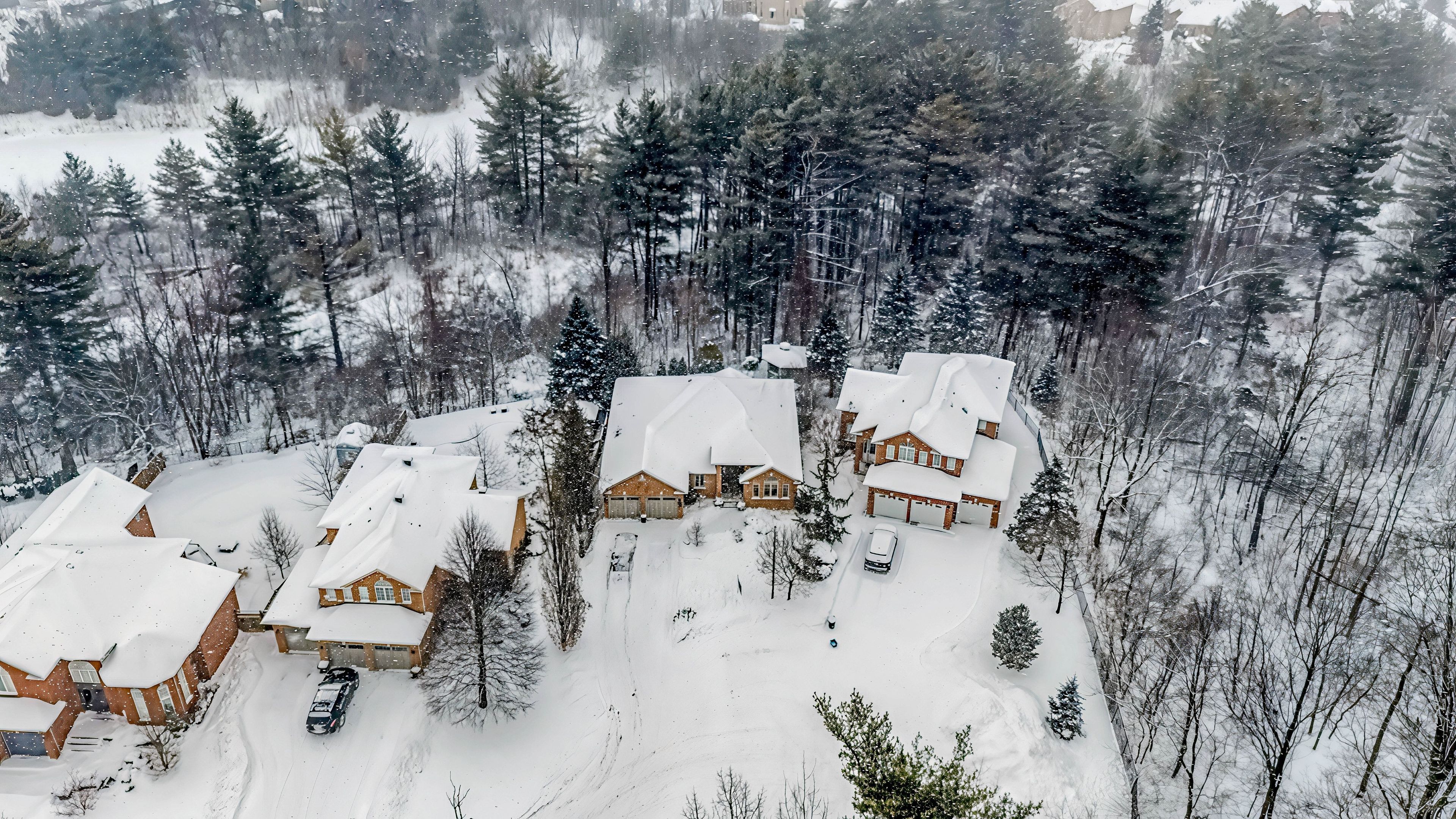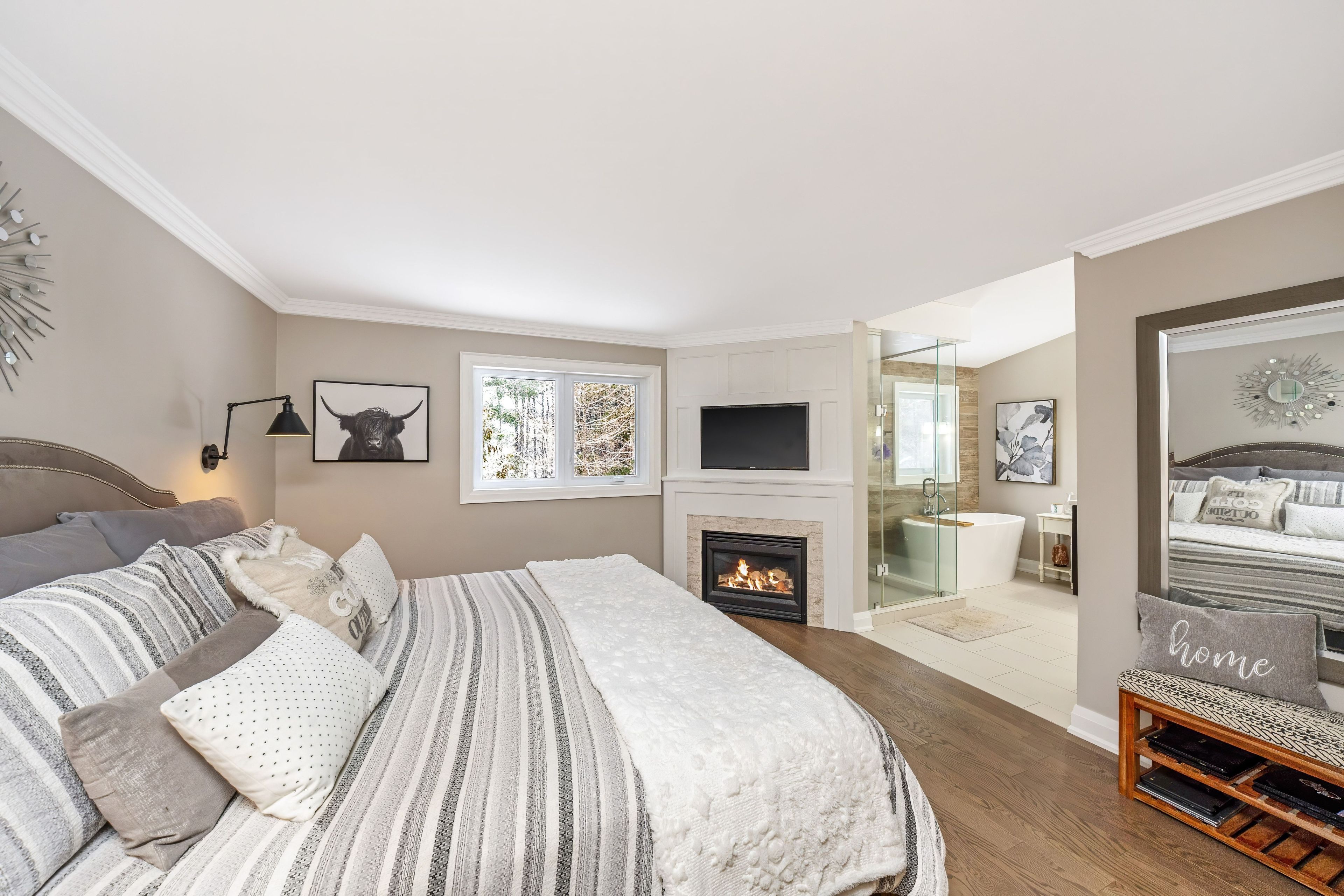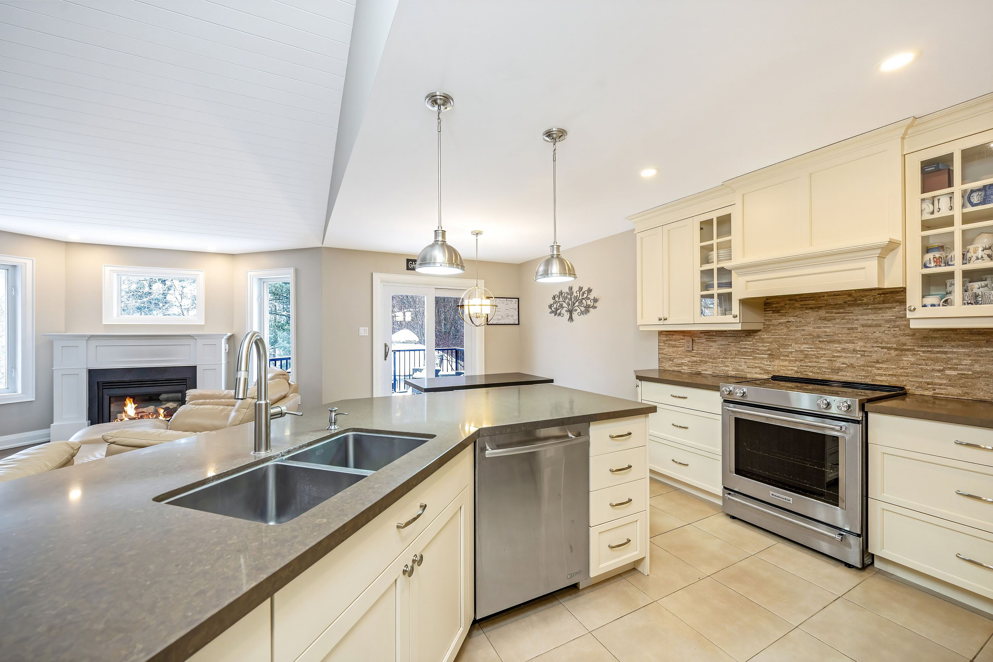 Welcome to newman place, a quiet cul-de-sac just minutes from downtown georgetown, offering a stunning detached bungalow set on a private ravine lot with an inground pool. A landscaped front yard and stone walkway lead to a bright, inviting foyer highlighted by soaring ceilings, an arched transom window, and full-height sidelights. The main level features hardwood flooring throughout and a seamless open-concept layout ideal for both everyday living and entertaining. The living and dining areas are accented by crown moulding, expansive windows, and a striking feature wall with an electric fireplace. The kitchen showcases white shaker-style cabinetry, quartz countertops, tile backsplash, a centre island with breakfast bar seating, and stainless steel appliances. The adjoining breakfast area offers a walkout to a private composite deck with gas bbq hookup and spiral staircase to pool area. Open to the kitchen, the family room impresses with vaulted shiplap ceilings, a gas fireplace, & large windows overlooking the ravine. The primary bedroom retreat features hardwood flooring, a walk-in closet with built-in shelving, and a spa-inspired five-piece ensuite complete with soaker tub, glass-enclosed shower, and double vanity. Two additional bedrooms, a four-piece family bathroom, and a convenient laundry room with garage access complete the main level. The finished lower-level walkout is designed for entertaining, featuring a movie room, office area, and a spacious recreation room with wet bar and gas fireplace. Two additional bedrooms & a four-piece bathroom provide excellent space for teens, guests, or in-law potential. Step outside to enjoy the private backyard oasis, perfect for hot summer days, complete with an interlocking stone patio, heated inground saltwater pool with waterfall, cabana, and the private ravine setting. All this close to downtown, farmer's market & park public school with easy access to commuter routes. Don't miss out on this one!
