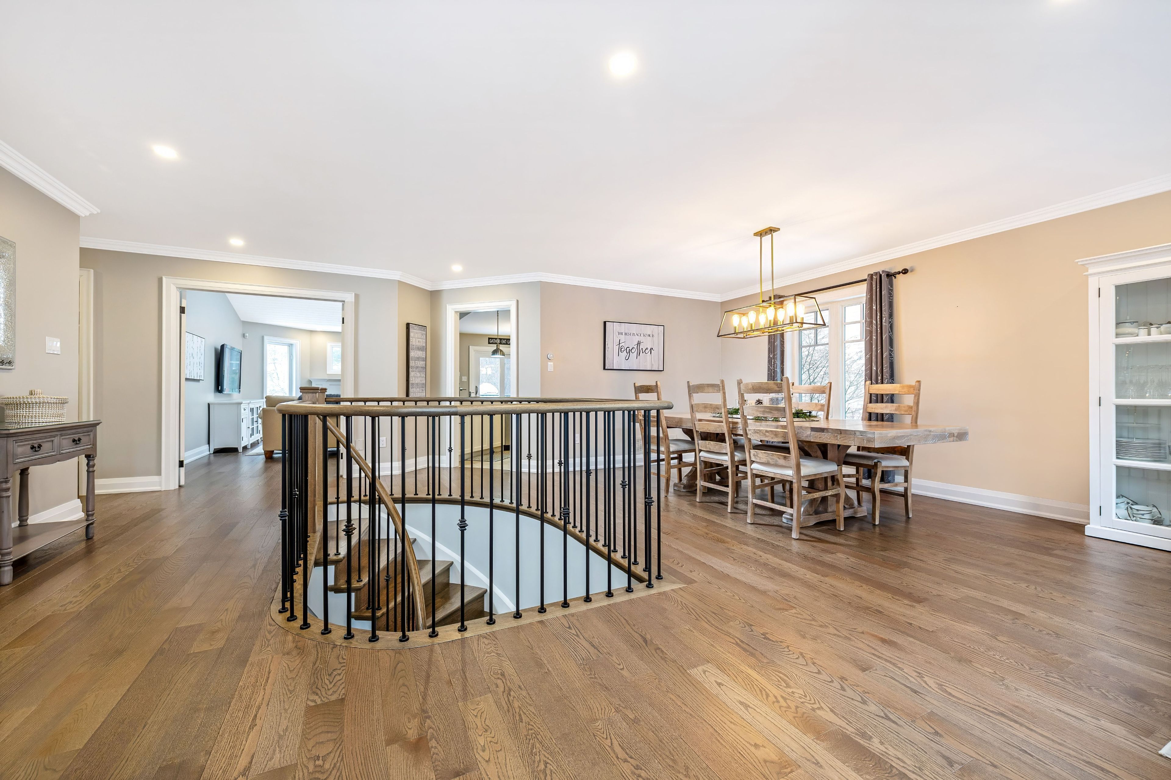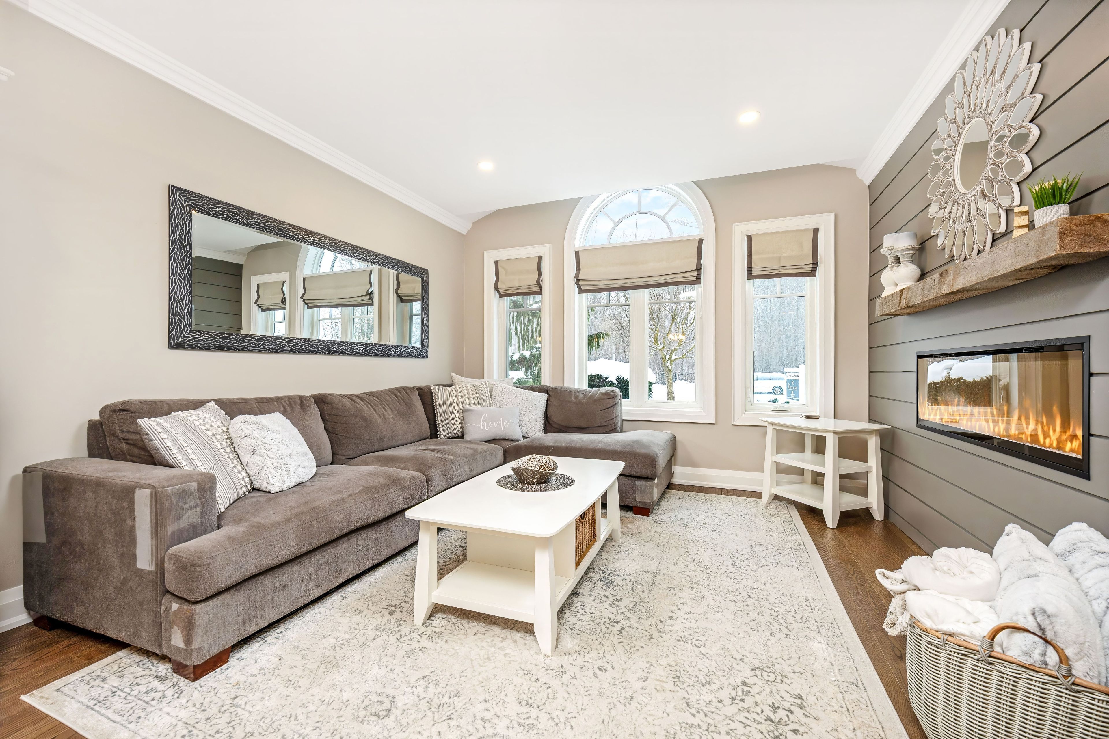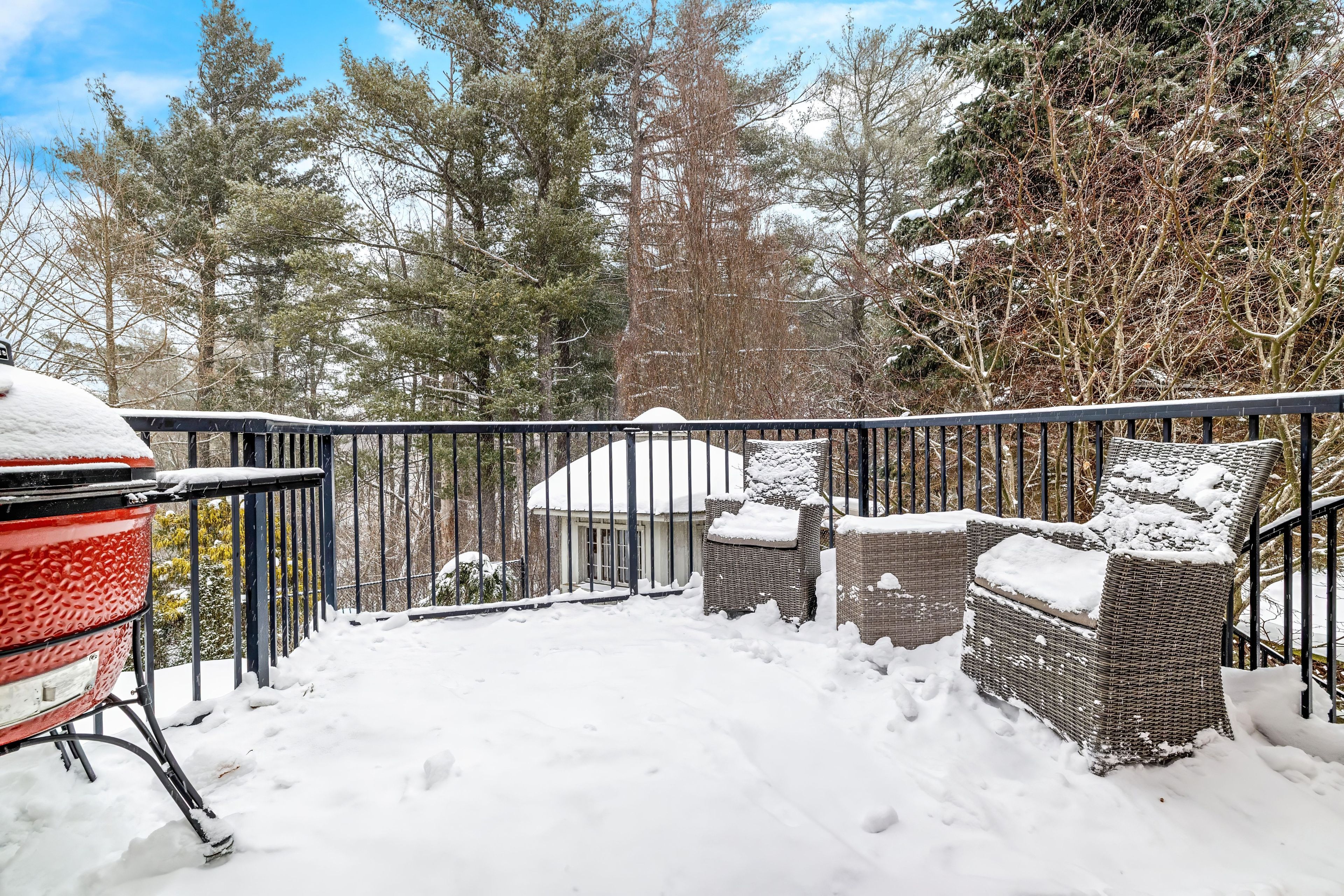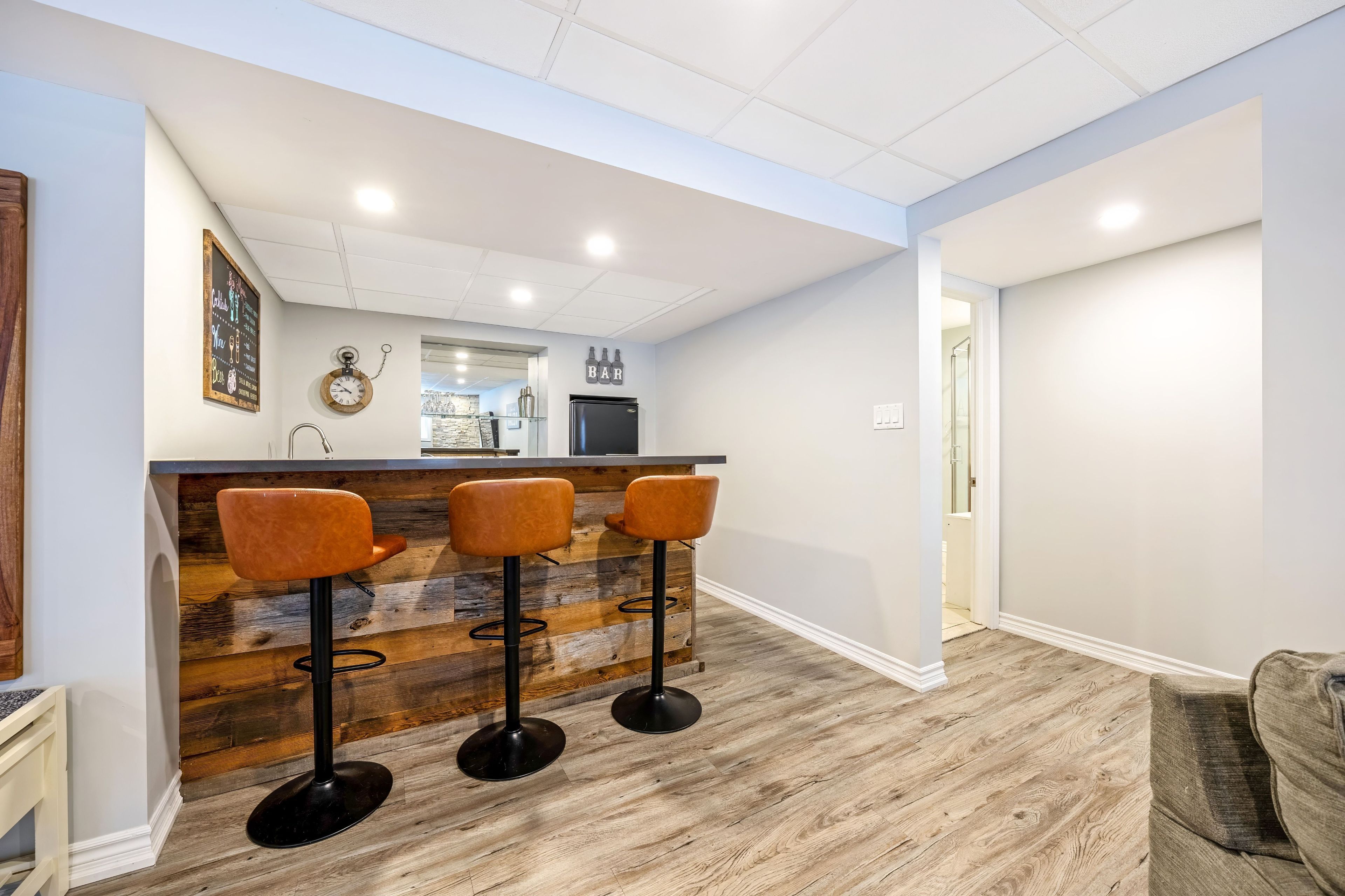 Welcome to newman place, a quiet cul-de-sac just minutes from downtown georgetown, offering a stunning detached bungalow set on a private ravine lot with an inground pool. A landscaped front yard and stone walkway lead to a bright, inviting foyer highlighted by soaring ceilings, an arched transom window, and full-height sidelights. The main level features hardwood flooring throughout and a seamless open-concept layout ideal for both everyday living and entertaining. The living and dining areas are accented by crown moulding, expansive windows, and a striking feature wall with an electric fireplace. The kitchen showcases white shaker-style cabinetry, quartz countertops, tile backsplash, a centre island with breakfast bar seating, and stainless steel appliances. The adjoining breakfast area offers a walkout to a private composite deck with gas bbq hookup and spiral staircase to pool area. Open to the kitchen, the family room impresses with vaulted shiplap ceilings, a gas fireplace, & large windows overlooking the ravine. The primary bedroom retreat features hardwood flooring, a walk-in closet with built-in shelving, and a spa-inspired five-piece ensuite complete with soaker tub, glass-enclosed shower, and double vanity. Two additional bedrooms, a four-piece family bathroom, and a convenient laundry room with garage access complete the main level. The finished lower-level walkout is designed for entertaining, featuring a movie room, office area, and a spacious recreation room with wet bar and gas fireplace. Two additional bedrooms & a four-piece bathroom provide excellent space for teens, guests, or in-law potential. Step outside to enjoy the private backyard oasis, perfect for hot summer days, complete with an interlocking stone patio, heated inground saltwater pool with waterfall, cabana, and the private ravine setting. All this close to downtown, farmer's market & park public school with easy access to commuter routes. Don't miss out on this one!