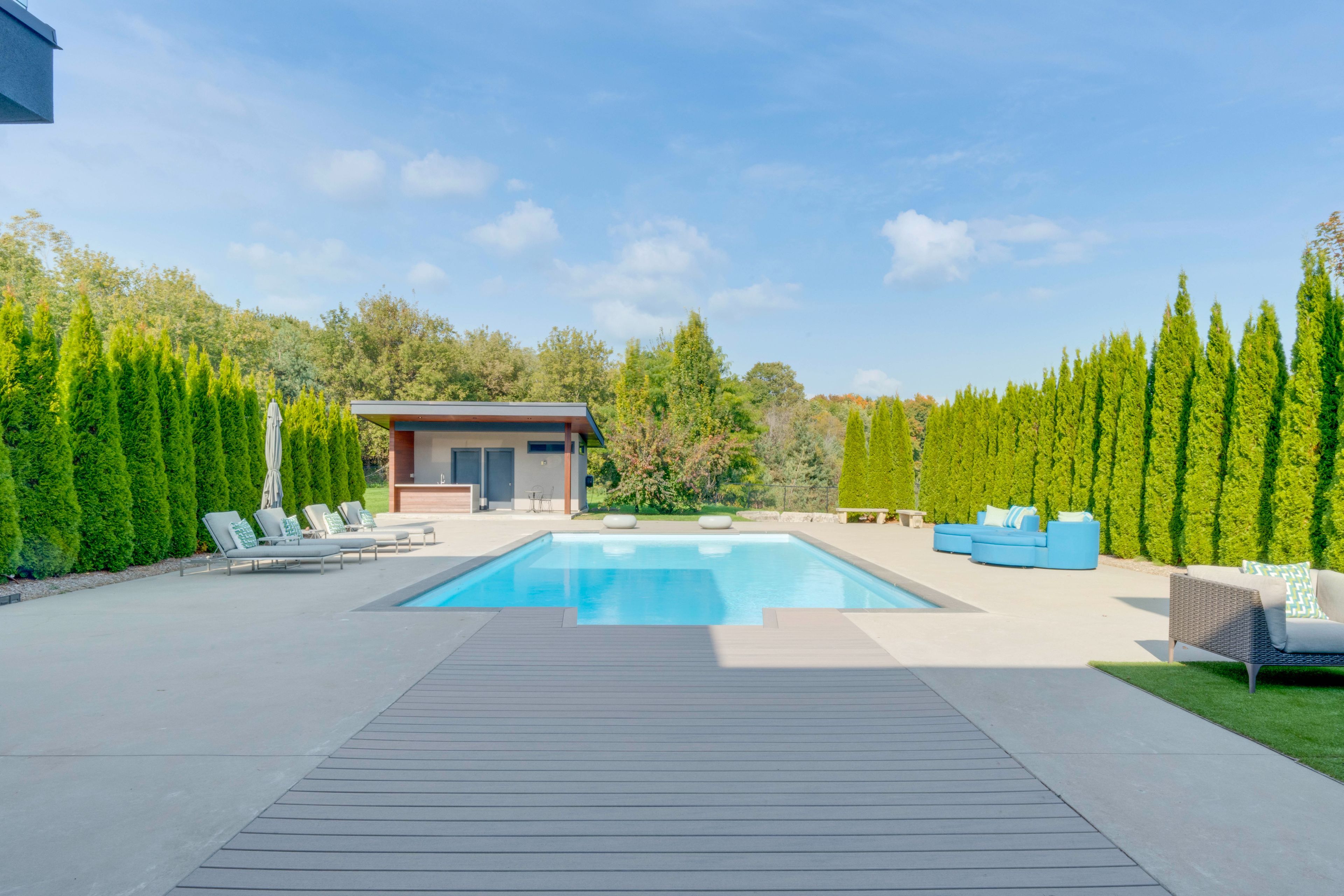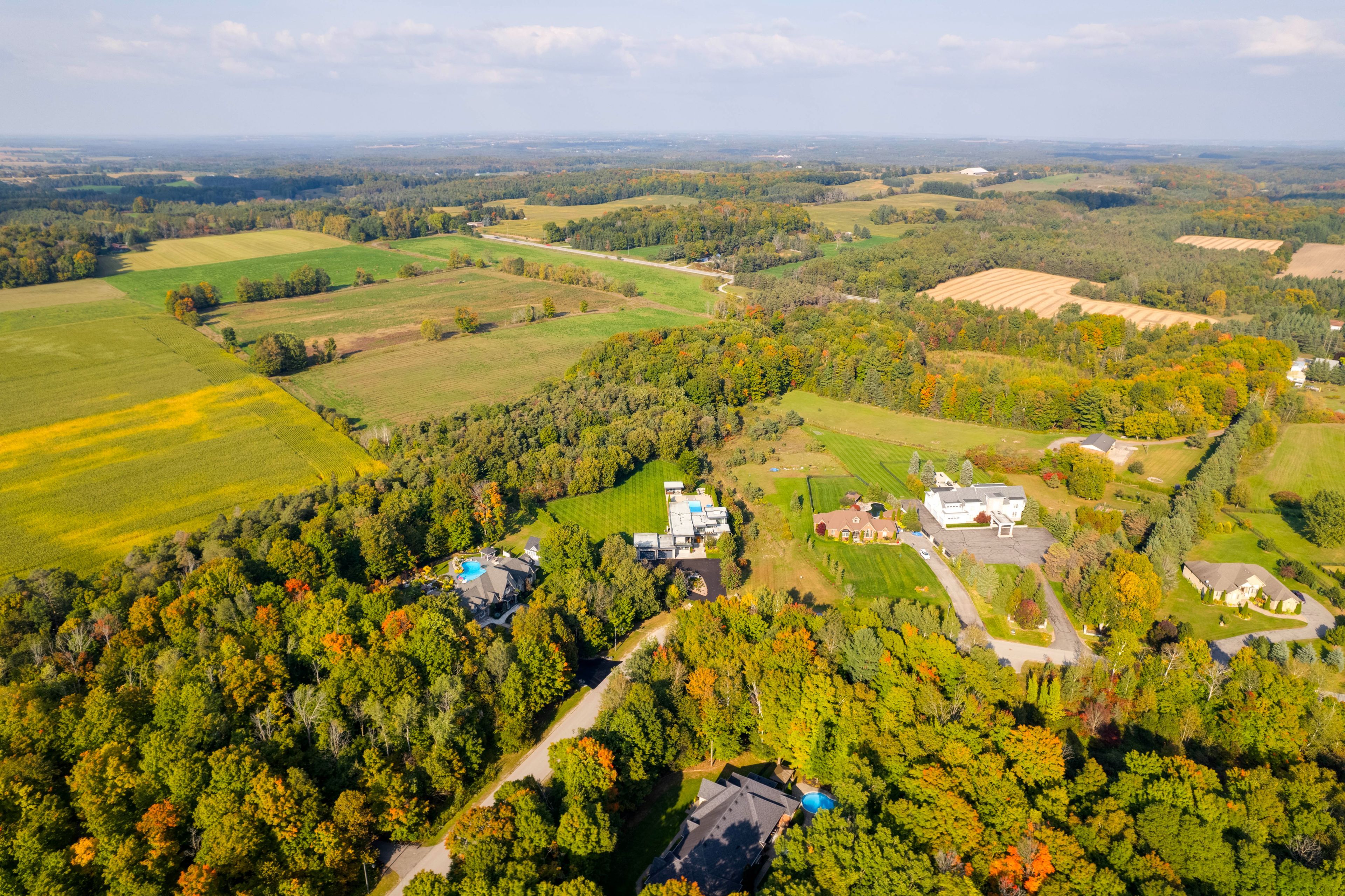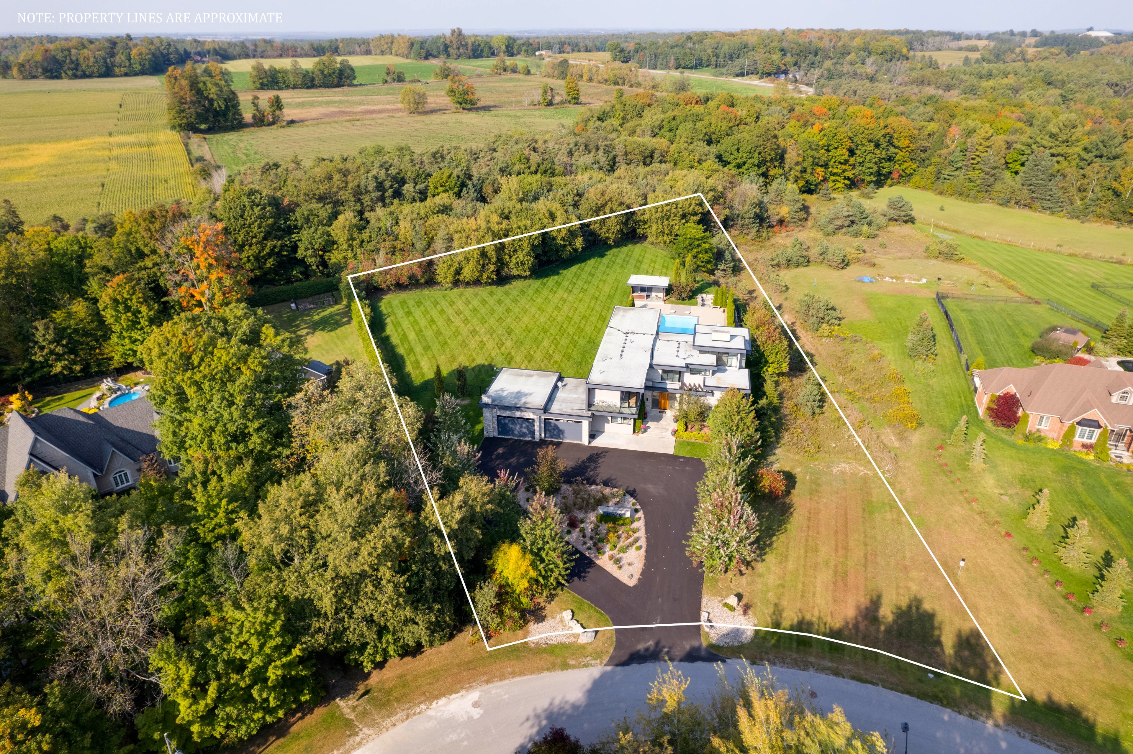 Experience luxury living at this breathtaking modern estate on 2 acres! Portions of interior masterfully designed by award winning interior designer eric mcclelland of fleur-de-lis interior design inc. The main floor boasts a contemporary kitchen with with custom cabinetry and eat in kitchen, sunken dining room with walkout to backyard, living room with floor to ceiling windows and walkout to patio, family room overlooking the garden with gas fireplace and a sun filled office with built in shelving. Master bedroom oasis with a balcony overlooking the backyard, custom built-in cabinetry and custom 6 piece ensuite with steam shower. All bedrooms have an ensuite and large windows. Meticulous maintained stone, stucco and cedar exterior with professionally landscaped gardens, outdoor saltwater pool, fire pit and cabana. Perfect for entertaining indoors and out. Spectacular basement with home theatre with full projection system, wine fridge, workout room, kitchenette and bar space. 5th bedroom in basement with custom cabinetry and ensuite as well. Elevator gives access to all floors. Dog wash station in mudroom with sink and built in cabinetry. Radiant floor heating through much of home. Automated shades in most rooms, custom lighting system with pot lights, sonos sound system throughout! Exterior repainted and stained (2023), outdoor decking (2023), roof (2016), windows (2016), a/c (2016), furnace (2016), sump pump (2017).