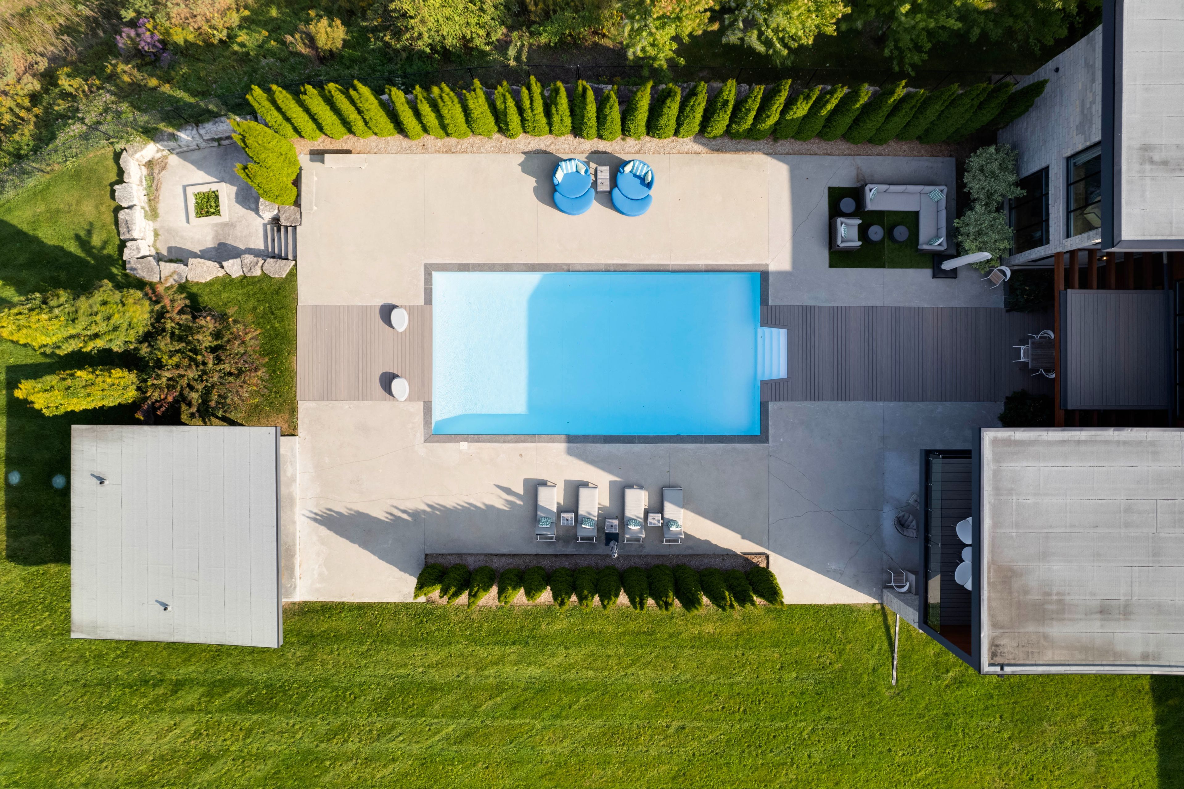 • Professionally landscaped yard with saltwater pool and fire pit.