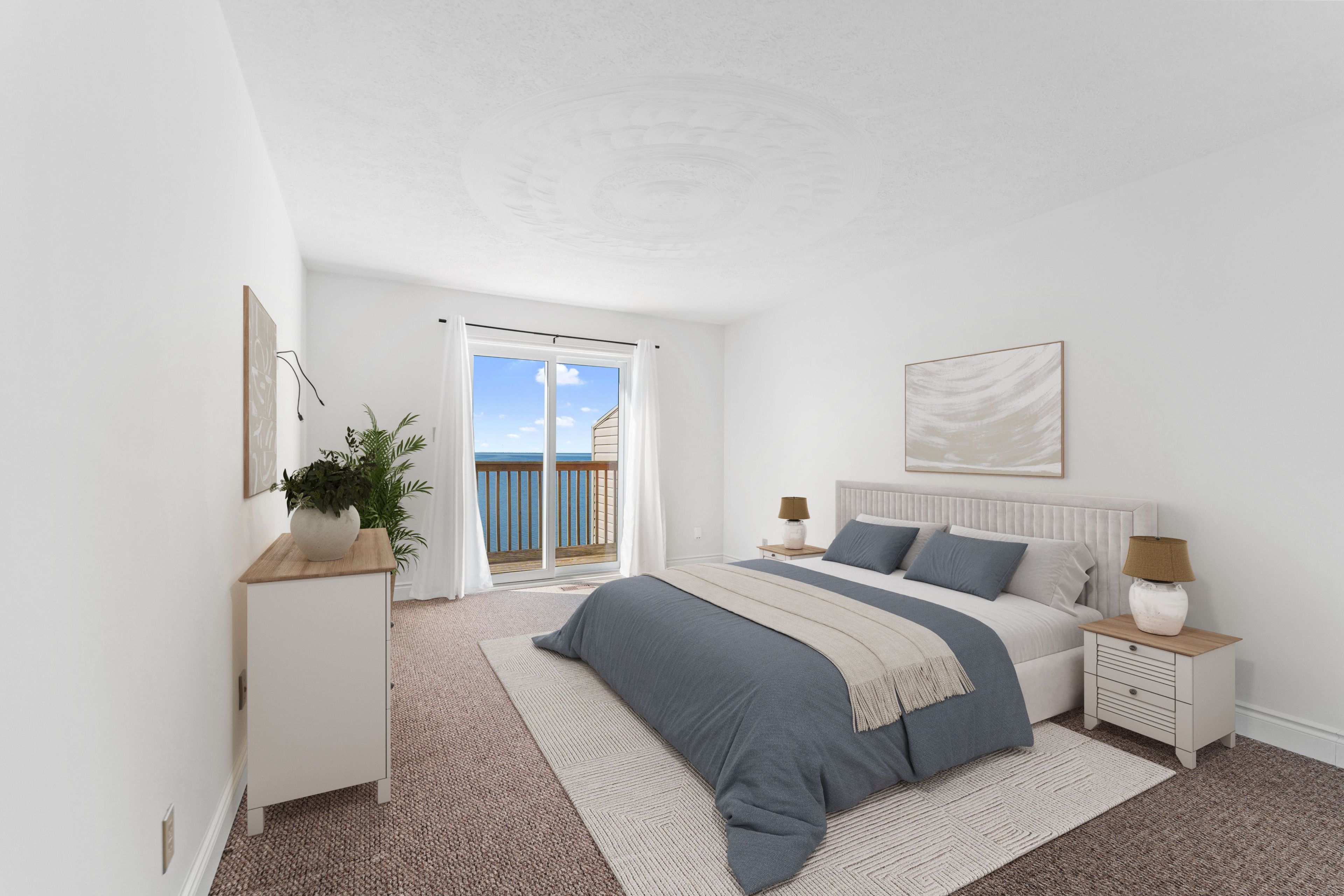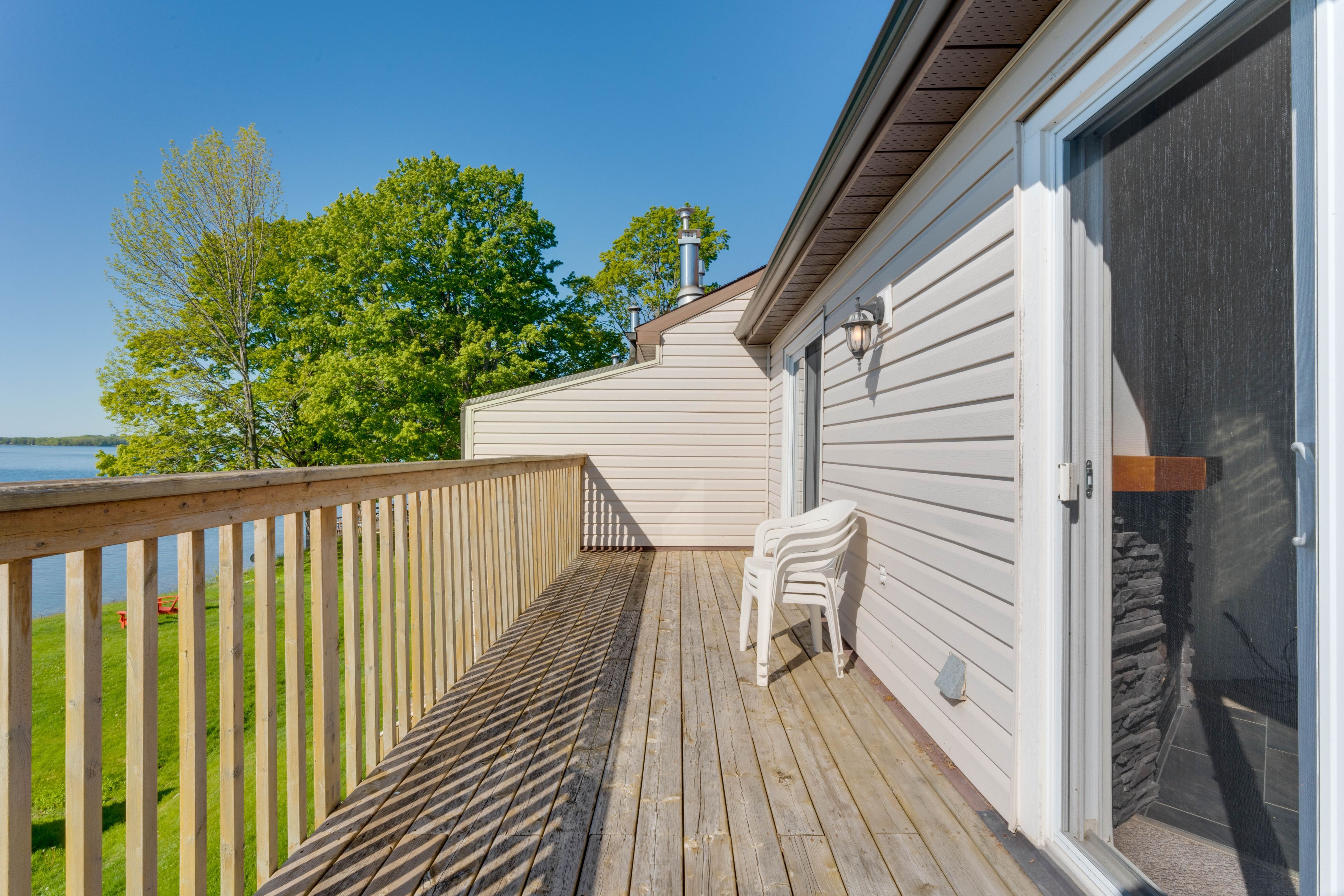 Welcome to lakeside living on beautiful lake simcoe. This bright and spacious upper-level stacked condo townhouse offers over 1,000 sq ft of thoughtfully designed living space, ideal for those seeking a quiet and relaxed lifestyle. The home features 2 generous bedrooms and 2 full 4-piece bathrooms. The open-concept layout seamlessly connects the kitchen, dining, and living areas, complete with a cozy wood-burning fireplace and a walkout to an oversized private deck with breathtaking sunrise views over the water. Enjoy shared access to lake simcoe with a dock, along with beautifully maintained green space along the waterfront, perfect for enjoying the scenery and embracing lakeside living. This unit includes an oversized private garage with parking for one vehicle, as well as in-suite laundry for added convenience. Ample visitor parking is located just steps from the unit and can unofficially accommodate a second vehicle. Located just minutes from downtown orillia, you will enjoy easy access to everyday amenities while experiencing the privacy and tranquility of waterfront living. Tenant to pay hydro and gas. Pet free and smoke free building as per condo rules. Credit check, employment letter, recent pay stubs, and references are required.