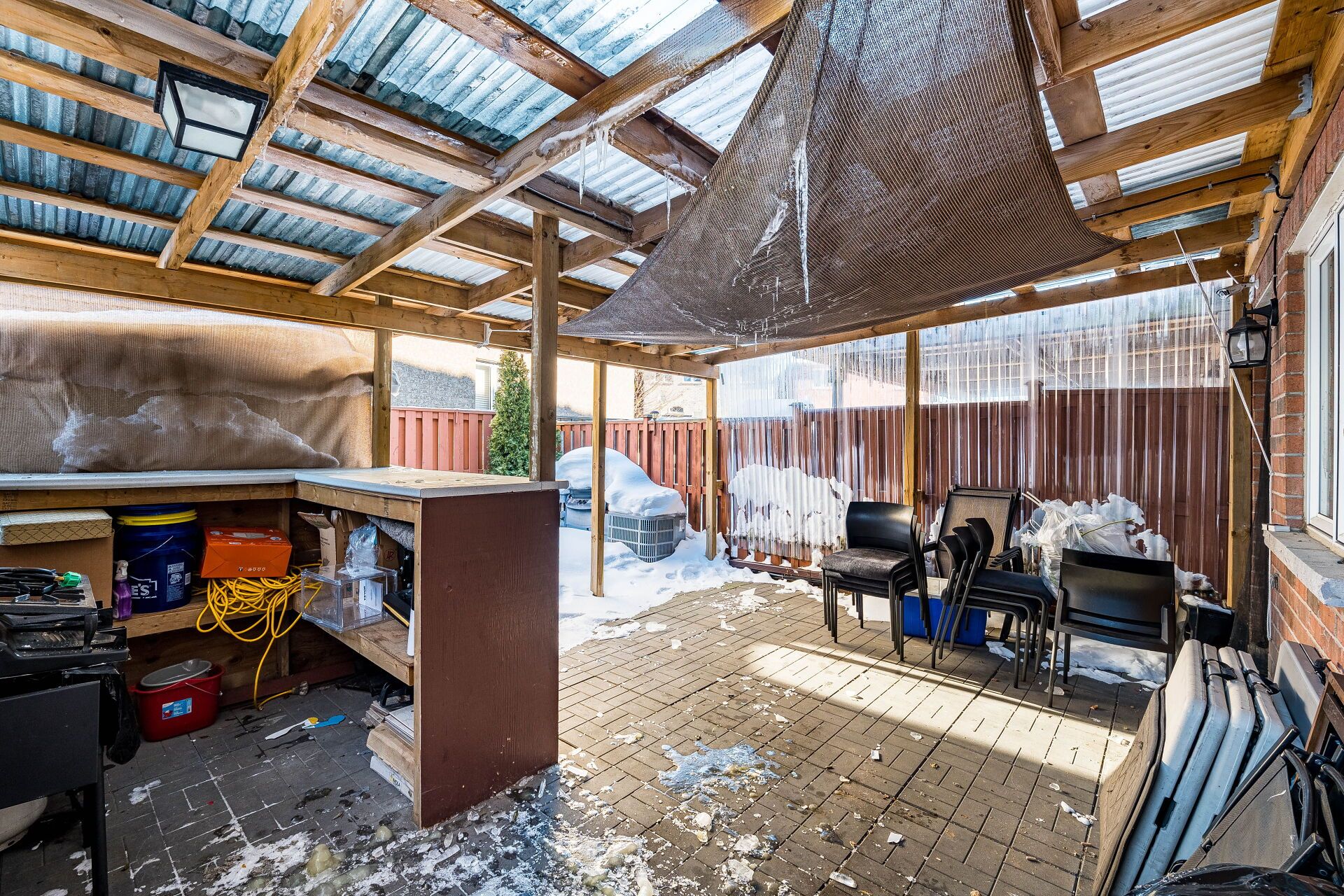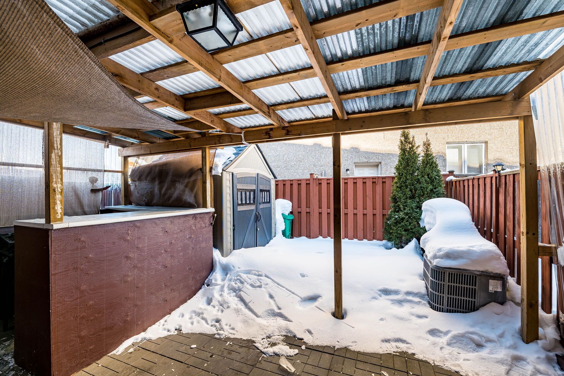 • Private backyard with covered patio, perfect for relaxing or entertaining.