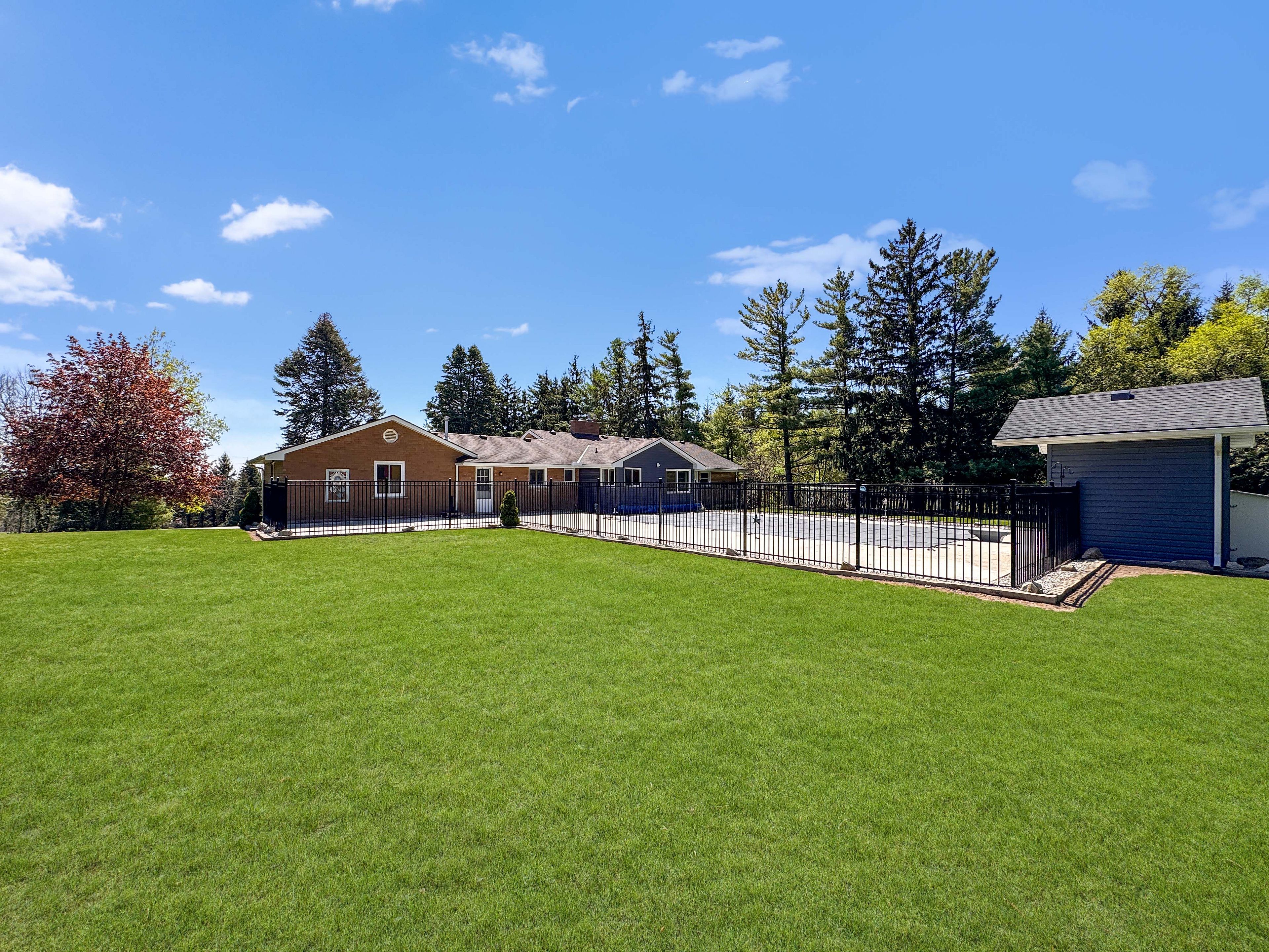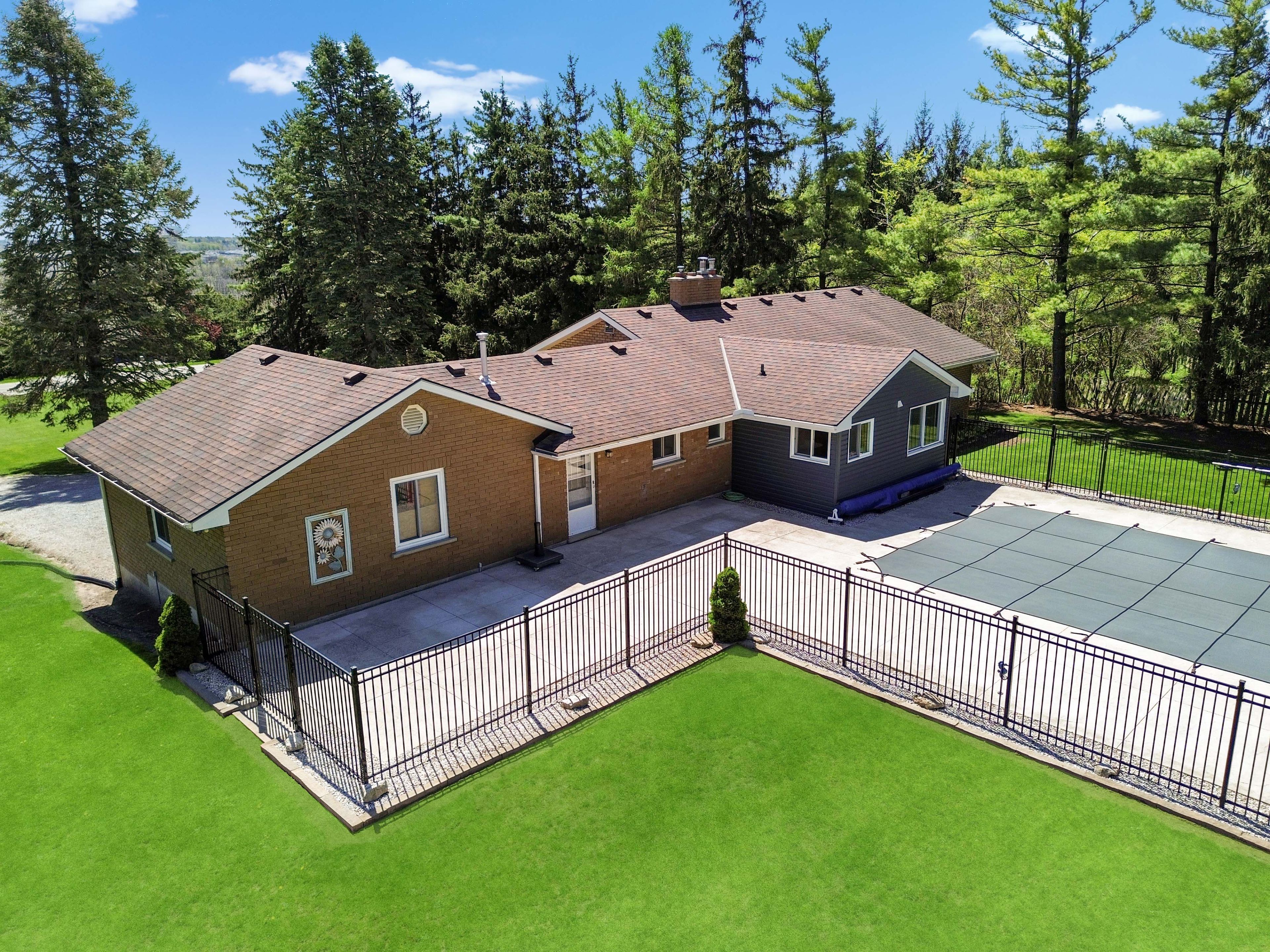 Theres always a statement to be made with a stately, impressive home, and this one delivers. Set on an enormous l-shaped property dotted with fruit trees, this meticulously maintained gem offers a long list of features that make it feel like your own private paradise. The elevated main level is surrounded by lush landscaping and opens up to a luxurious heated executive saltwater pool. You'll find a private garden with a rainwater-collecting cistern, an outdoor activity area, and a giant log pile to fuel your wood-burning fireplace. A private well provides water to the home, and the property is on septic. Theres also a massive outbuilding with a steel roof, roll-up man door, bay door, and additional loft storage. The 12-plus car driveway leaves nothing to be desired. Its a little piece of heaven, close enough to the city that all the major amenities are just a short drive away, but far enough that when you close your eyes at night, you hear nothing at all. Except, maybe, the sound of wildlife in the greenspace this home backs onto. And we havent even talked about the house yet. Step through the front door and turn left into your open kitchen, dining, and living room. Tucked away, you'll find generously sized bedrooms, including a primary suite with a five-piece ensuite and walk-in closet. Turn right and youll find a two-piece bathroom, your laundry room, and an enormous garage. The main floor features a walkout to your beautiful backyard, and no shortage of large windows that keep the space bright and inviting. The lower level offers even more than you'd expect, including a bedroom, cold cellar, utility room, and several bonus rooms that could become nearly anything you imagine. This home is filled with potential, room to grow, and space to breathe. It's been loved, it's been lived in, and now it's ready for someone new to write the next chapter within its walls.