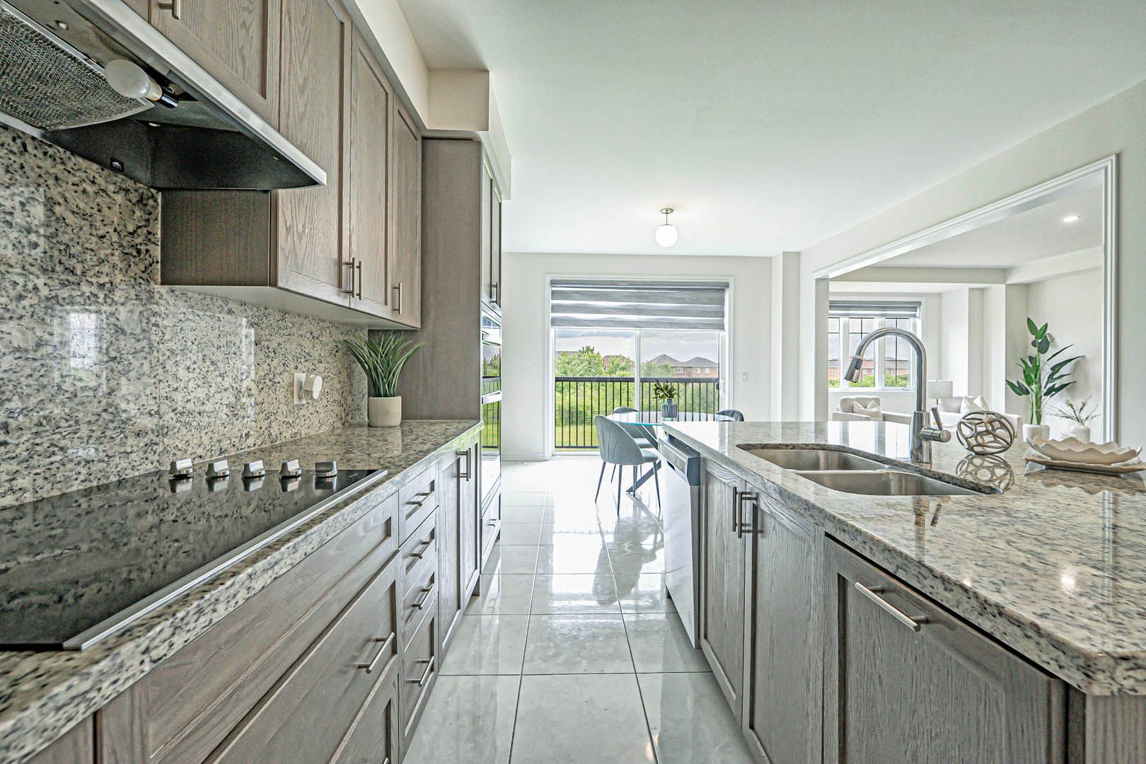 Absolutely stunning executive 5-bedroom, 5-bathroom detached home boasting 3,600 sq. Ft. Above grade, a walk-out basement, and a premium 190-ft deep ravine lot. Built in 2022, this home sits on one of the largest lots in the subdivision. Step into a grand double-door entry and enjoy hardwood flooring throughout the main level, along with bright, open-concept living and dining areas filled with natural light and a main floor office/den. The heart of the home is the custom chefs kitchen featuring built-in stainless steel appliances, granite countertops, extended cabinetry, and a large center island, perfect for entertaining. Relax in the cozy family room with a modern gas fireplace and stunning views of the expansive backyard and ravine. The upper level features five large sized bedrooms and four full bathrooms, including a luxurious primary suite with a walk-in closet and a spa-like upgraded ensuite. This property also offers a separate side entrance provided by the builder and a walk-out basement with large windows, making it ideal for future income potential or personal use. A must-see home that seamlessly combines space, elegance, and functionality! Prime location near reputable schools, parks, bus routes, golf courses and highways.