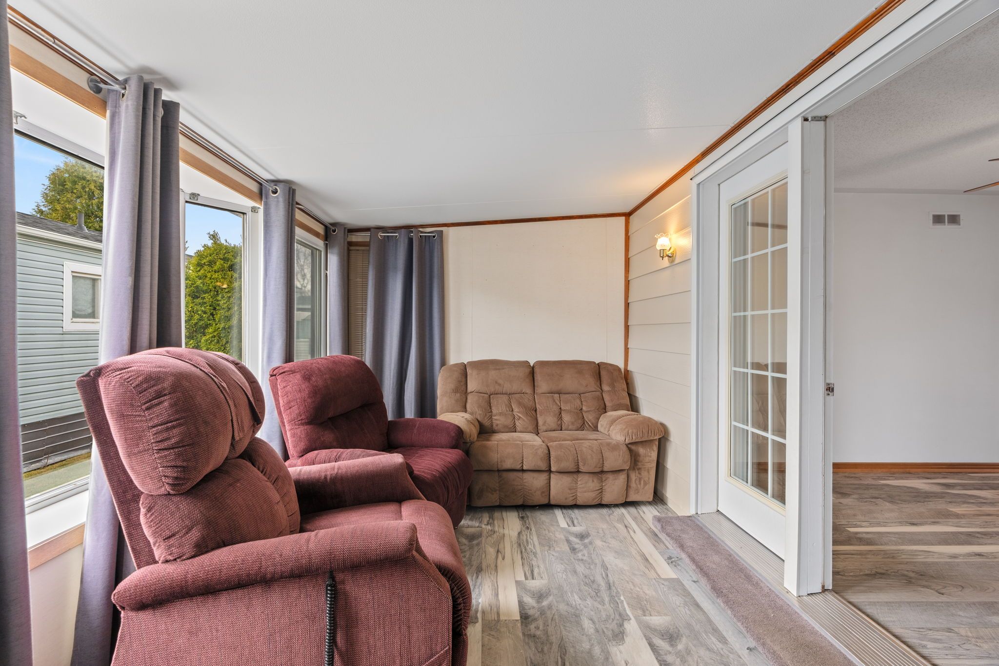 Welcome to this beautifully maintained 2-bedroom, 2-bathroom modular home, ideally situated in the desirable adult community of riverview estates. Step inside through the inviting enclosed sunroom, where a cozy den area creates the perfect space to relax year-round. The home opens into a bright and spacious family room, featuring new flooring, abundant natural light, and plenty of room for entertaining family and friends. The kitchen is both cheerful and functional, showcasing generous cabinetry, ample storage, and an abundance of windows that fill the space with natural light. An adjoining, separate dining area provides the perfect setting for everyday meals or special gatherings. A convenient laundry/mudroom offers additional storage and includes a third entrance leading to a private side deck-an ideal spot to unwind with a book or enjoy peaceful outdoor moments. The large primary bedroom is a true retreat, complete with a walk-in closet, a 3-piece ensuite bathroom with shower, and a large window that enhances the bright and airy feel. The second bedroom is versatile and well-suited for guests, a home office, or additional living space. A well-appointed 4-piece bathroom and ample storage throughout the home add to its overall appeal. This charming modular home boasts excellent curb appeal, highlighted by a welcoming covered front porch-perfect for morning coffee-along with a double driveway and a fantastic workshop for hobbyists or additional storage. Residents of riverview estates enjoy access to a private community pond and the scenic mcnaughton trail, ideal for leisurely walks. The community recreation center offers a vibrant social atmosphere with activities, games, and events to enjoy year-round. Conveniently located close to shopping, dining, banking, and essential amenities, this home offers a relaxed, low-maintenance lifestyle in a friendly and welcoming community.