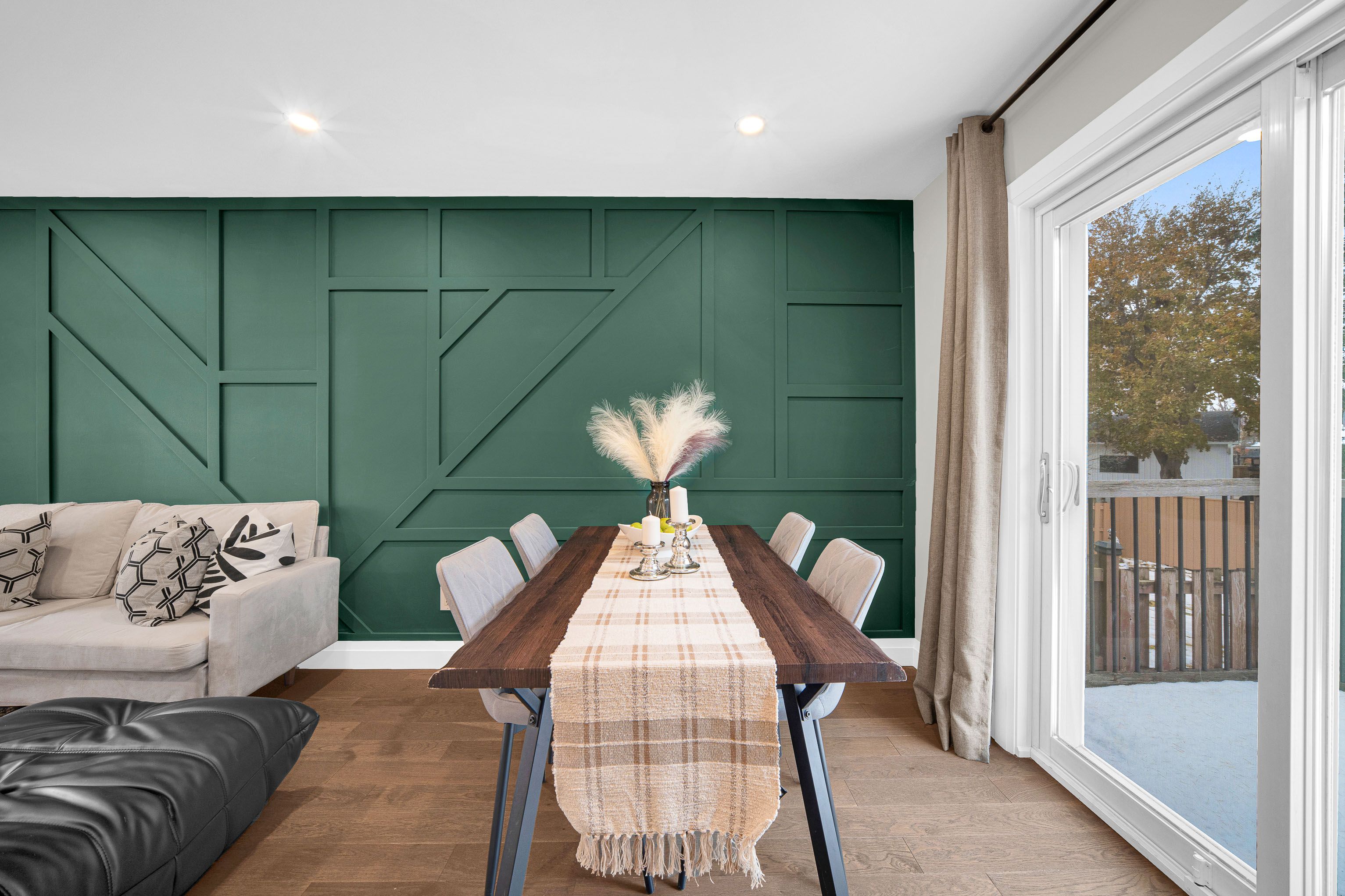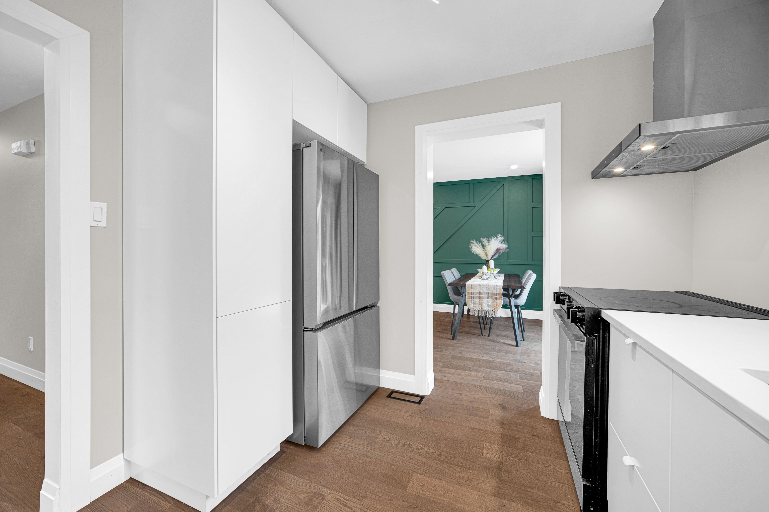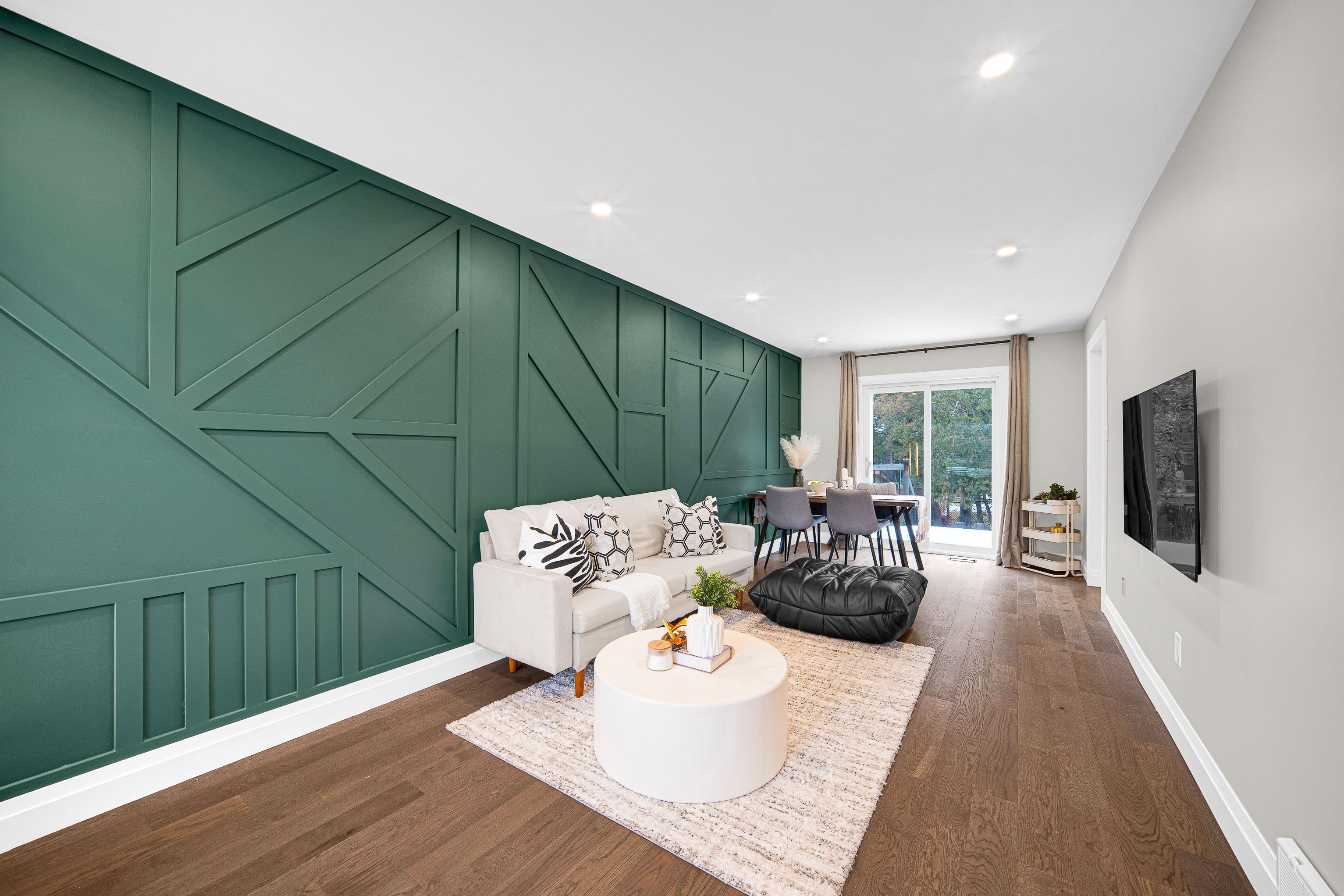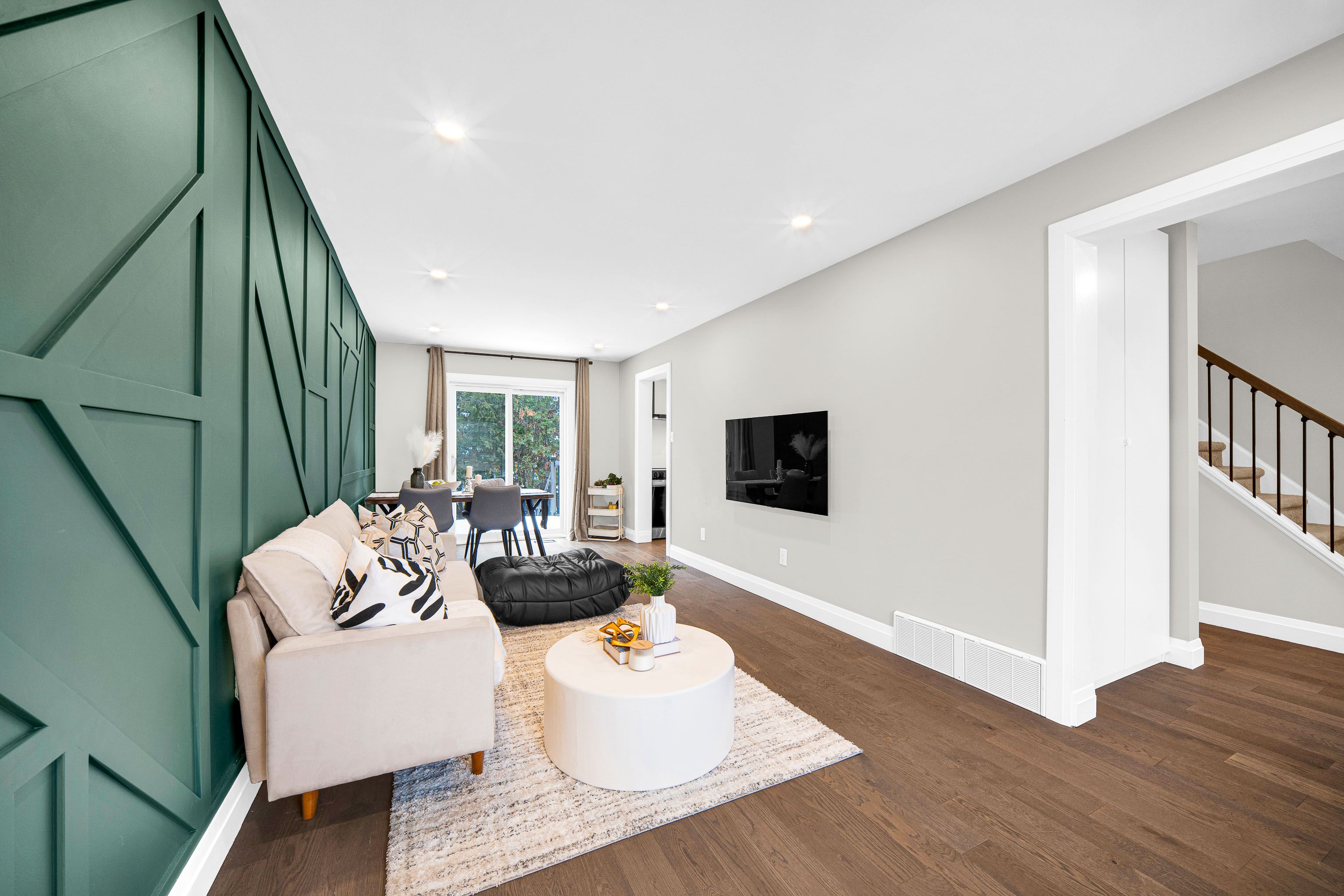 • Open concept living/dining area with hardwood flooring throughout.