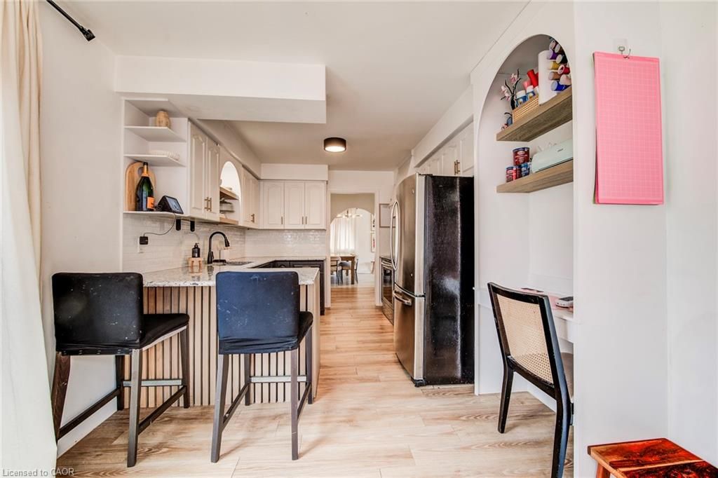 Large backsplit with in- law suite/multi generational living setup. Welcome to this extensively updated backsplit located on a quiet crescent, ideal for comfortable family living. This home features four spacious bedrooms plus a basement office that can easily function as a fifth bedroom. The primary bedroom offers convenient ensuite access. The bright main floor showcases an open-concept living room with a custom built-in media wall, flowing into a beautifully remodeled kitchen (2024) with direct access to the backyard-perfect for everyday living and entertaining. The lower level offers excellent versatility with a second kitchen, full bathroom, and bedroom, creating great potential for an in-law suite or multigenerational living. Outside, enjoy a nicely landscaped and private backyard complete with a shaded gazebo, ideal for relaxing or hosting family and friends. Additional highlights include a double car garage and a full basement providing ample additional living space or storage. Conveniently located with quick access to highway 401 and the gta, this well-cared-for home offers the perfect blend of comfort, flexibility, and location. Notable upgrades include new soffits, fascia, and eavestroughs (2024), new flooring throughout (2024), updated main-level bathroom (2022), and upgraded second kitchen cabinets (2022).